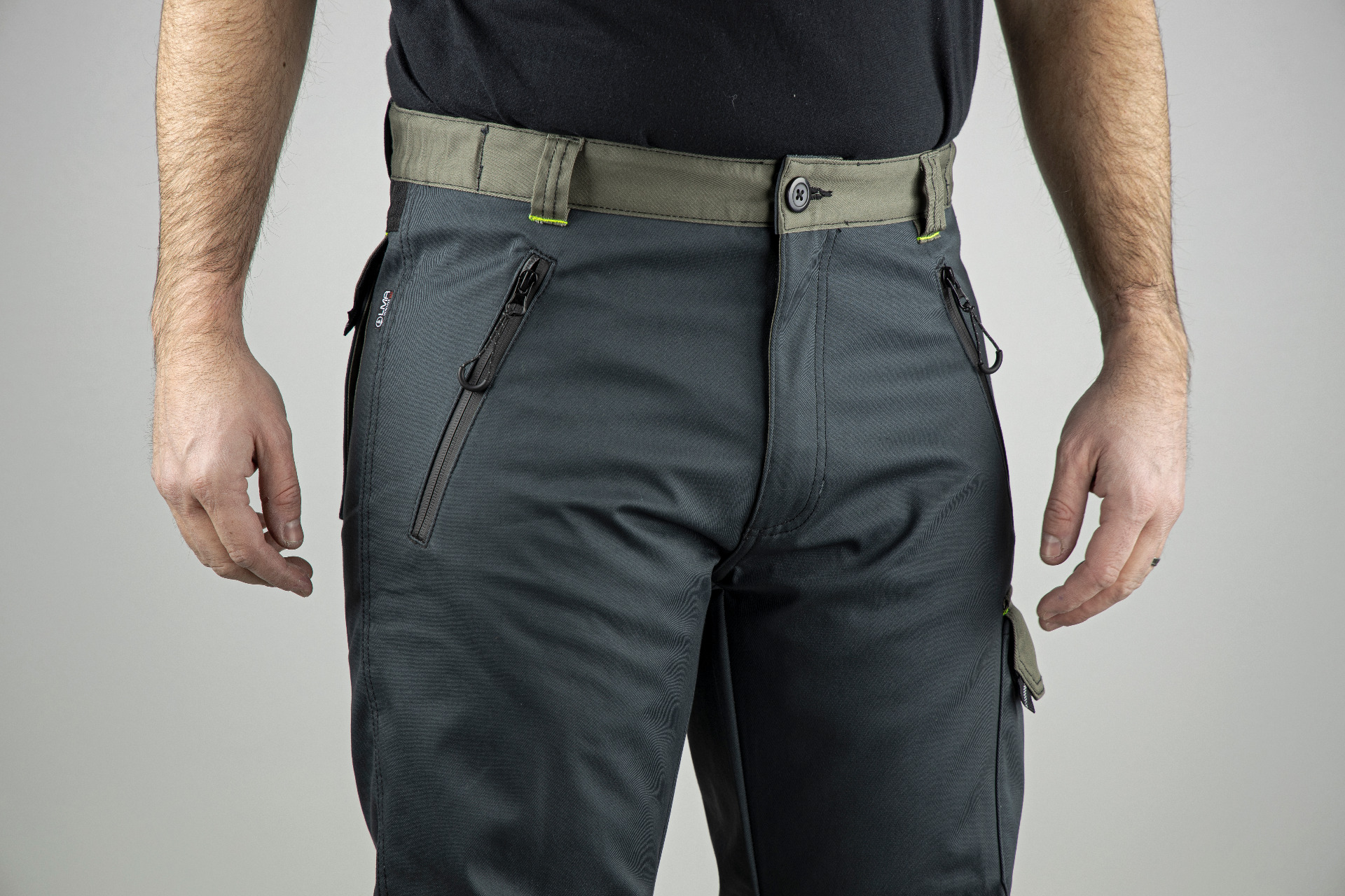 position knee pockets - 2 waterproof zippers from pockets - 1 thigh