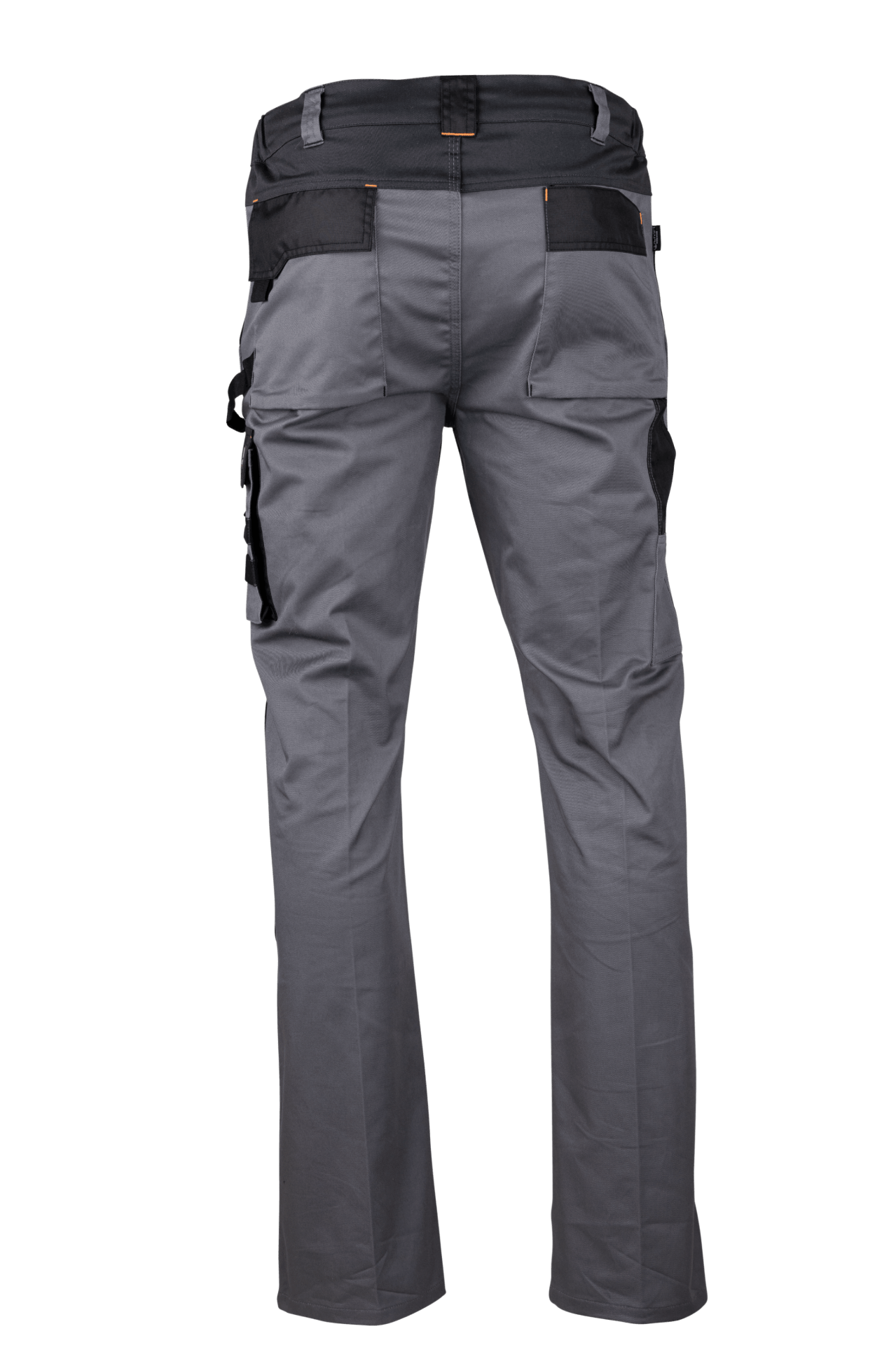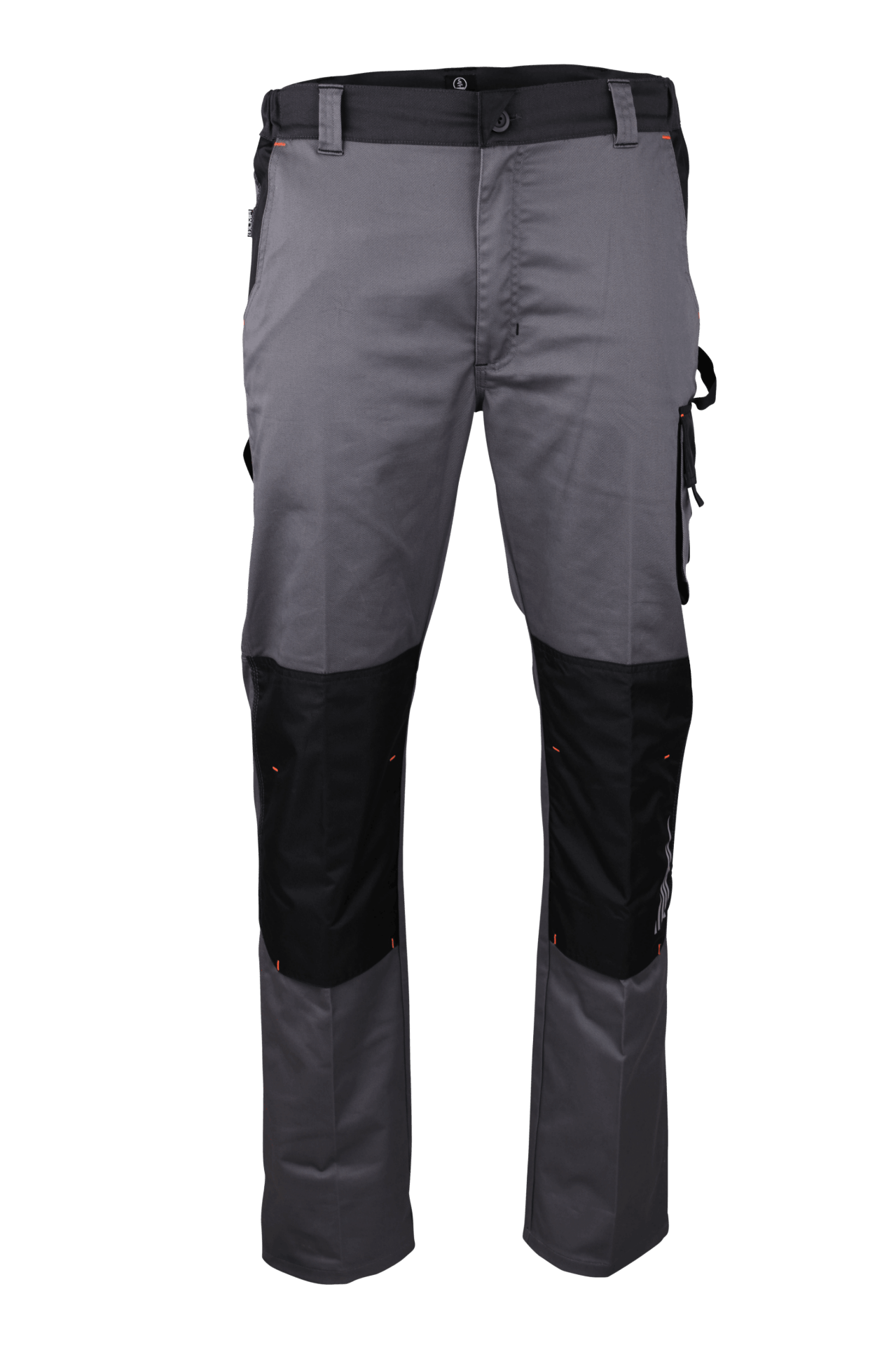 Half hidden button - Waistband elasticated on sides with 5 loops - Vision zipped fly - Wide loop on back middle - Italian handpockets with Oxford reinforcement yoke - Left thigh patched pocket + gusset, and flap closed with magic tape - Toolholder system - 1 position Oxford knee pockets - 2 back pockets with gusset, (one with flap) closed with magic tape - Hammer loop - Ruler pocket + extra pocket - Triple overstitches on crotch and leg sides - Reflective transfer on left knee pocket