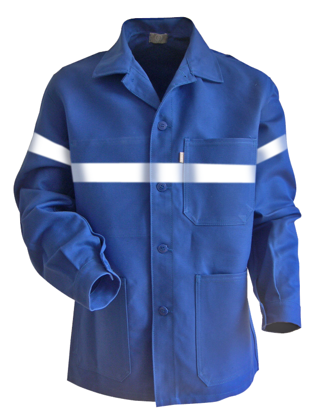 Lapel collar - Button fastening - 1 patched chest pocket - 2 lower patched pockets - Cuffs with stud fastening - 1 inner pocket - Metal free