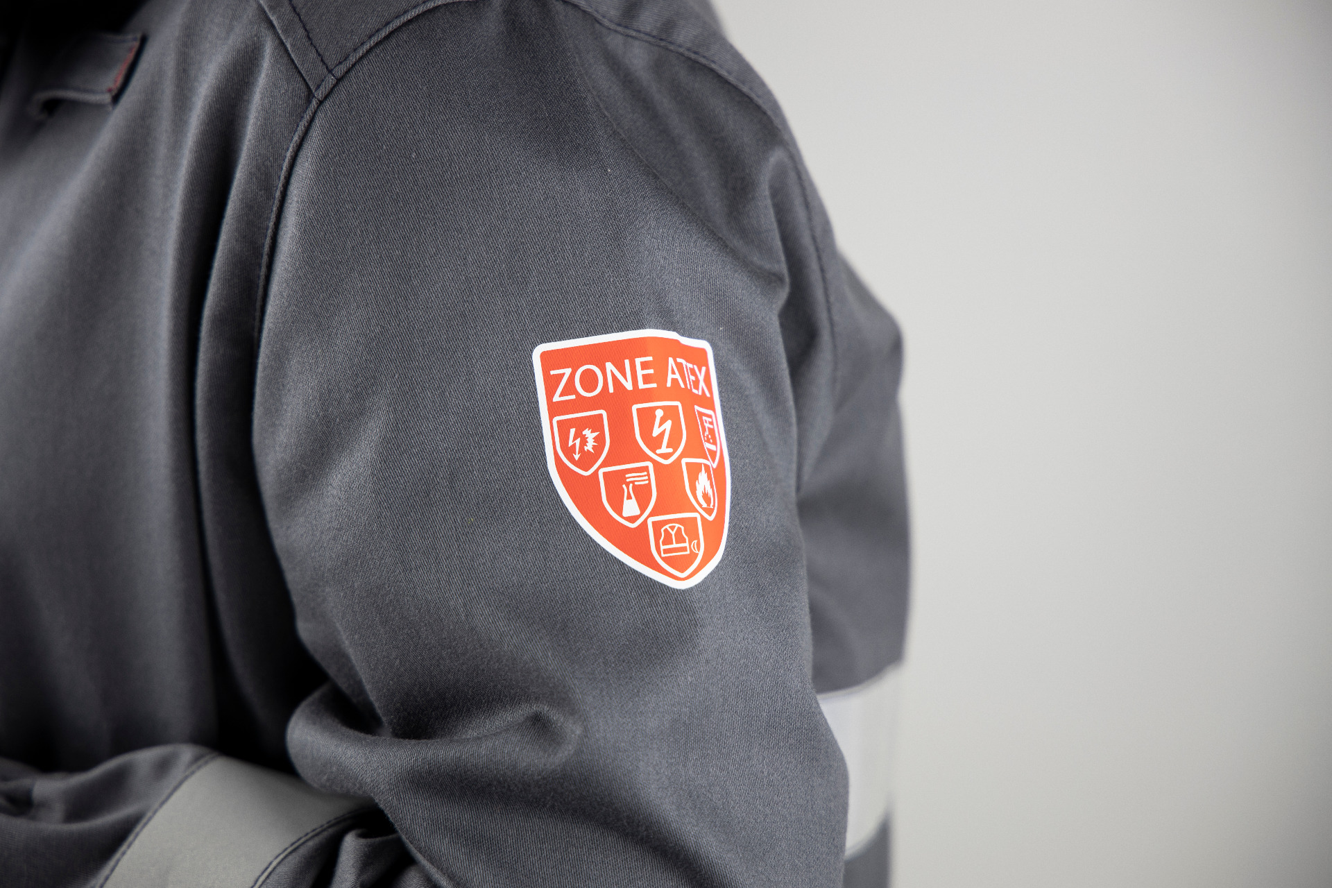 detector - ATEX area transfer on left sleeve - 2 inches plain reflective tapes - Red