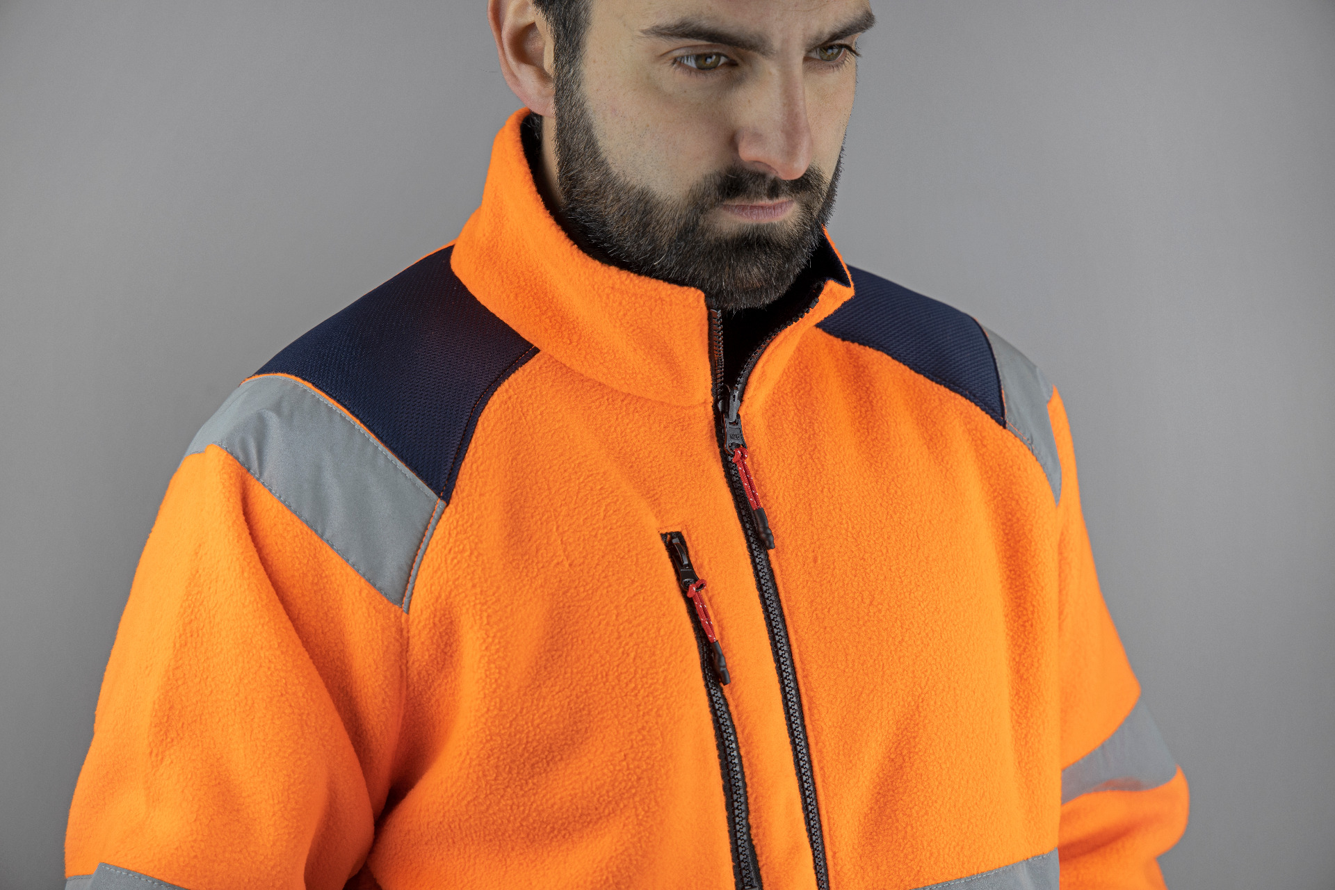 zipped pockets - 2 inches full reflective tapes sewn on - Contrasted yokes on shoulders, body