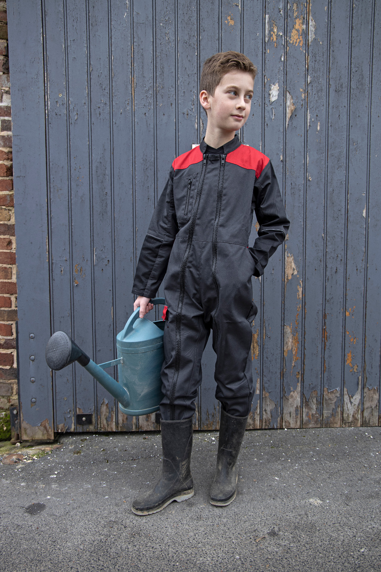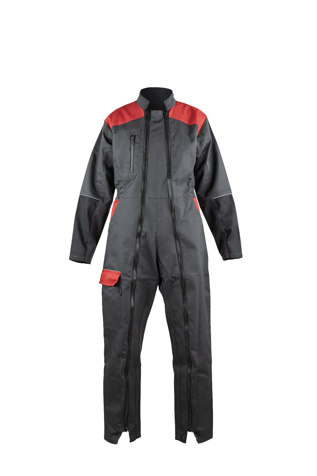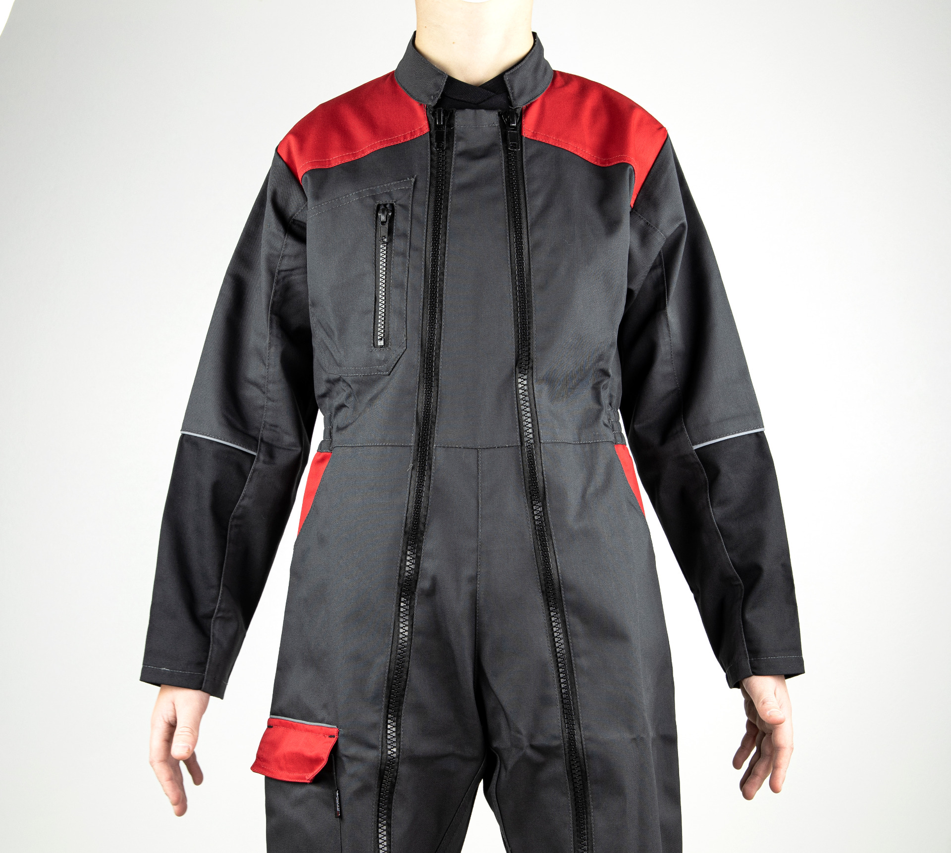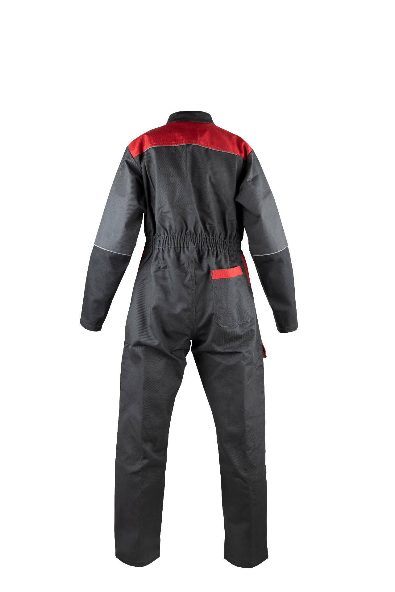 Contrasting red yokes on shoulders - Contrasting black yokes on collar innerside + sleeves bottom - Reflective piping inserted under back top yoke, thigh pocket flap and on sleeves - 1 chest patched zipped pocket - Elasticated waist on back and sides - 2 hand pockets with red contrasting parts - 1 back patched pocket with red contrasting edge -1 pocket on thigh front with red contrasting flap and magic tape