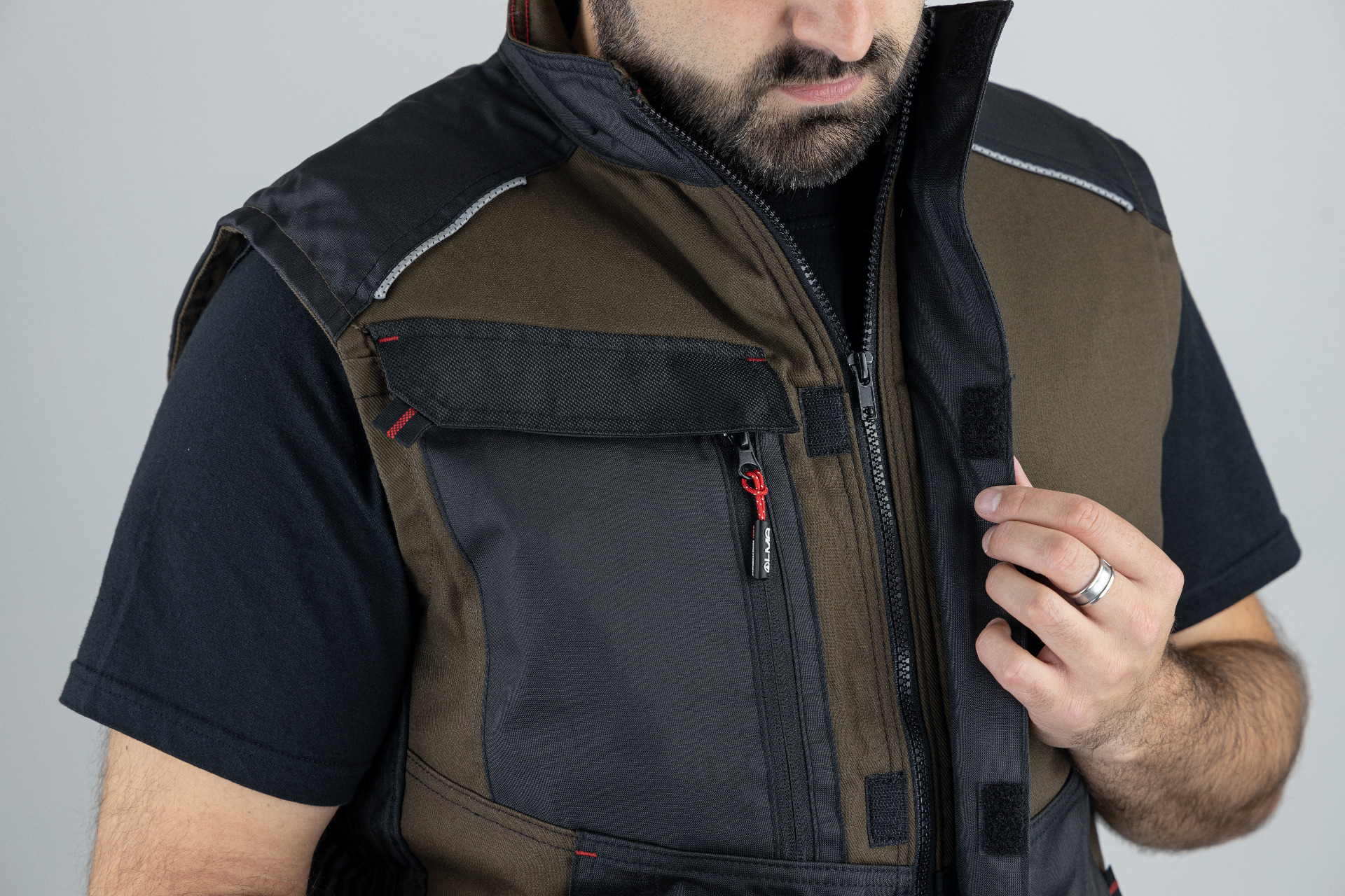 inner zip for easier branding - 5 pockets: 1 chest pocket with flap and
