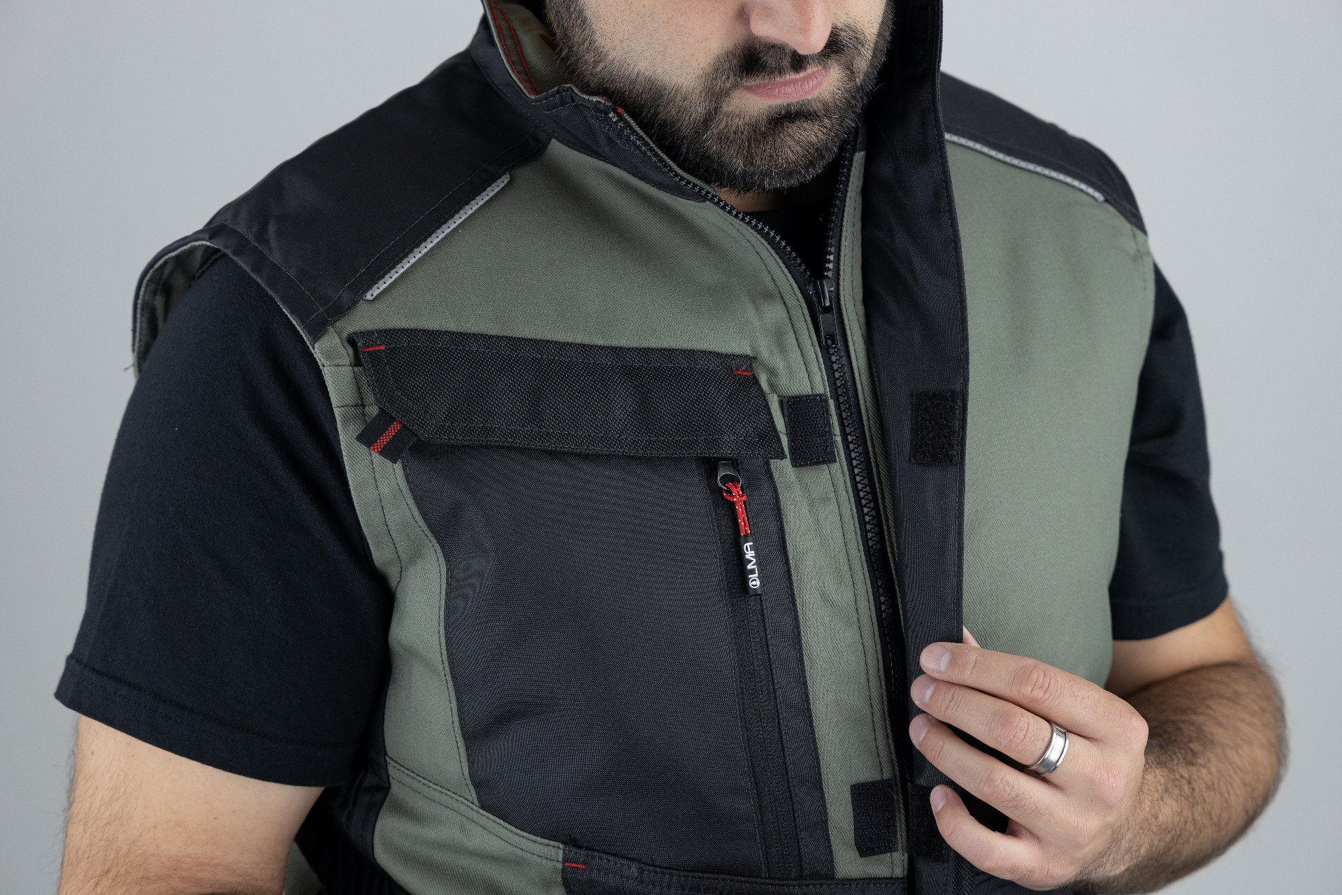 inner zip for easier branding - 5 pockets: 1 chest pocket with flap and