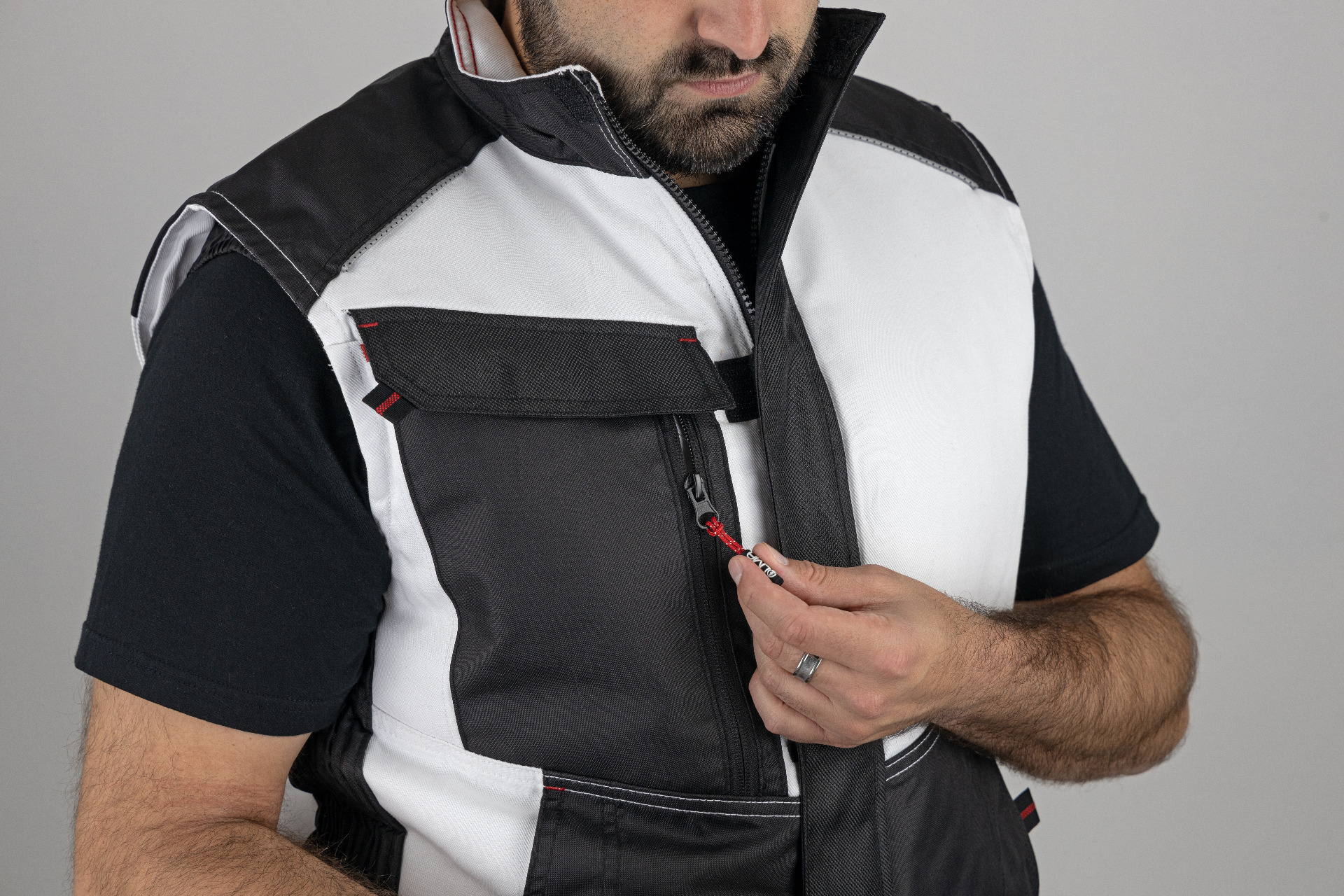 inner zip for easier branding - 5 pockets: 1 chest pocket with flap and