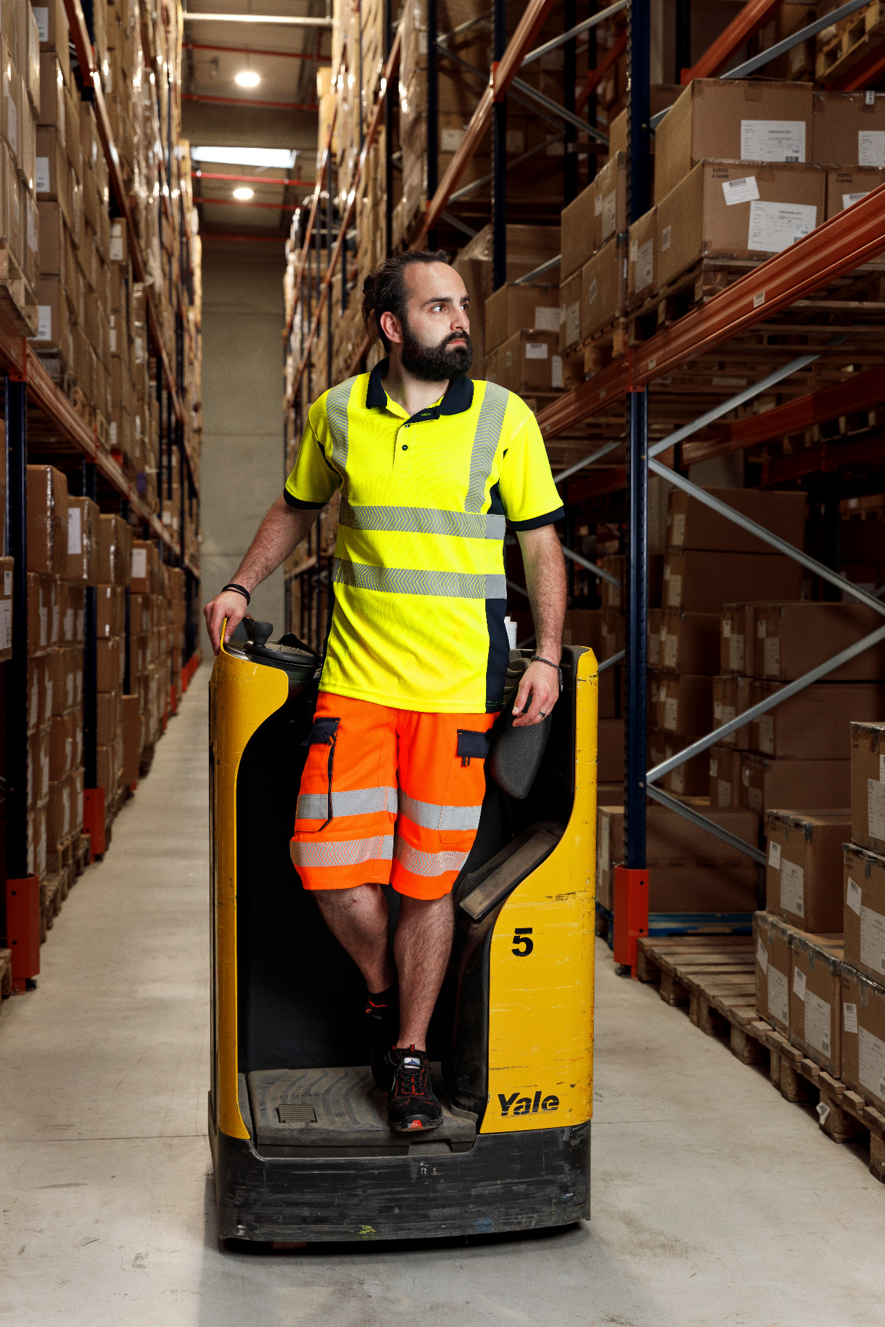 Triple stitch - Reinforced bottom - Hi-Vis yellow stitches - 5 loop belt - Dark blue contrasted yokes - Various