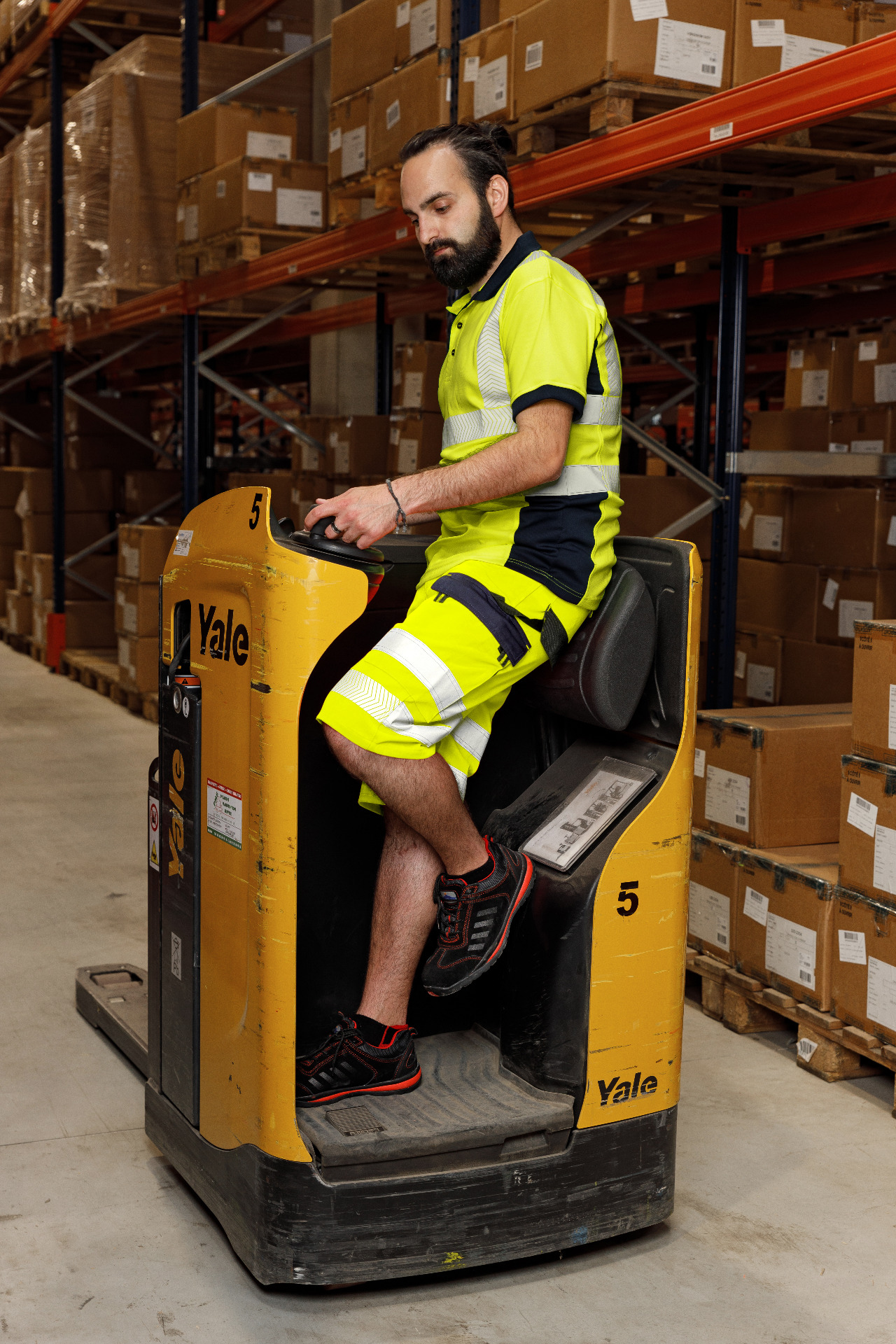 Triple stitch - Reinforced bottom - Hi-Vis yellow stitches - 5 loop belt - Dark blue contrasted yokes - Various