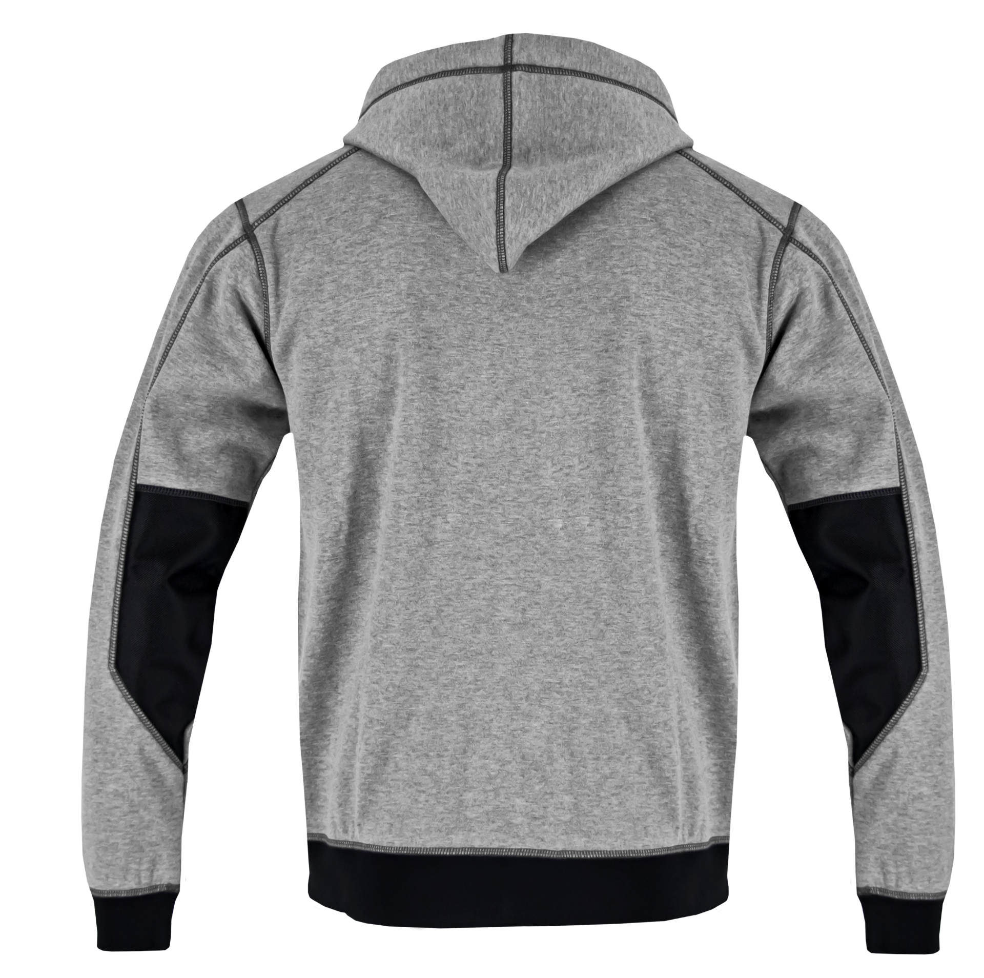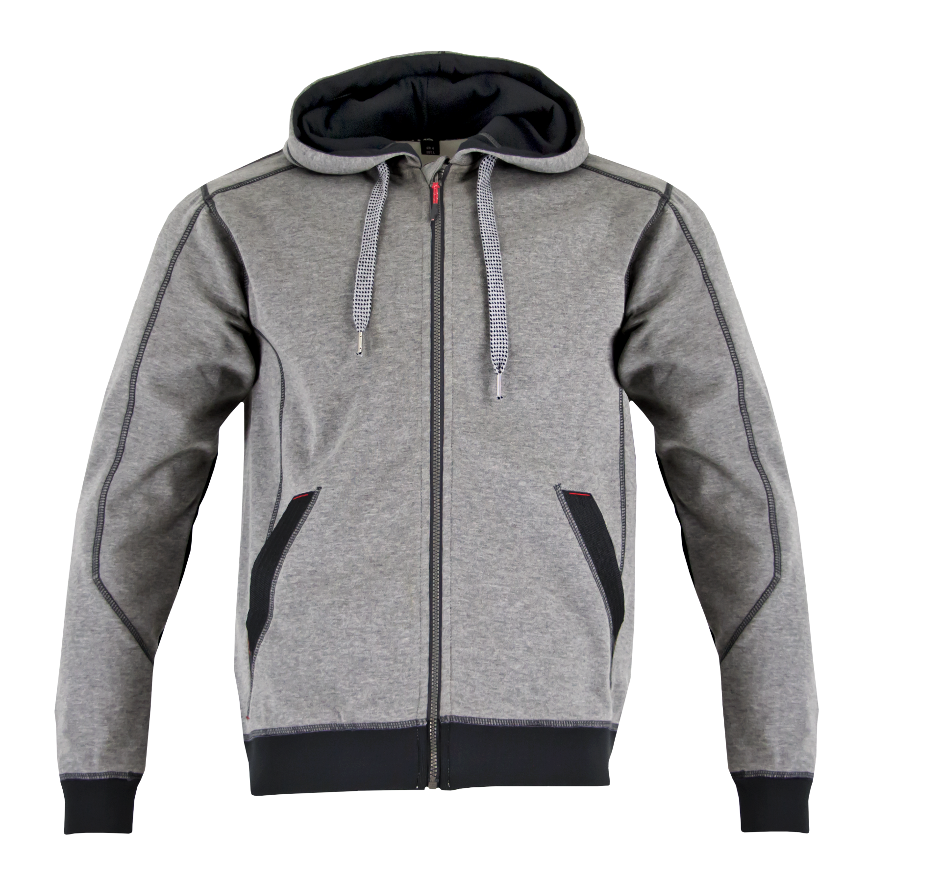 Sweatshirt jacket with bicolor zipper - Adjustable collar with bicolor drawstring - 2 pockets with reinforced contrasting pipings - Integrated phone pocket - Reinforced contrasting seams - Oxford 900D reinforced elbow patches - Contrasting knitted cuffs and bottom