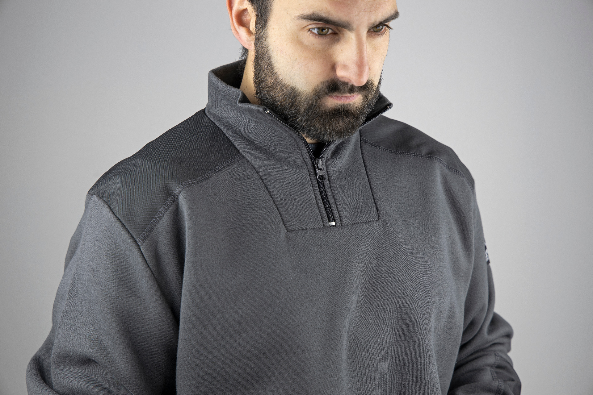 collar closed by spiral zipper - Rib knitted cuffs - Rib bottom -
