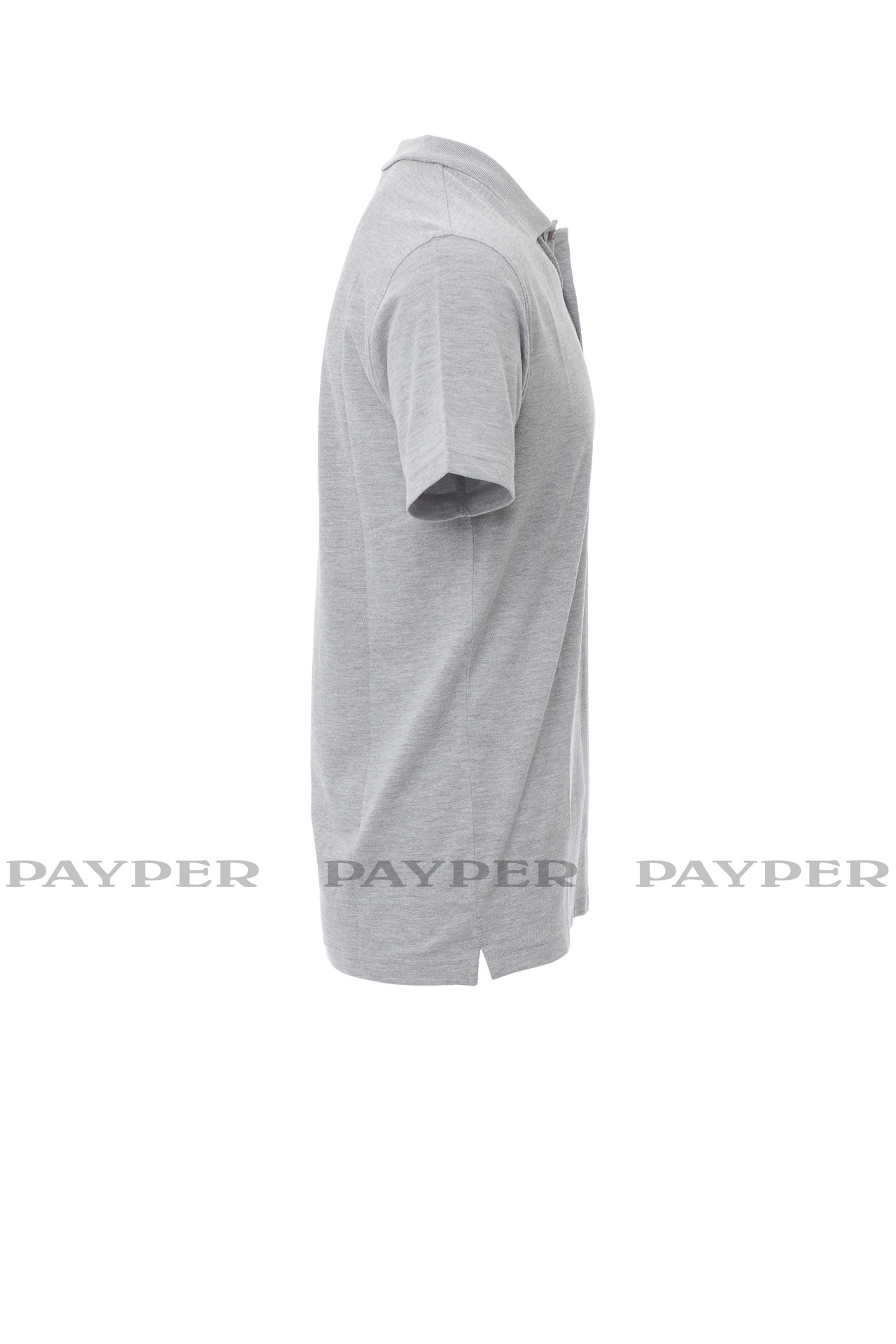 Short-sleeved polo shirt with three mother-of-pearl effect buttons, side vents, concealed collar stitching with matching colour tape