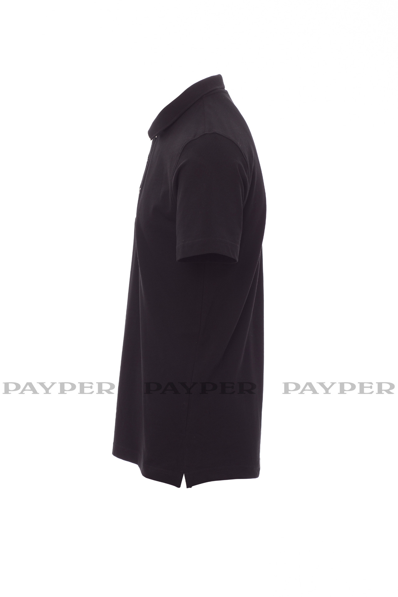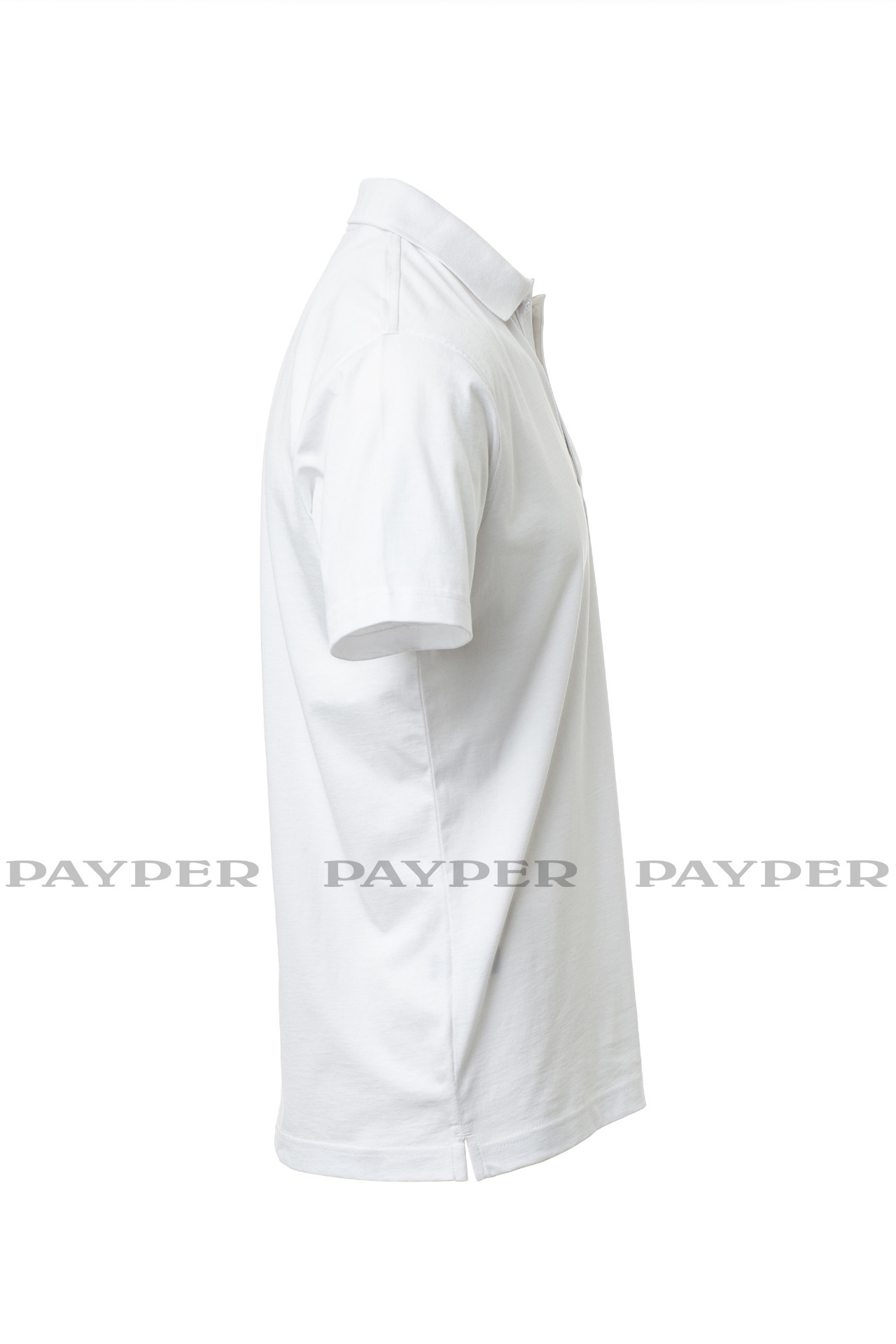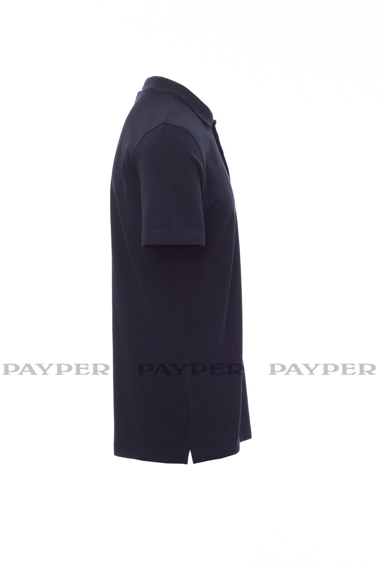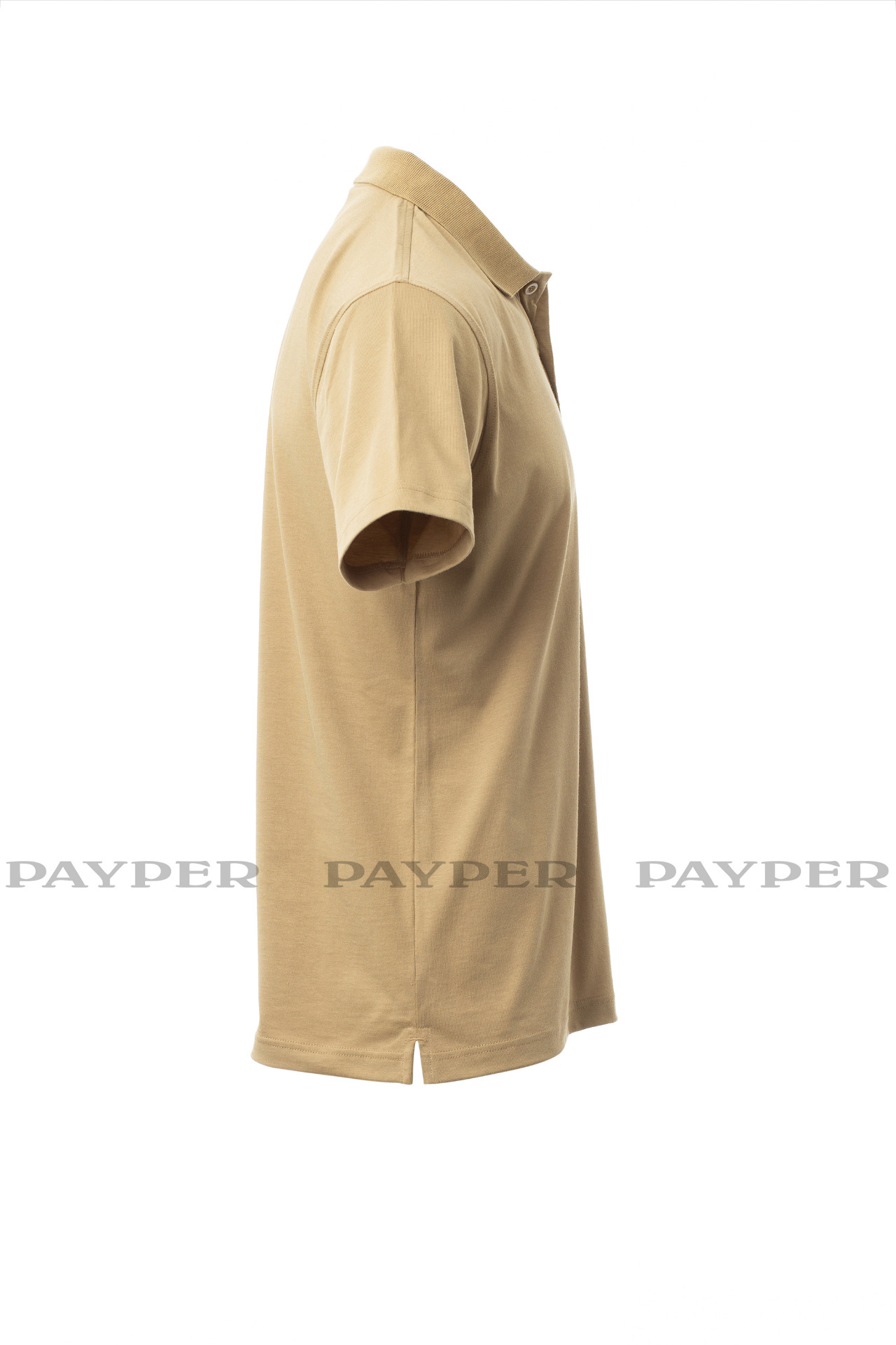 Short-sleeved polo shirt with three mother-of-pearl effect buttons, side