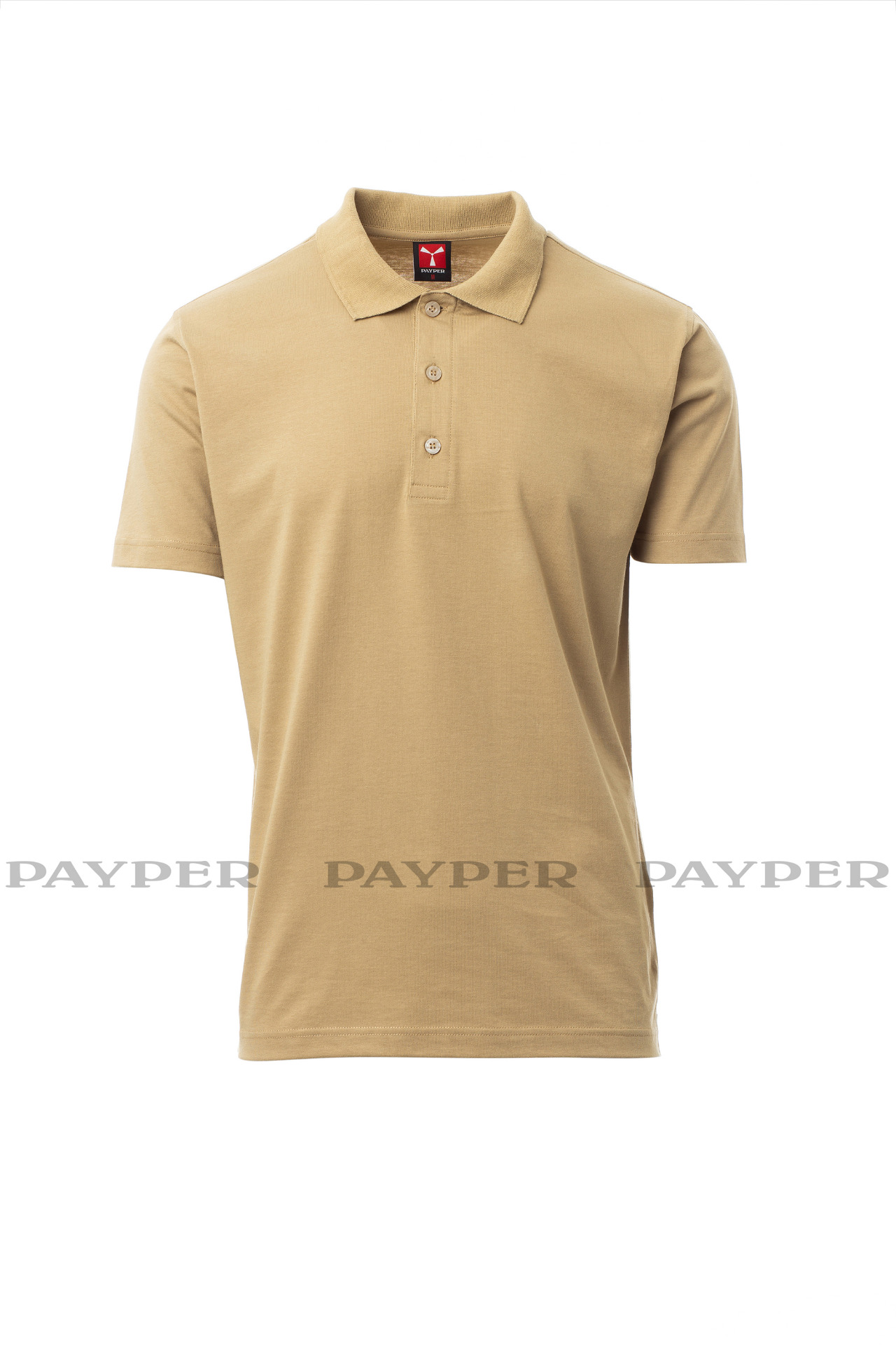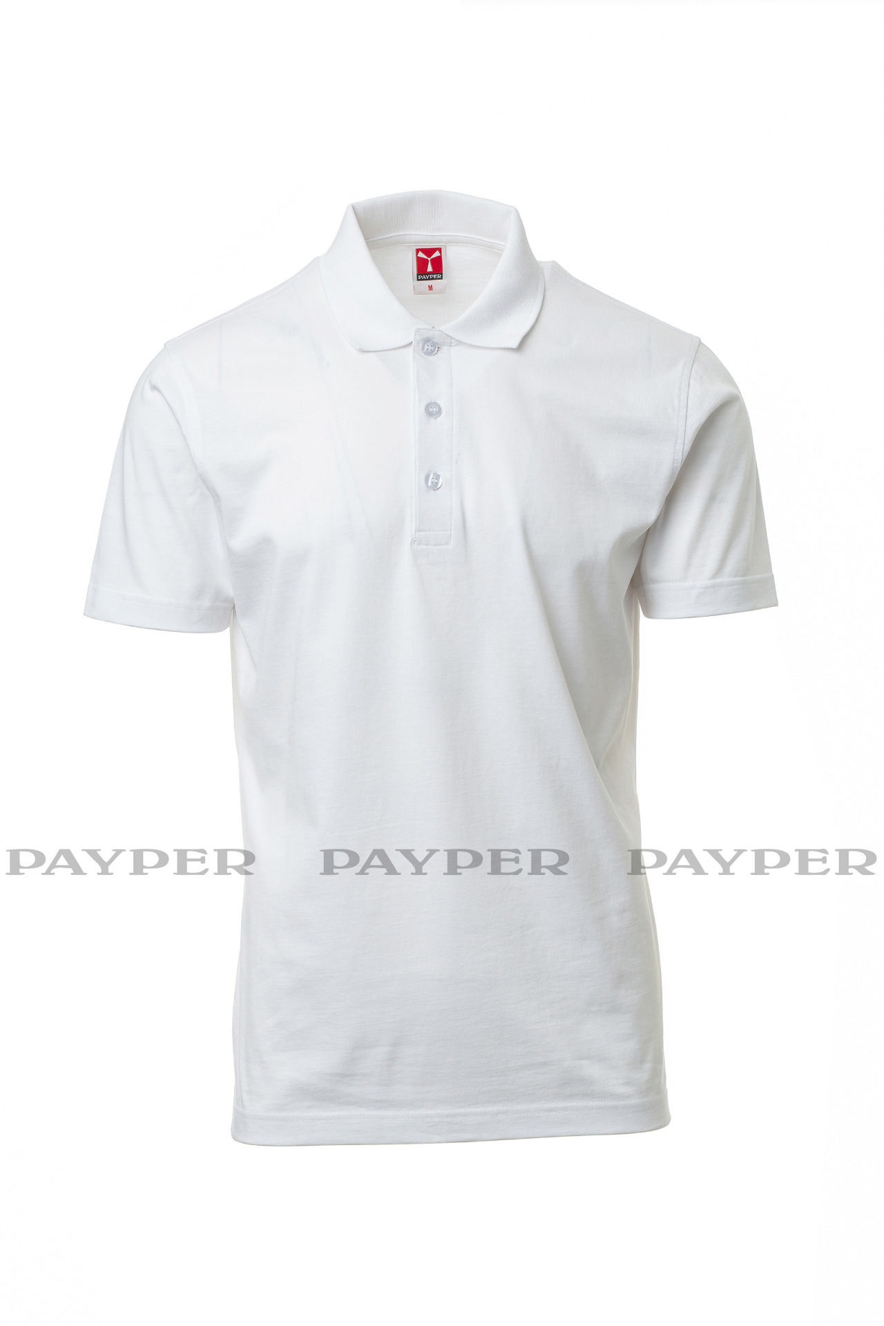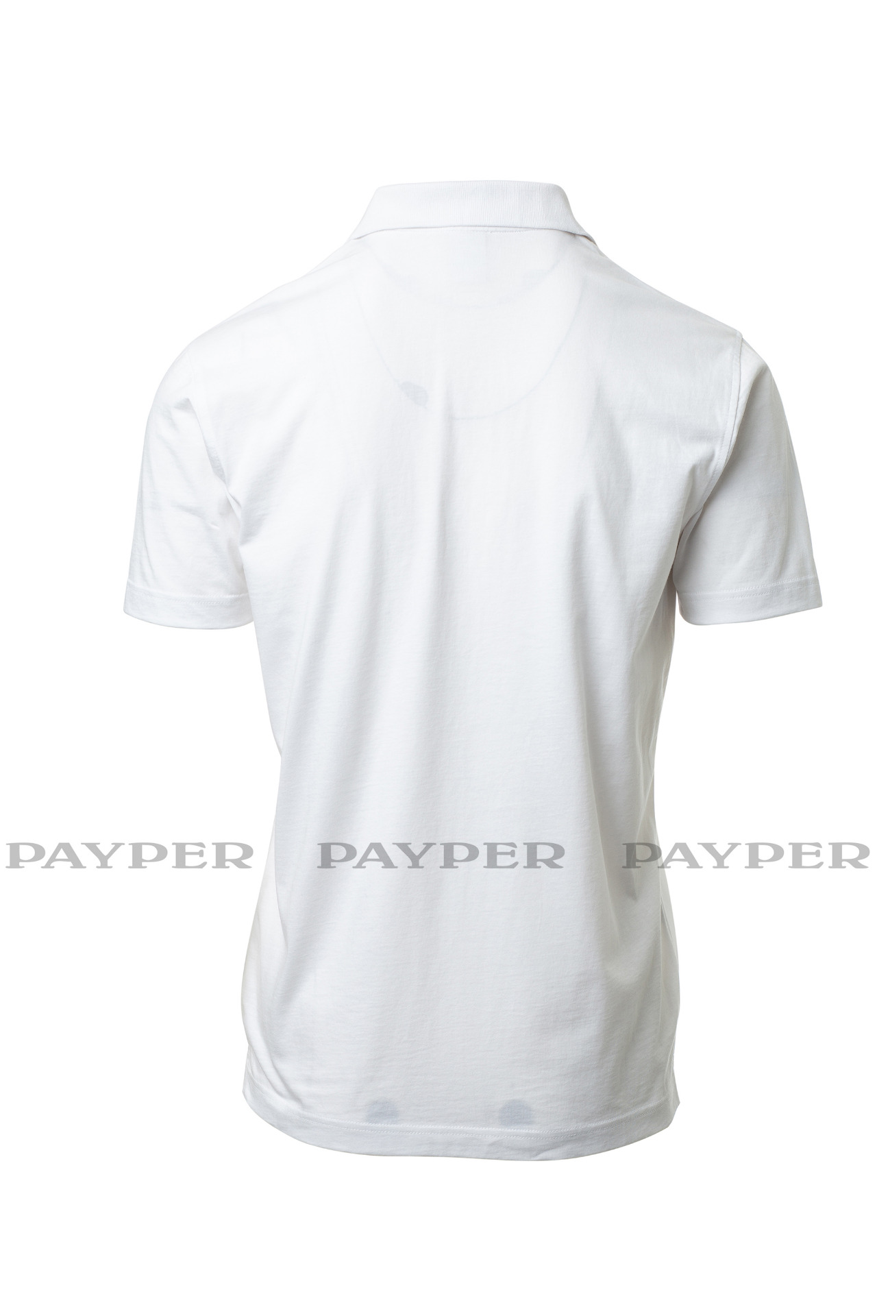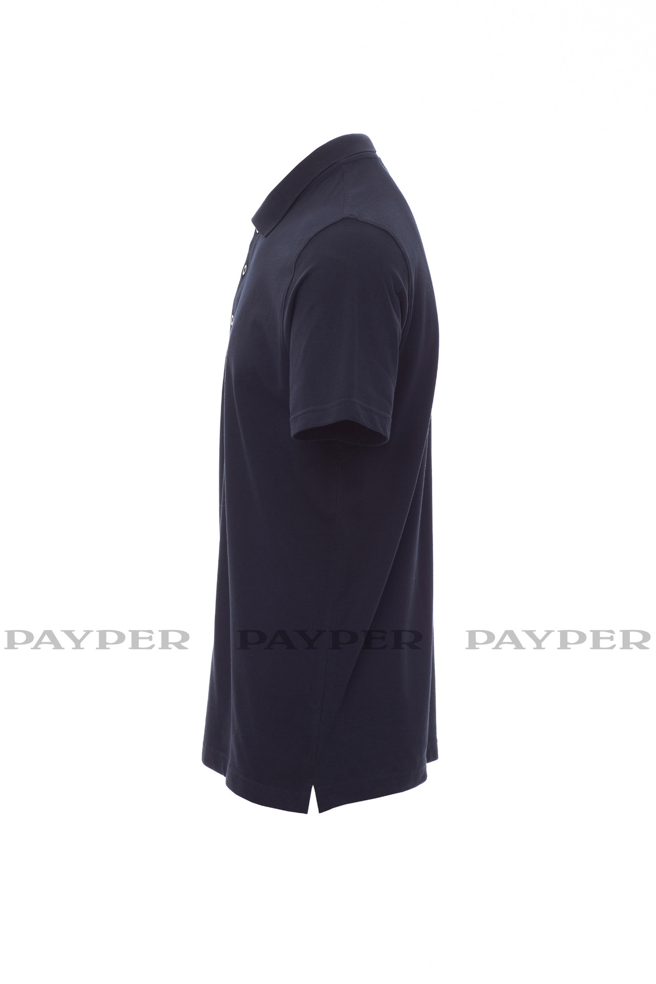 Short-sleeved polo shirt with three mother-of-pearl effect buttons, side