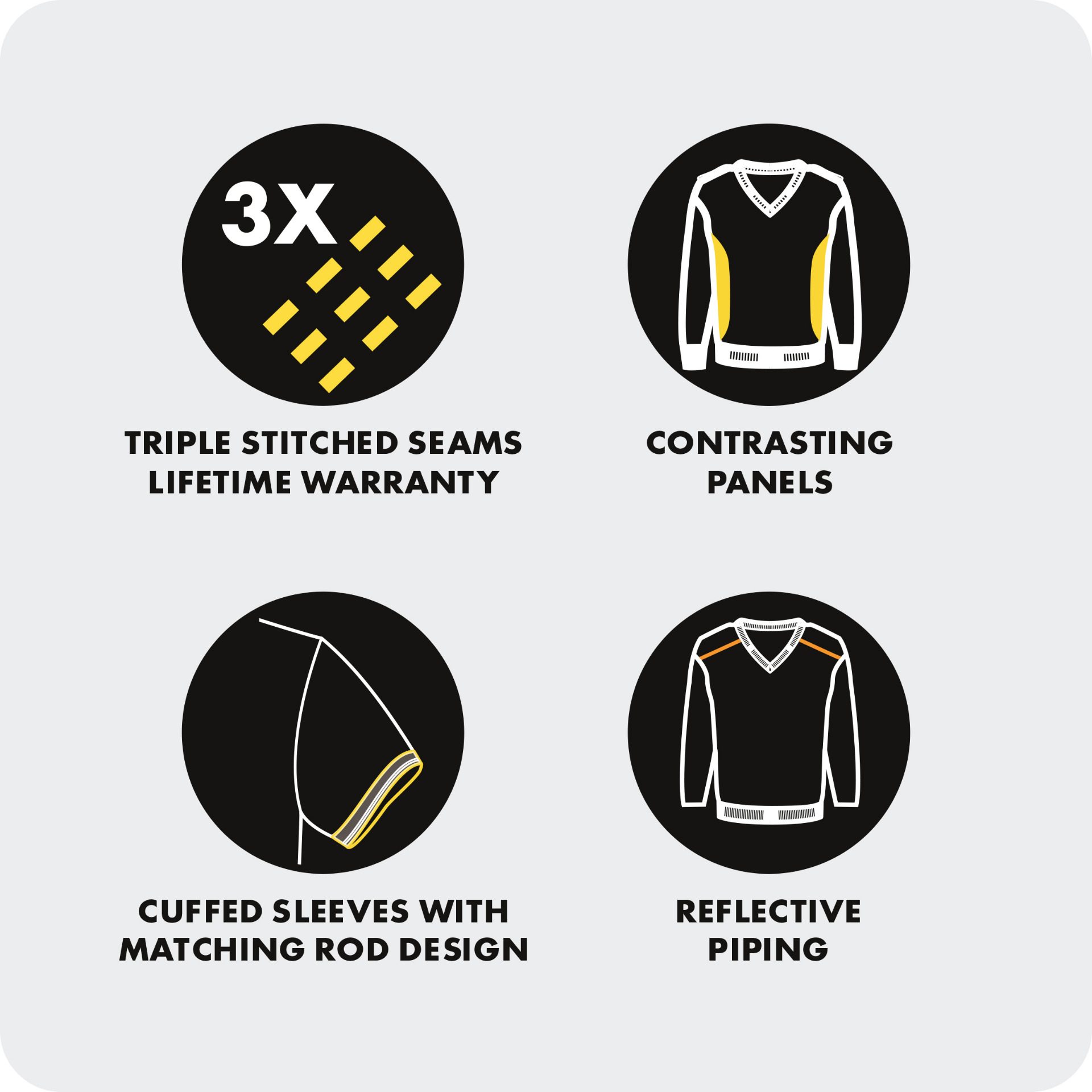 High quality, premium polycotton poloshirt - Knitted collar with rod detail and well padded taped neckline for comfort - Cuffed sleevs with matching rod design - Sporty multi-colour design with hi-vis piping along the shoulders - Matching contrast side panels and trim on placket - Registered design - Matching Avocet polyester t-shirt, polyester poloshirt, quarter zip sweatshirt, softshell and outer jacket available