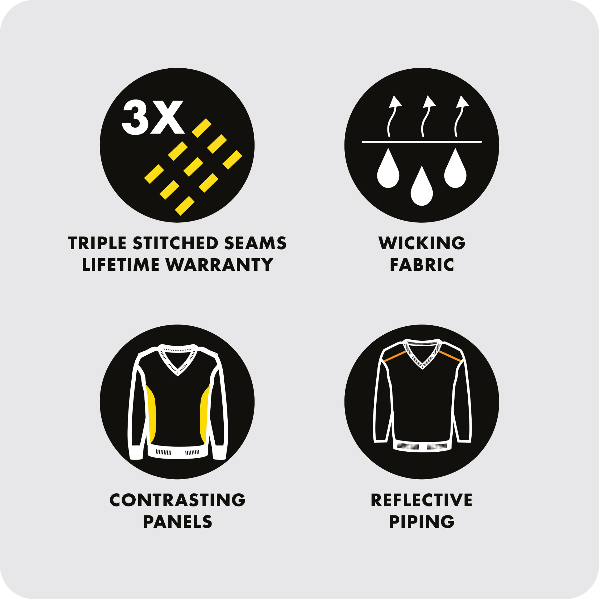High quality, inherent wicking polyester t-shirt - Self-fabric collar - Well padded taped neckline for comfort - Sporty multi-colour design with hi-vis piping along the shoulders - Matching contrast side panels - Triple stitched on all main seams for ultimate strength. Matching Avocet polycotton poloshirt, polyester poloshirt, quarter zip sweatshirt and softshell jacket available - Registered design.
