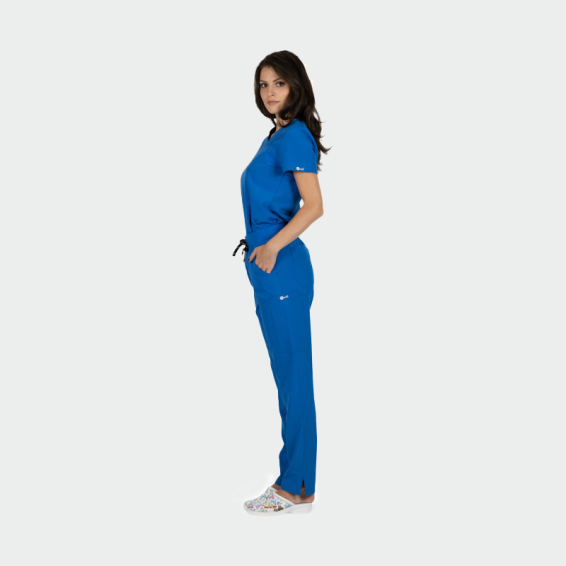 and 6% spandex. The tunic has short sleeves, a V-neckline and side