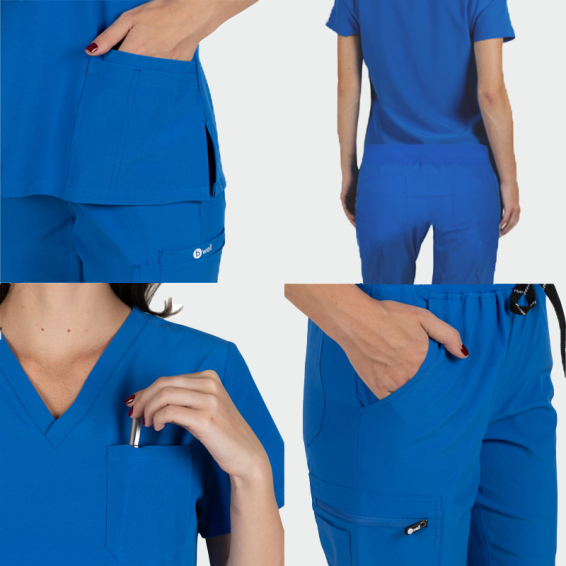 slits. It has a small upper pocket and two bottom ones, the right one is