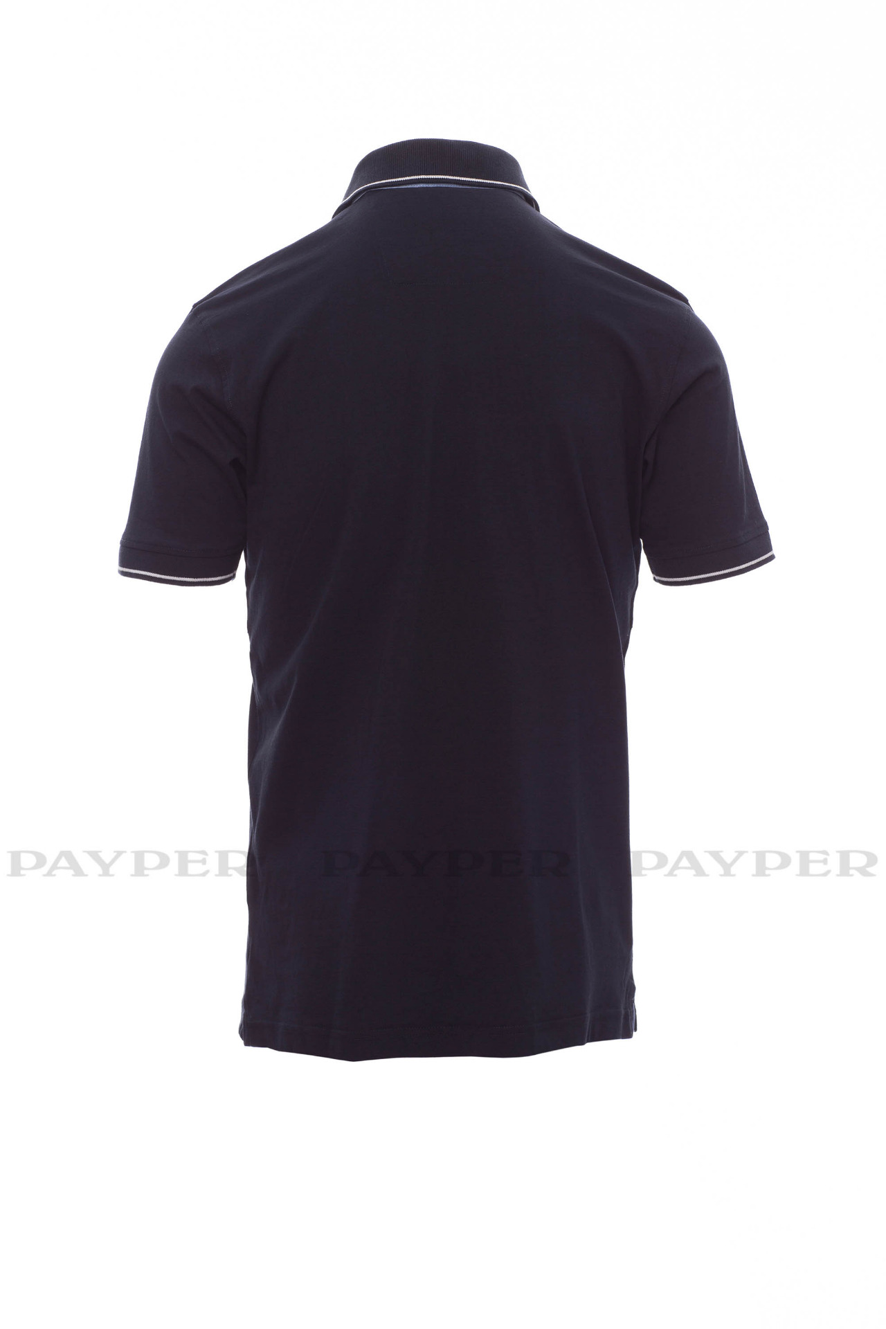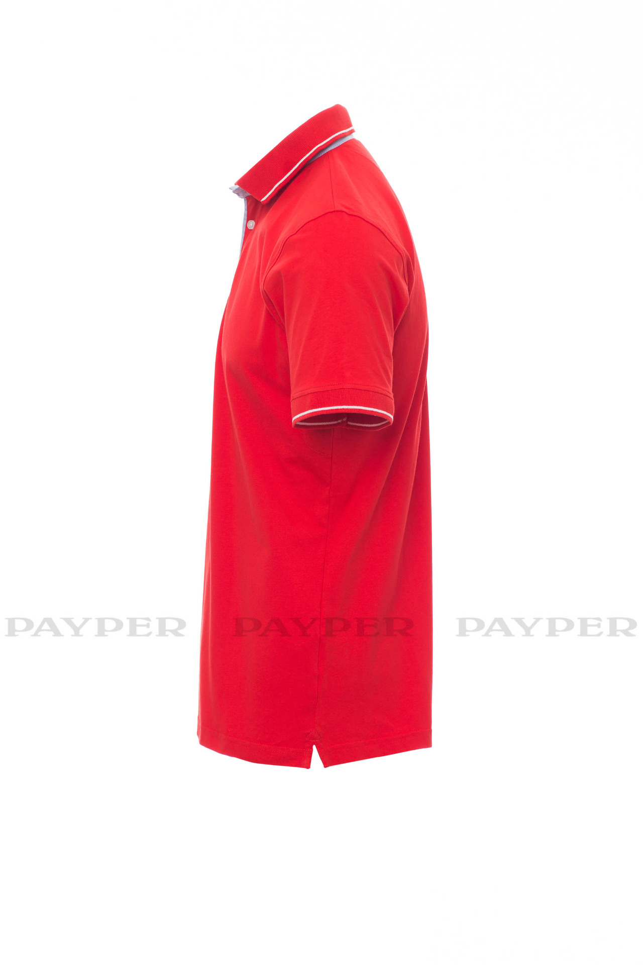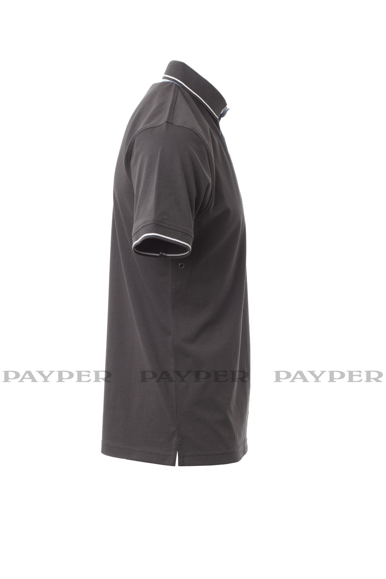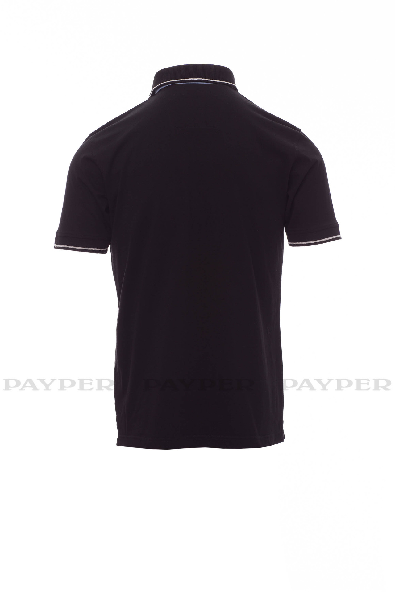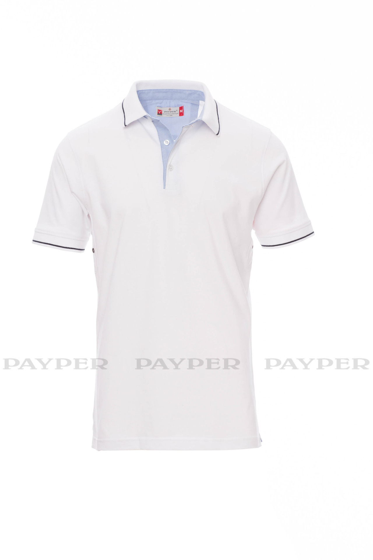 Men's short-sleeved polo shirt with 3 white buttons, inside collar, flap