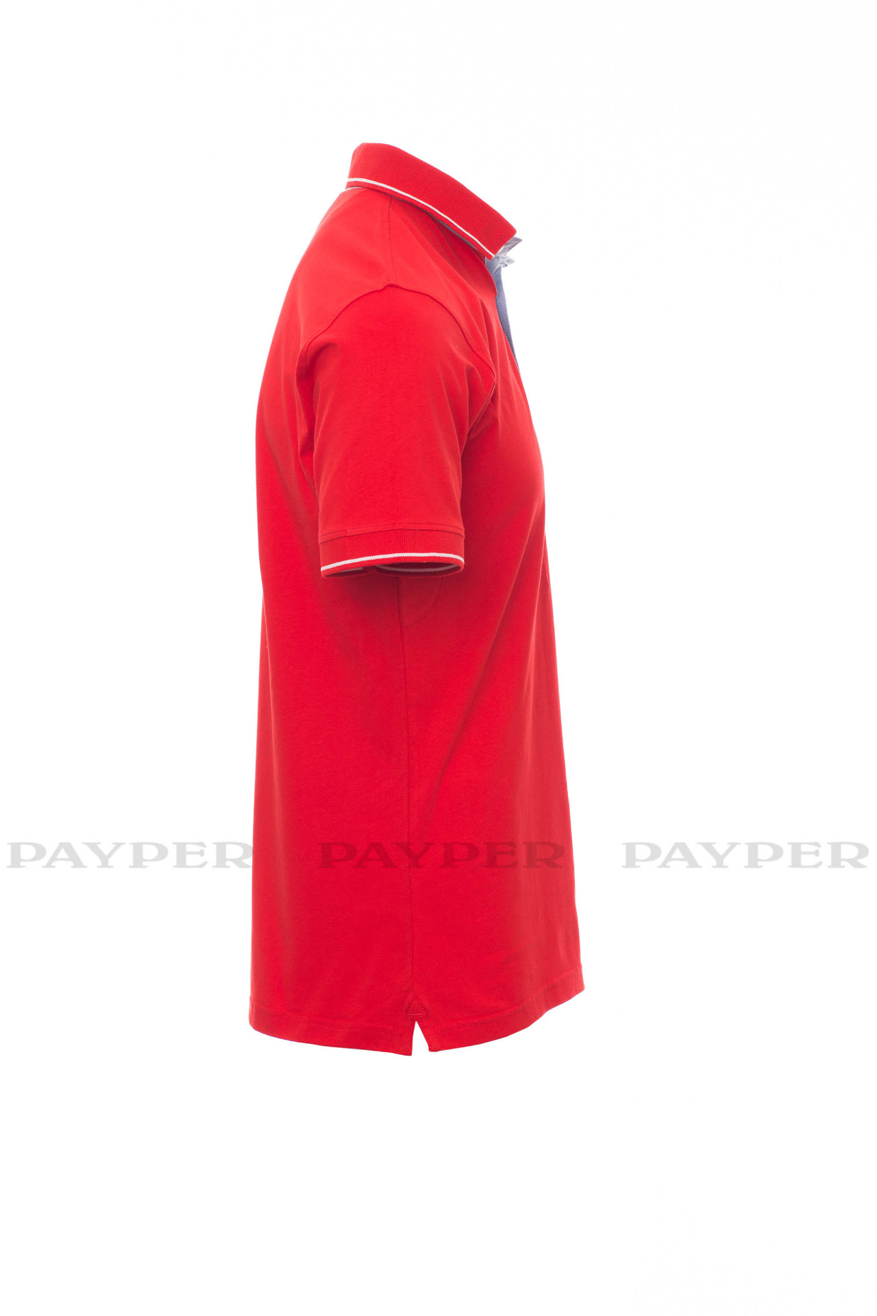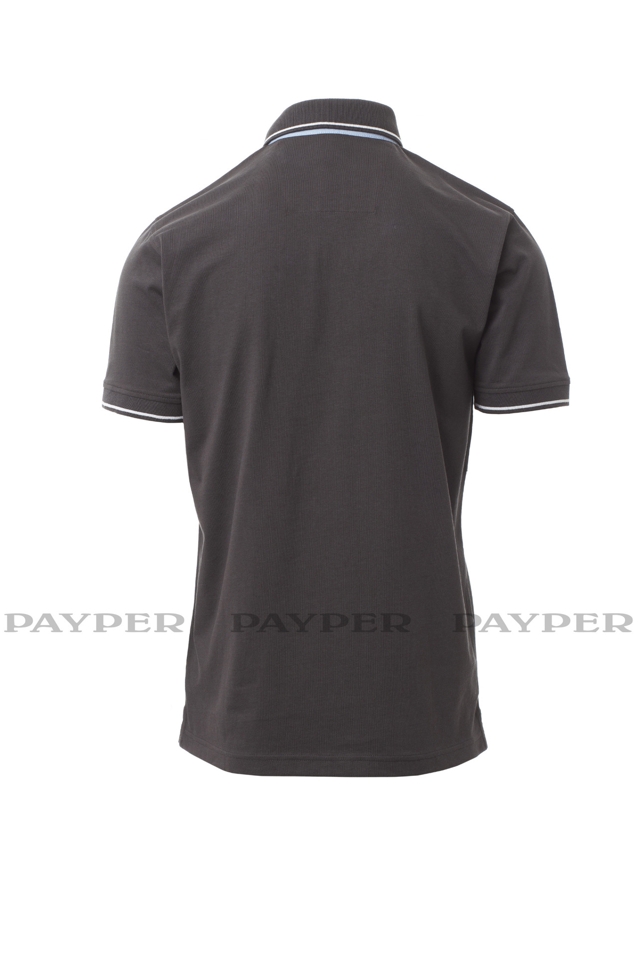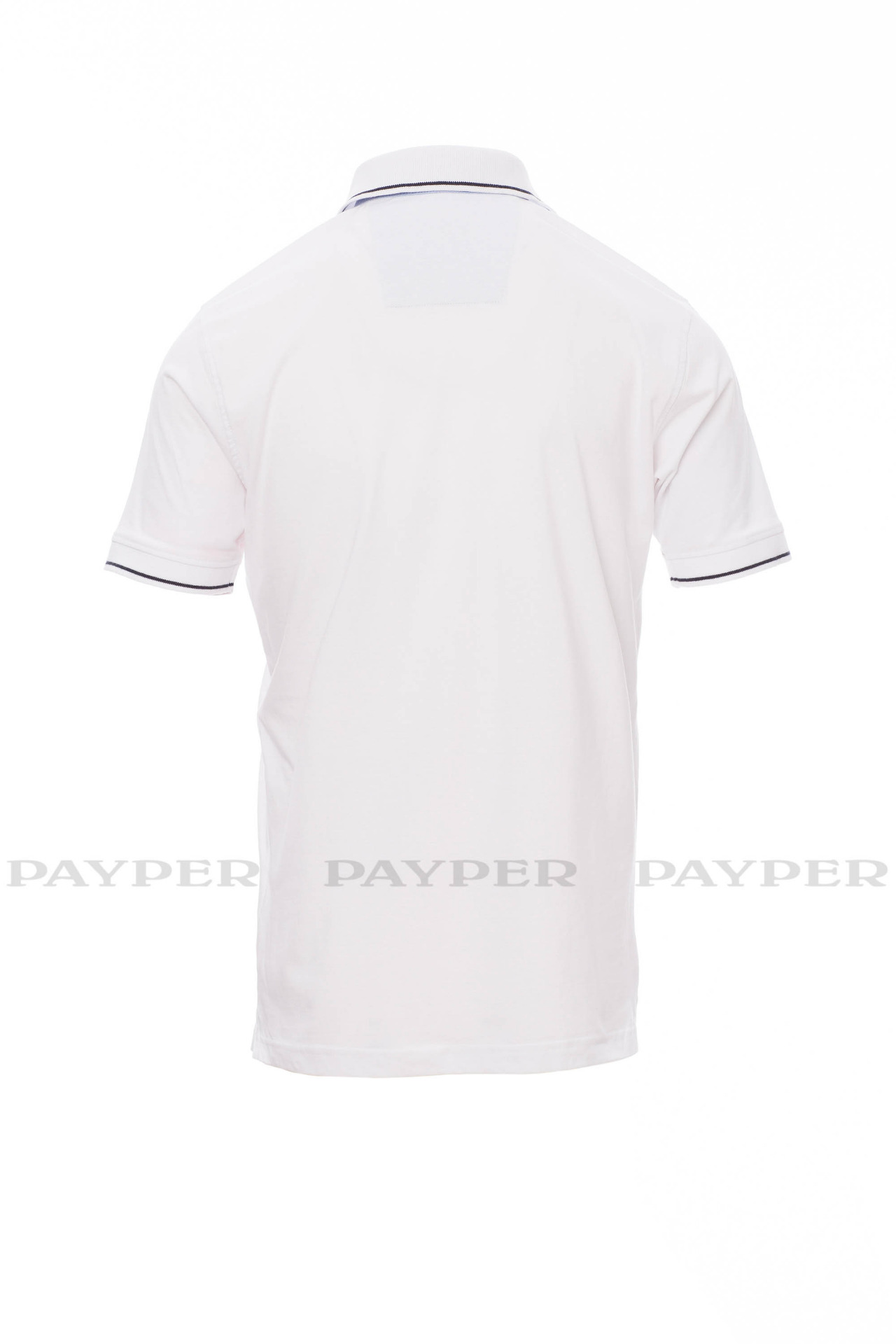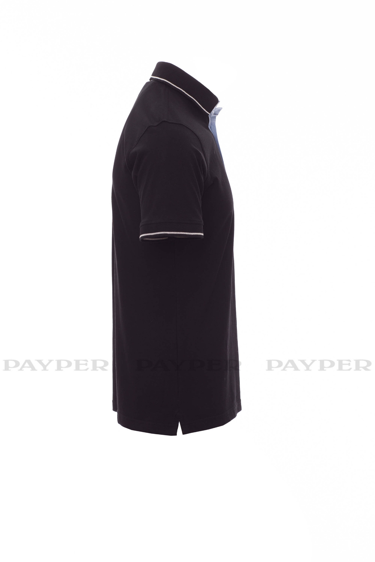 Men's short-sleeved polo shirt with 3 white buttons, inside collar, flap