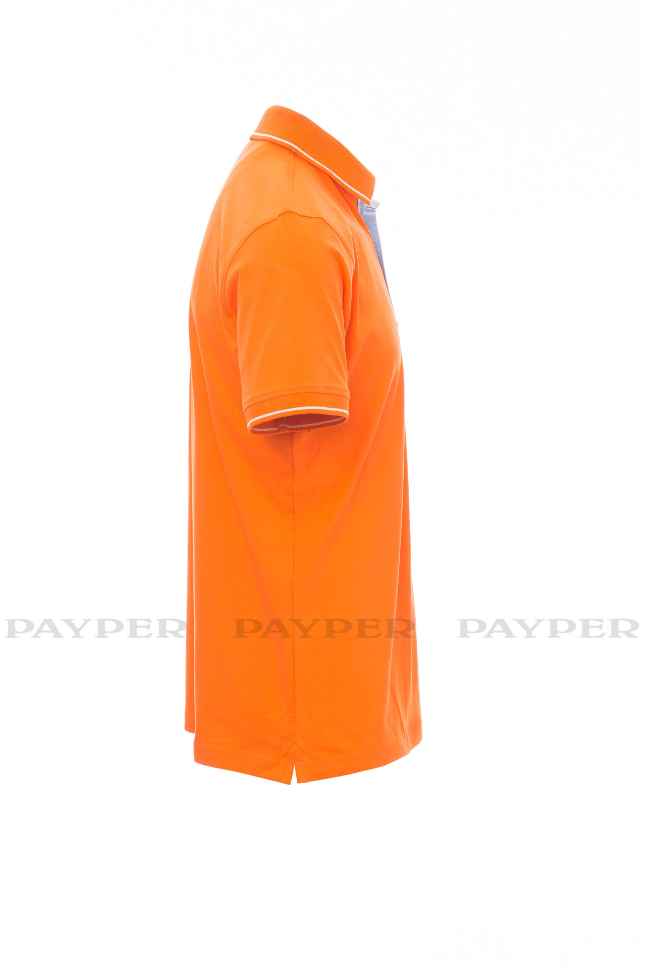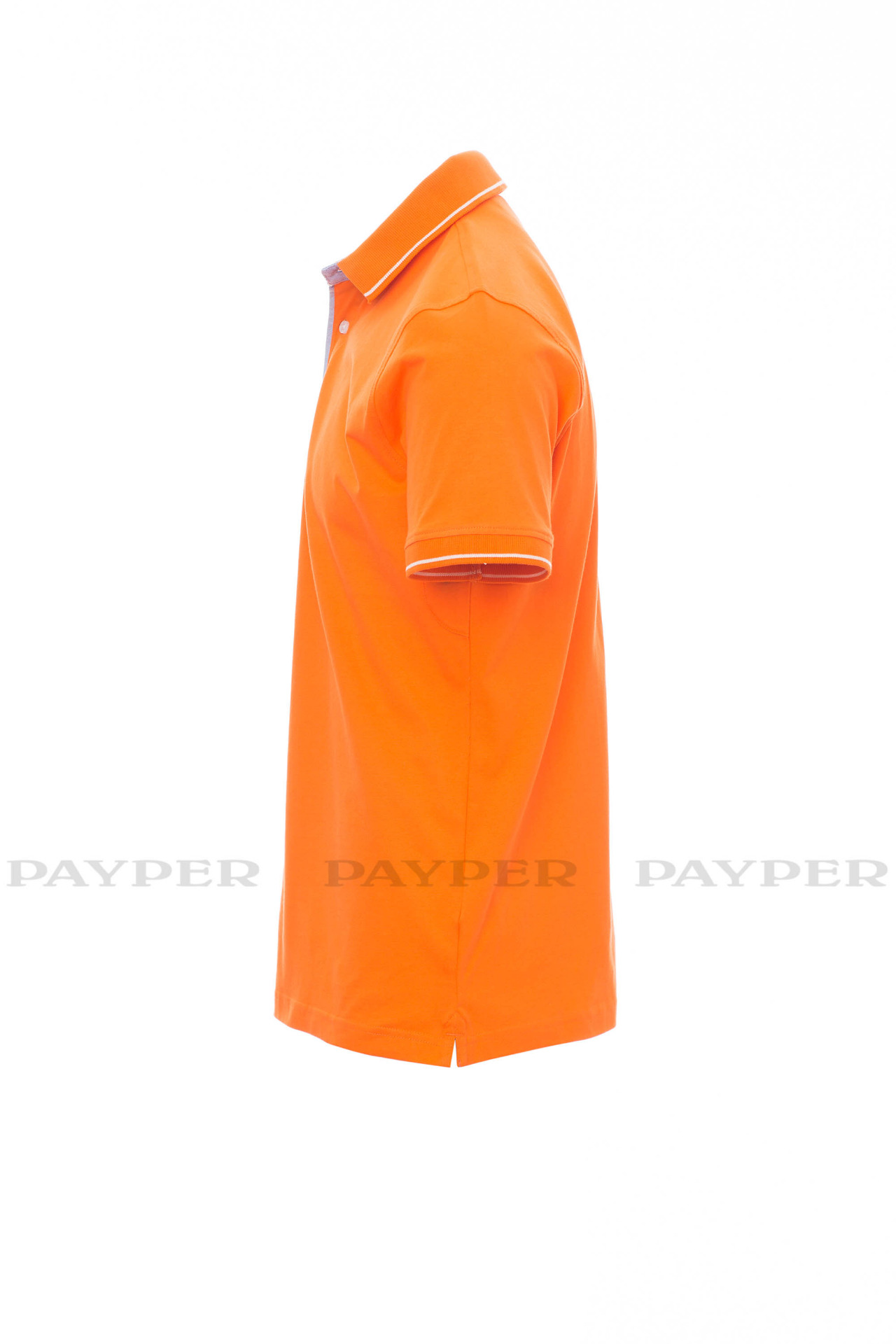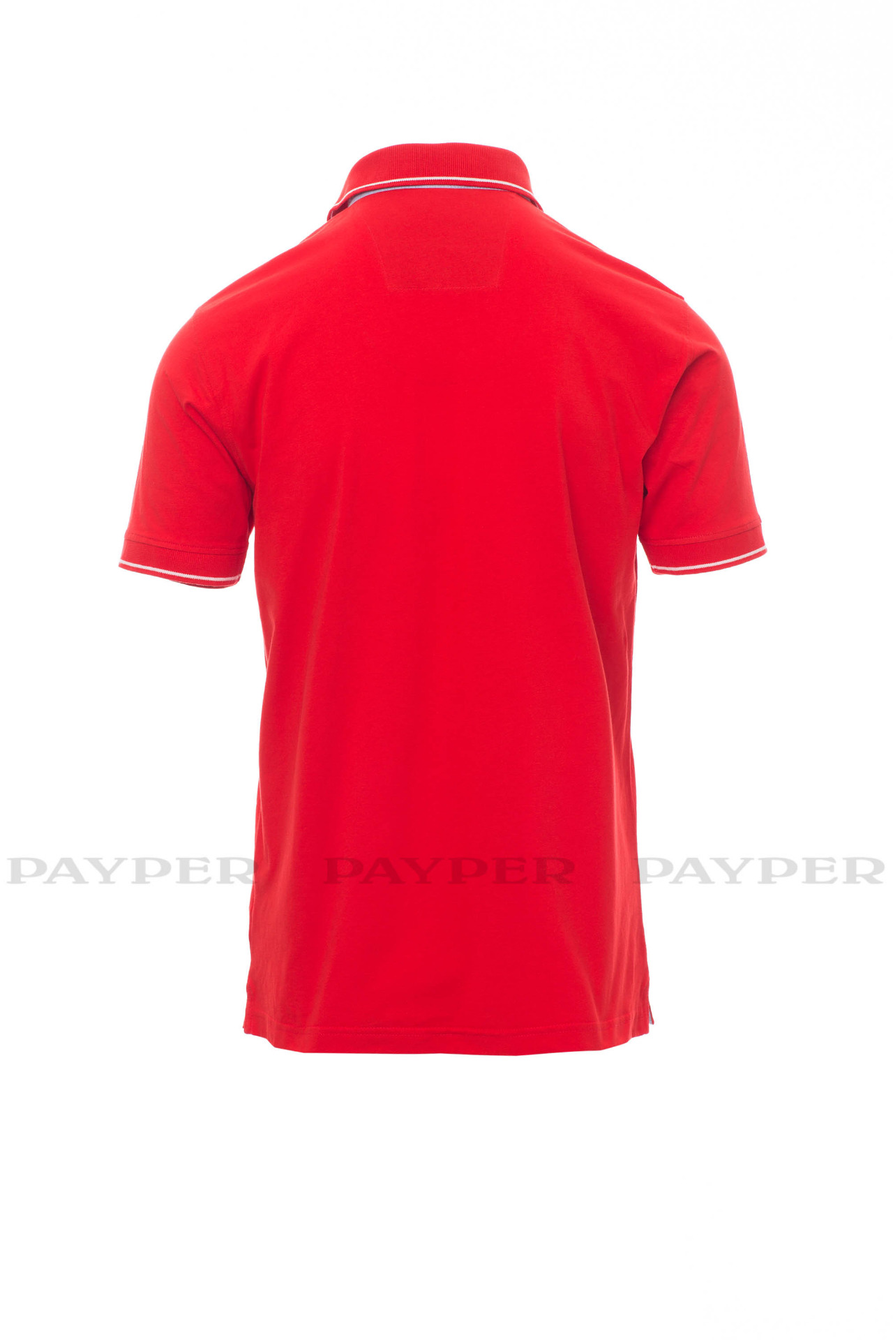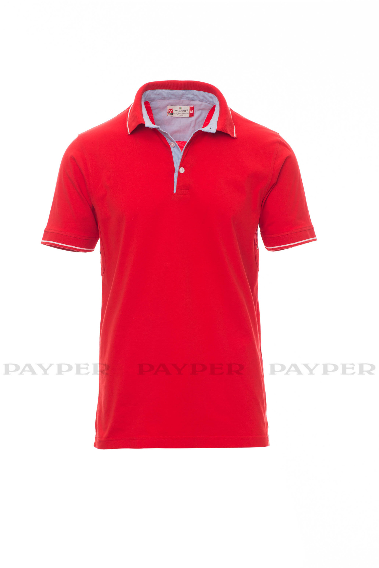 Men's short-sleeved polo shirt with 3 white buttons, inside collar, flap
