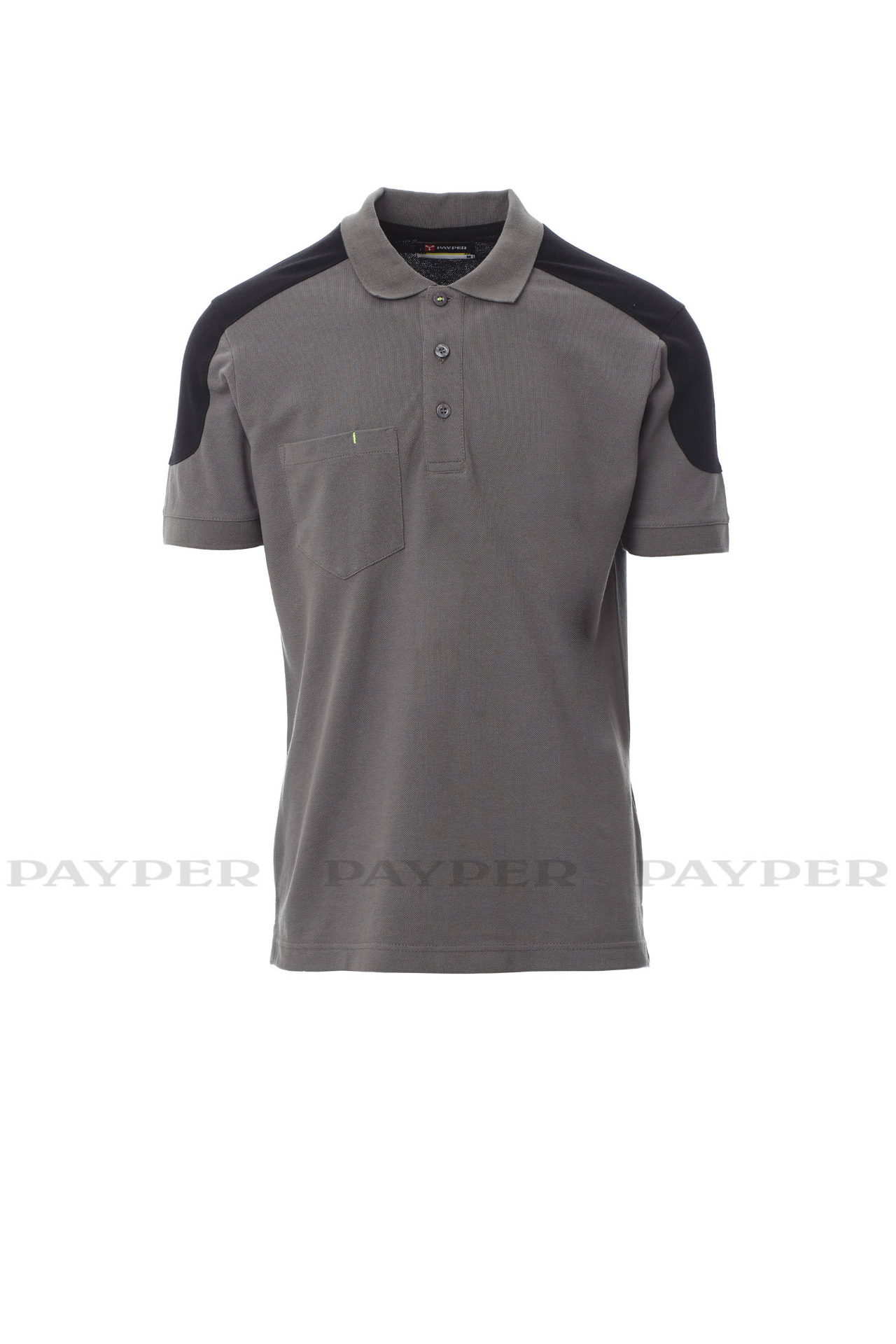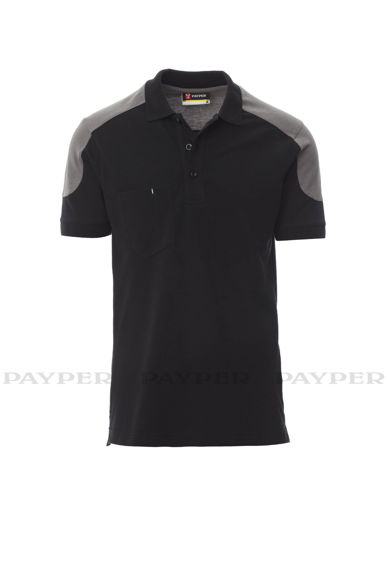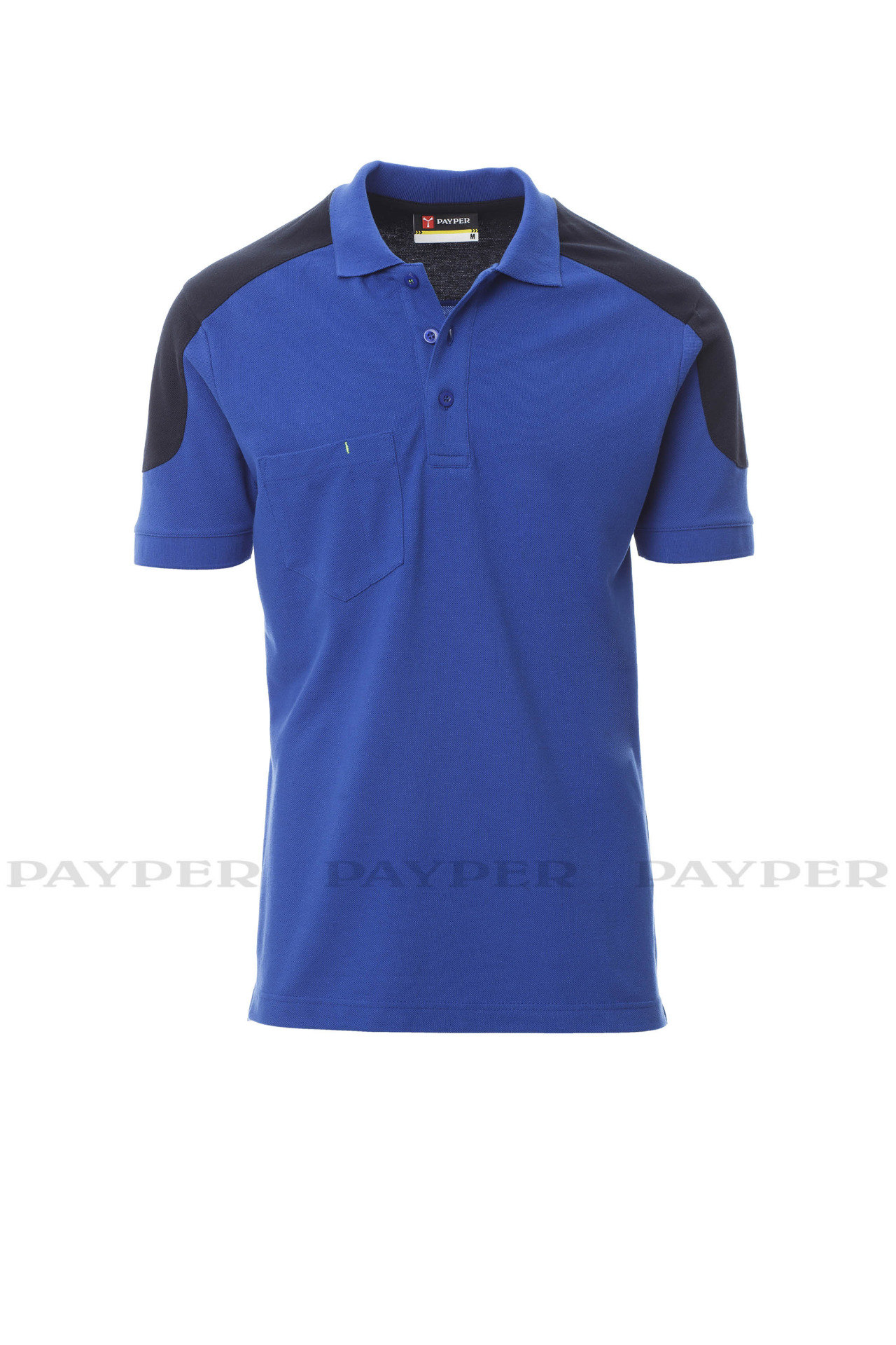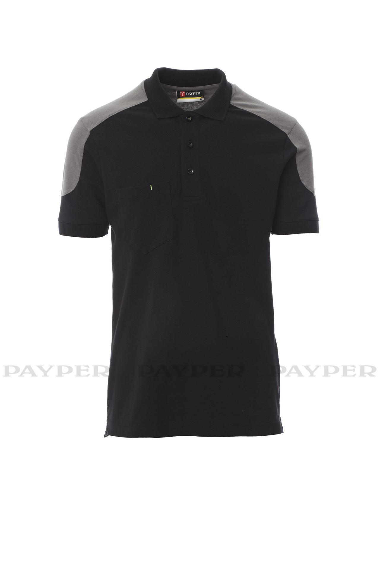 Short-sleeved two-tone polo shirt with 3 matching buttons, breast pocket