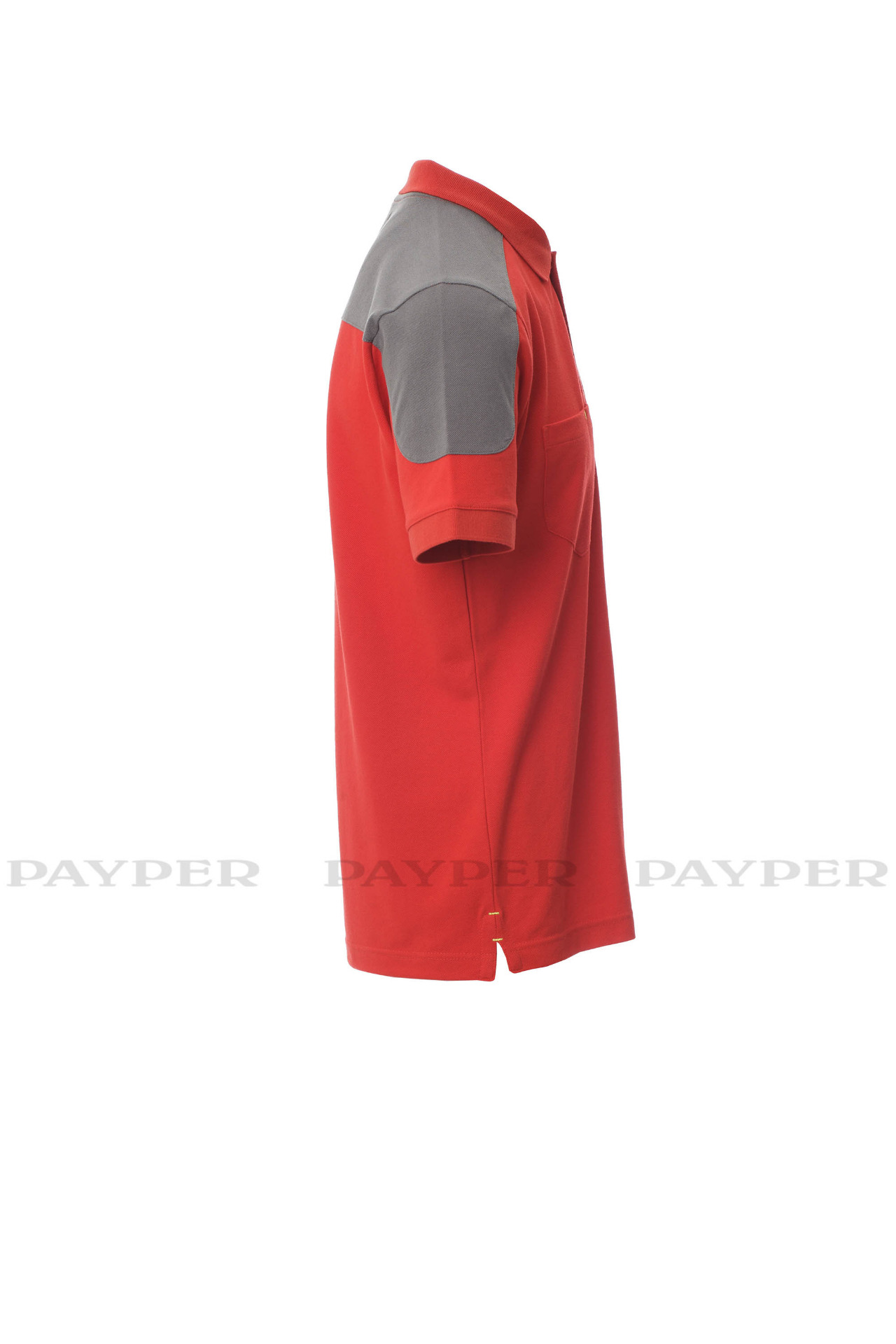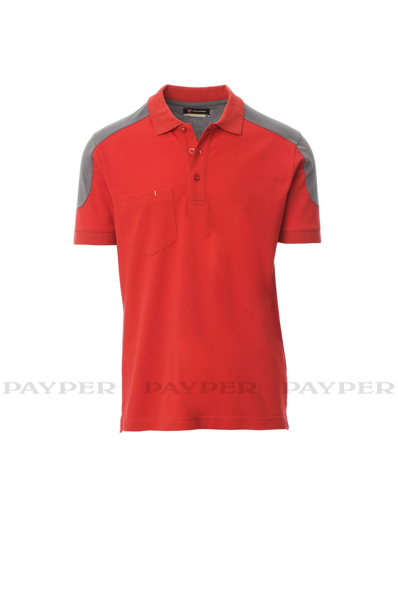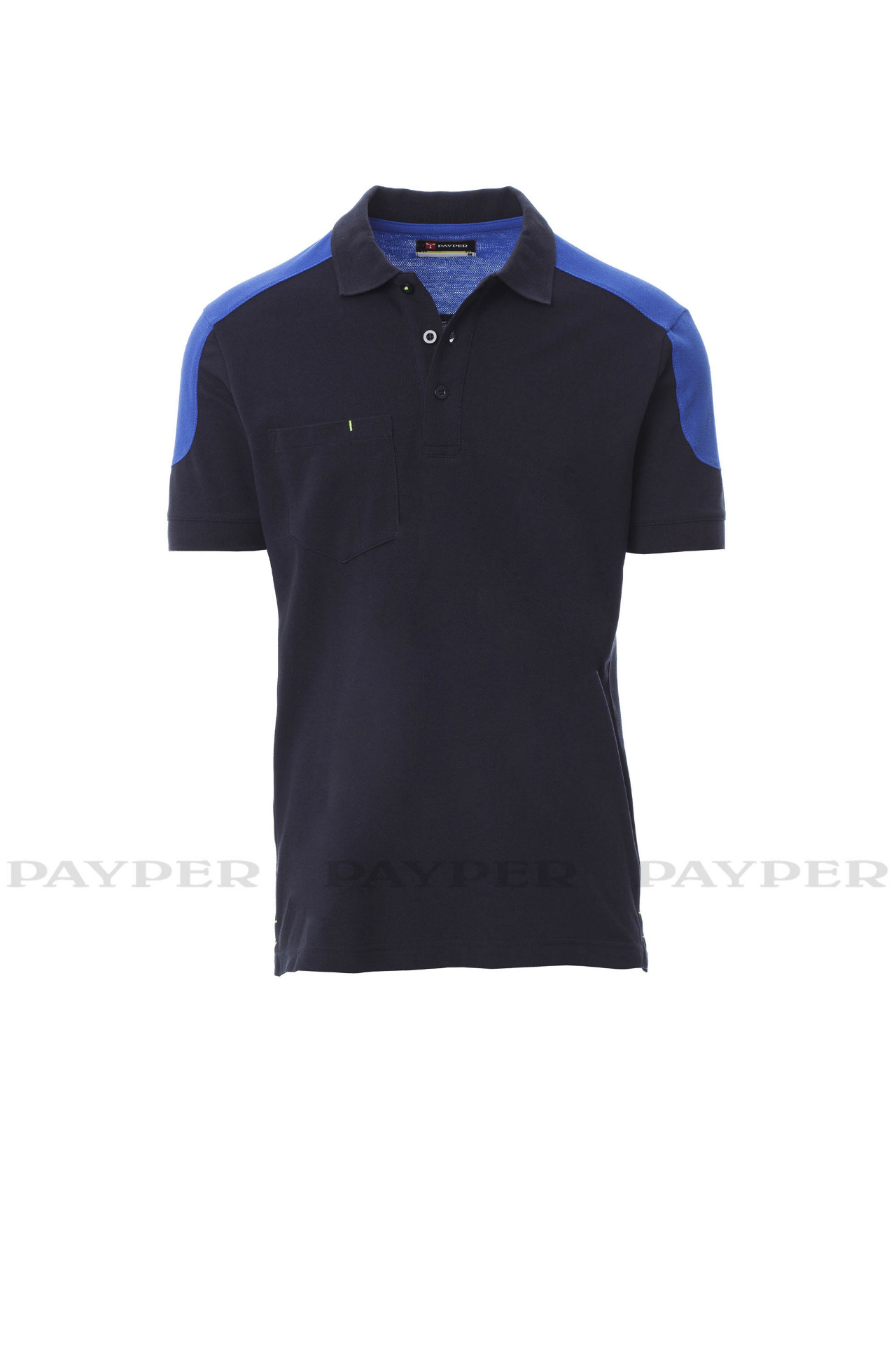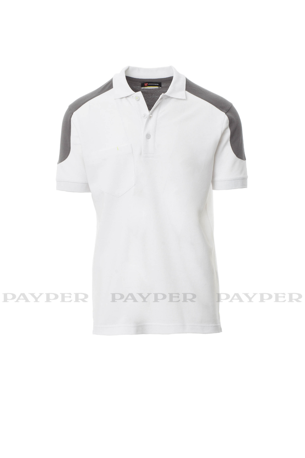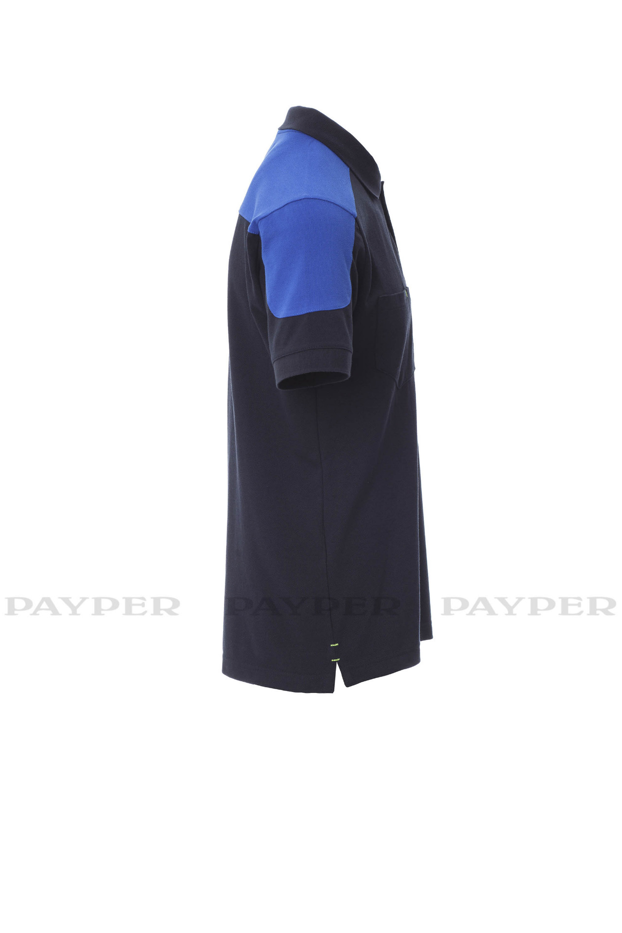 Short-sleeved two-tone polo shirt with 3 matching buttons, breast pocket