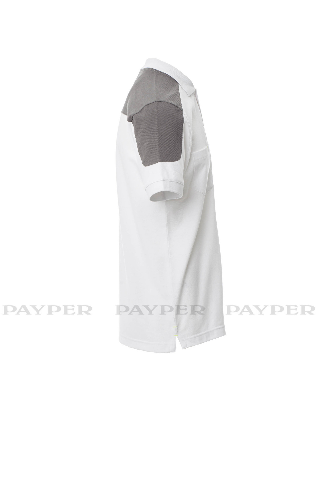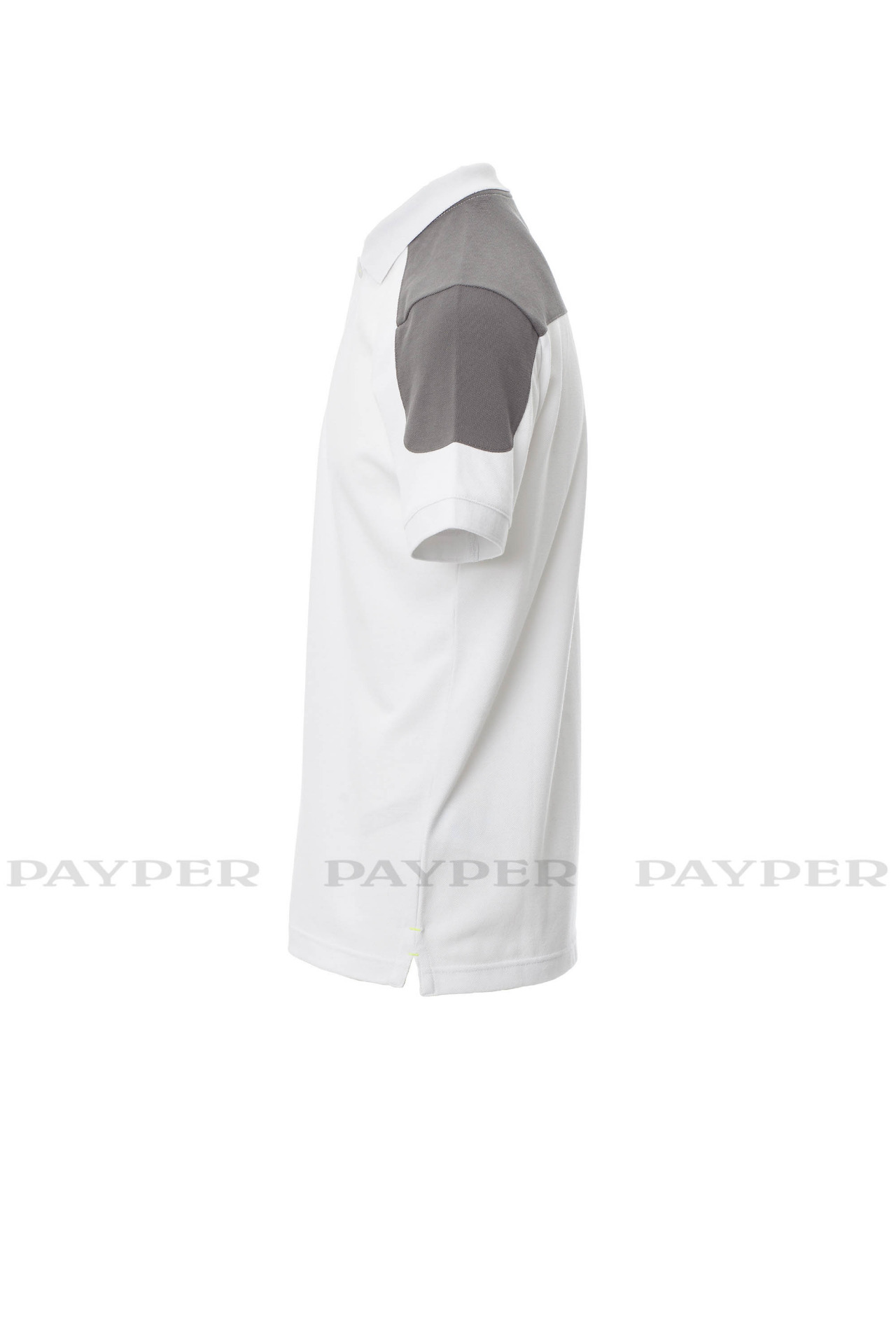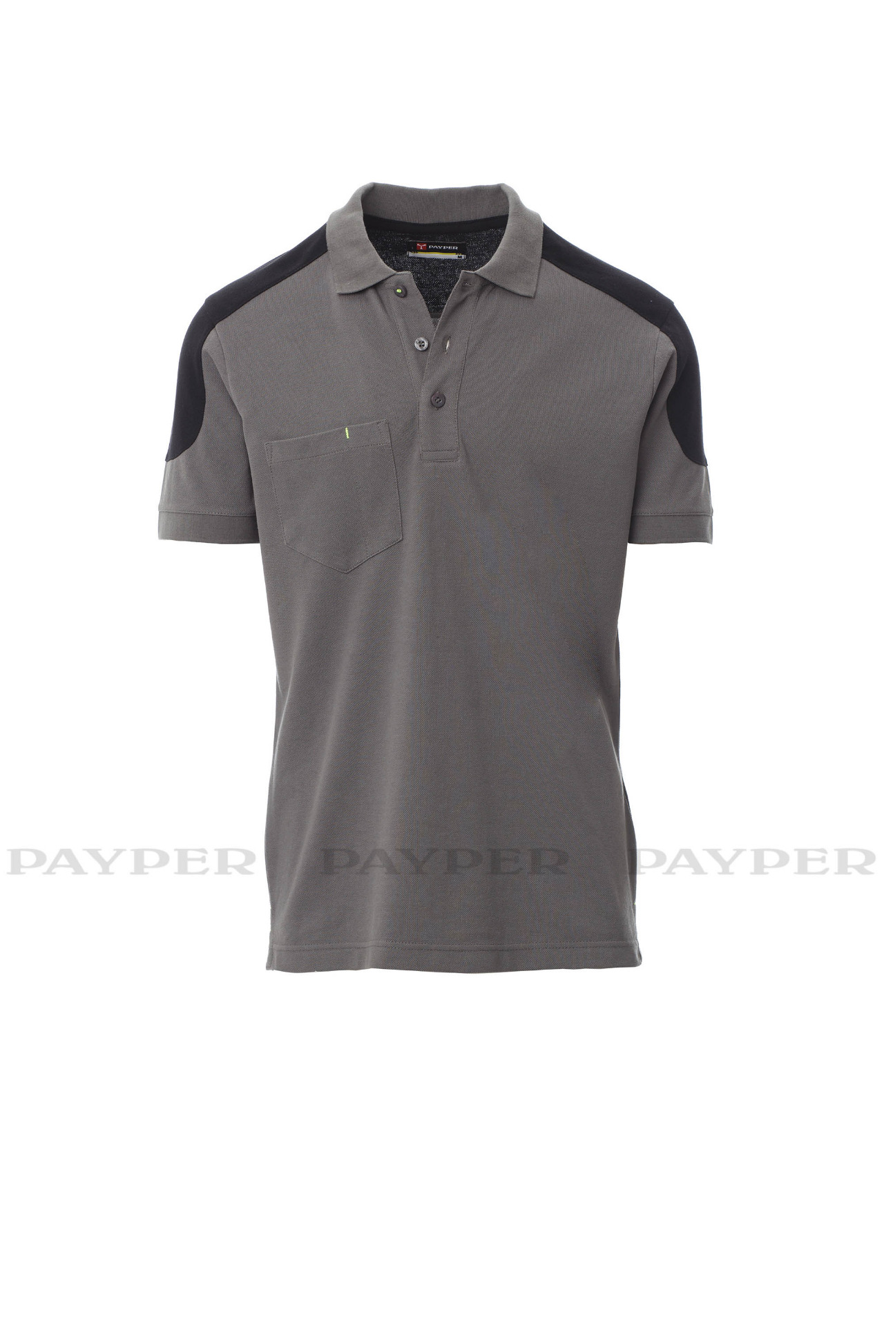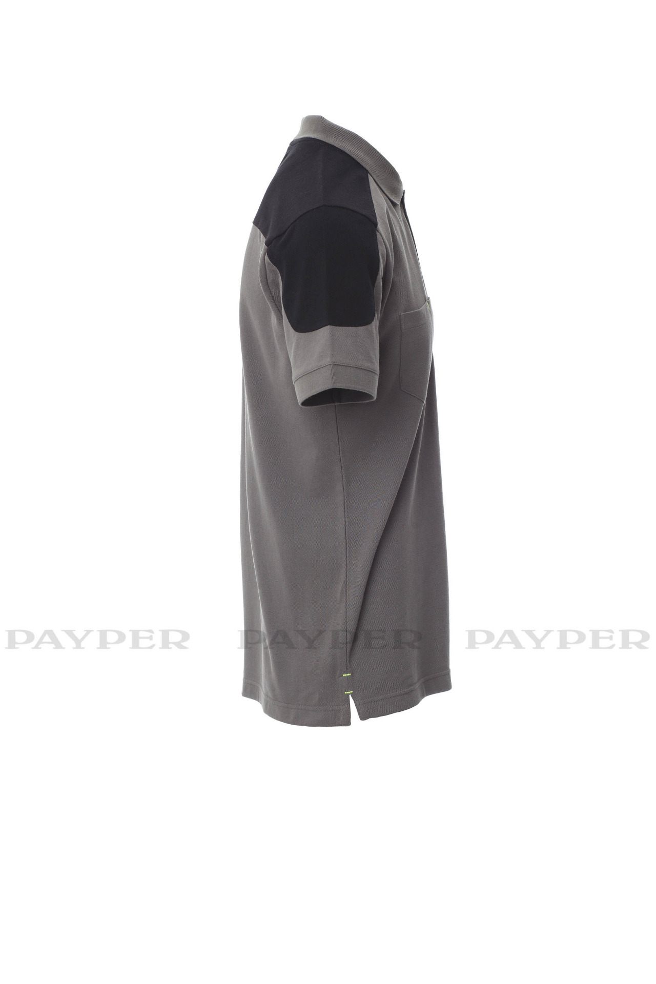 Short-sleeved two-tone polo shirt with 3 matching buttons, breast pocket