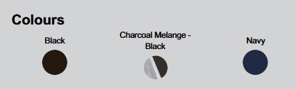 Colours: Black, Charcoal Melange/Black, Navy
