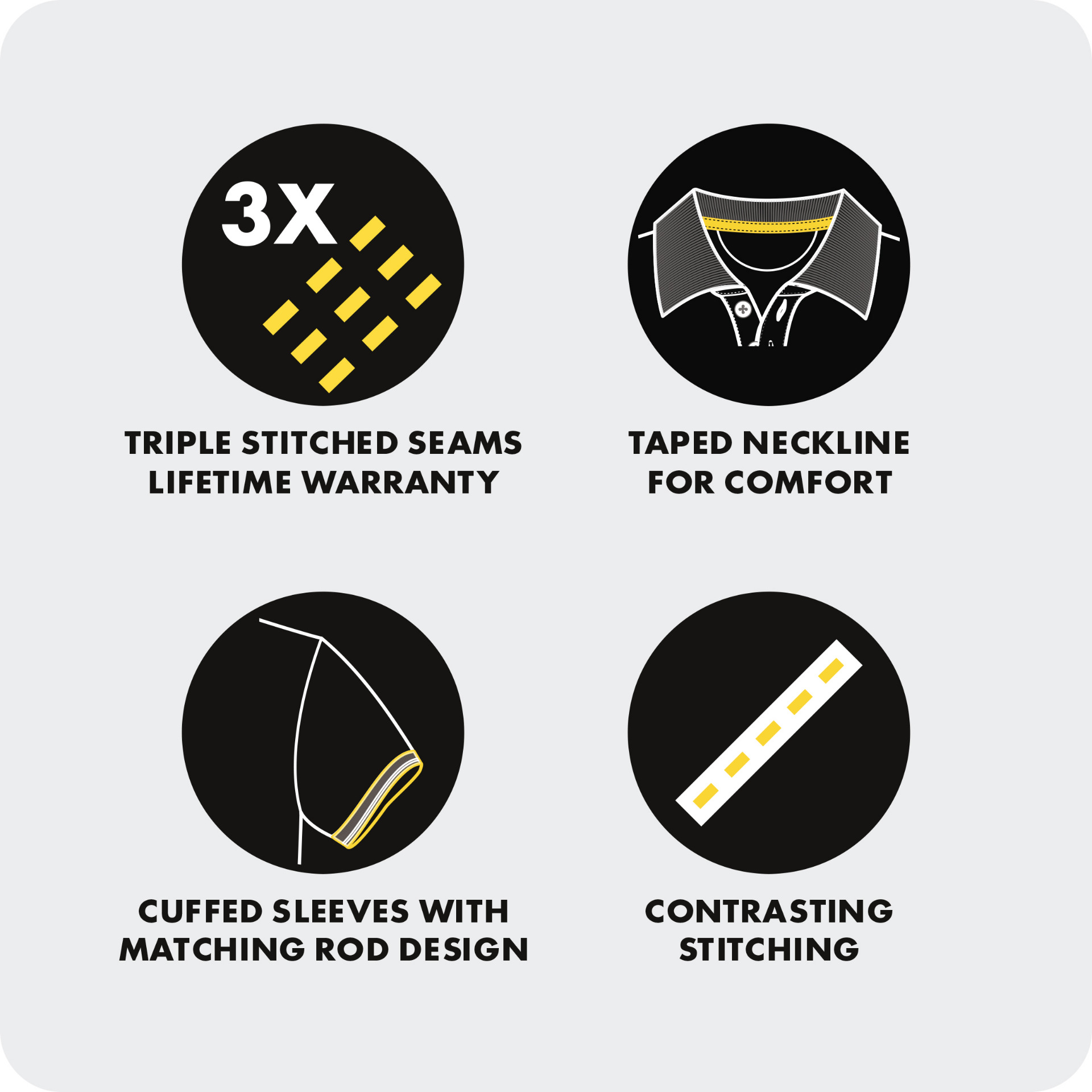 High quality, premium polycotton poloshirt - Knitted collar with rod detail and padded, taped neckline for comfort - Cuffed sleeves with matching rod design - Trendy, modern design with contrast stitching alongside the shoulders and side panels - Matching contrast trim to placket edge - Triple stitched on all main seams for ultimate strength - Matching Crane quarter zip sweatshirt, hoodie, and softshell jacket available - Registered design