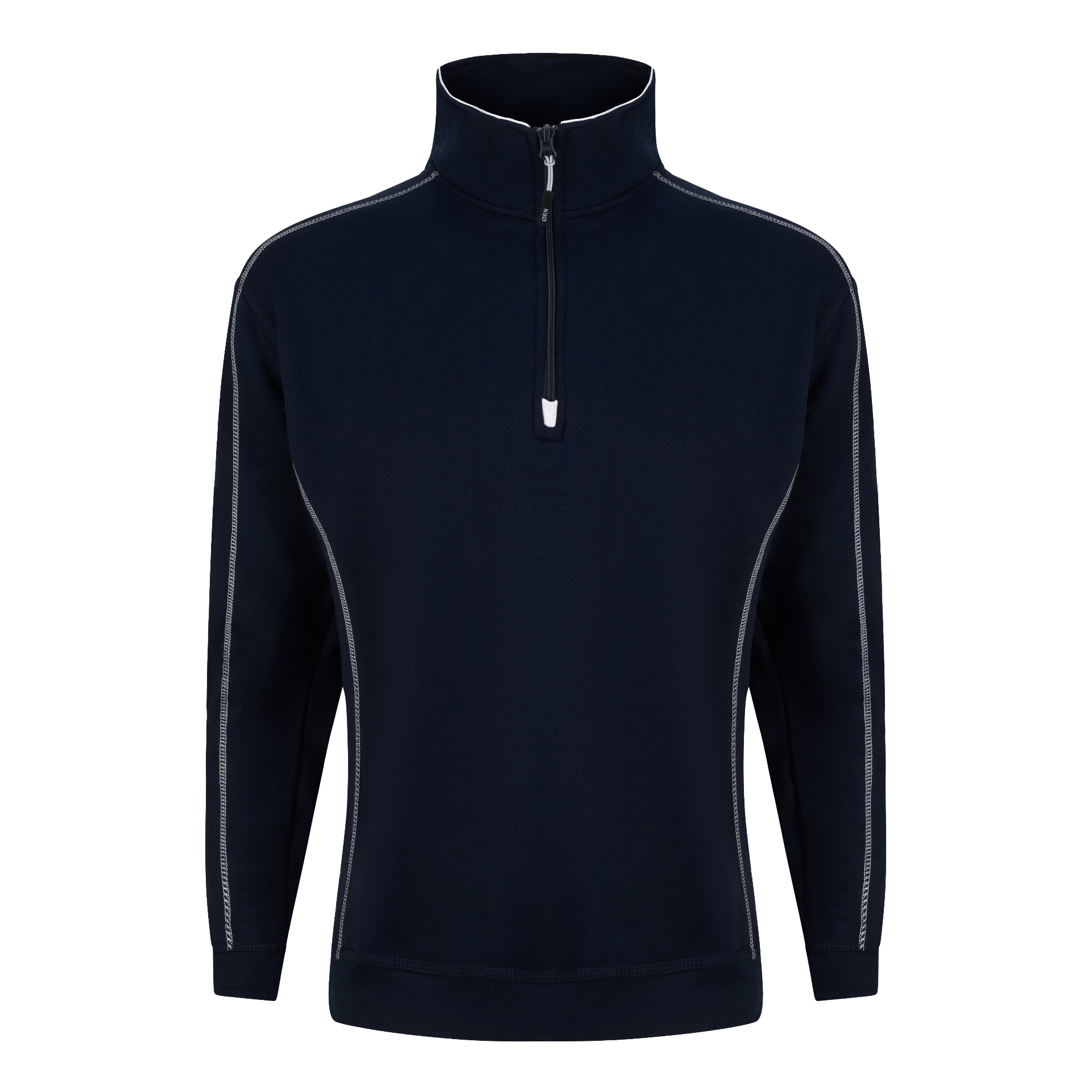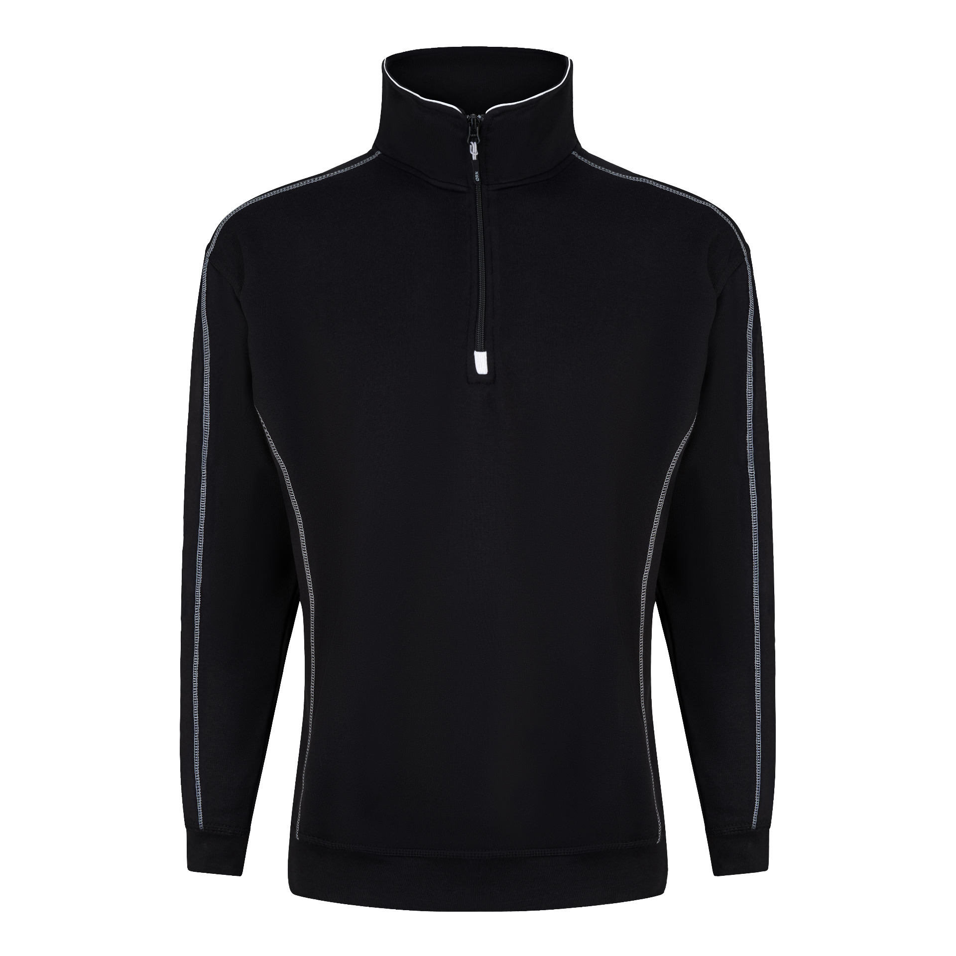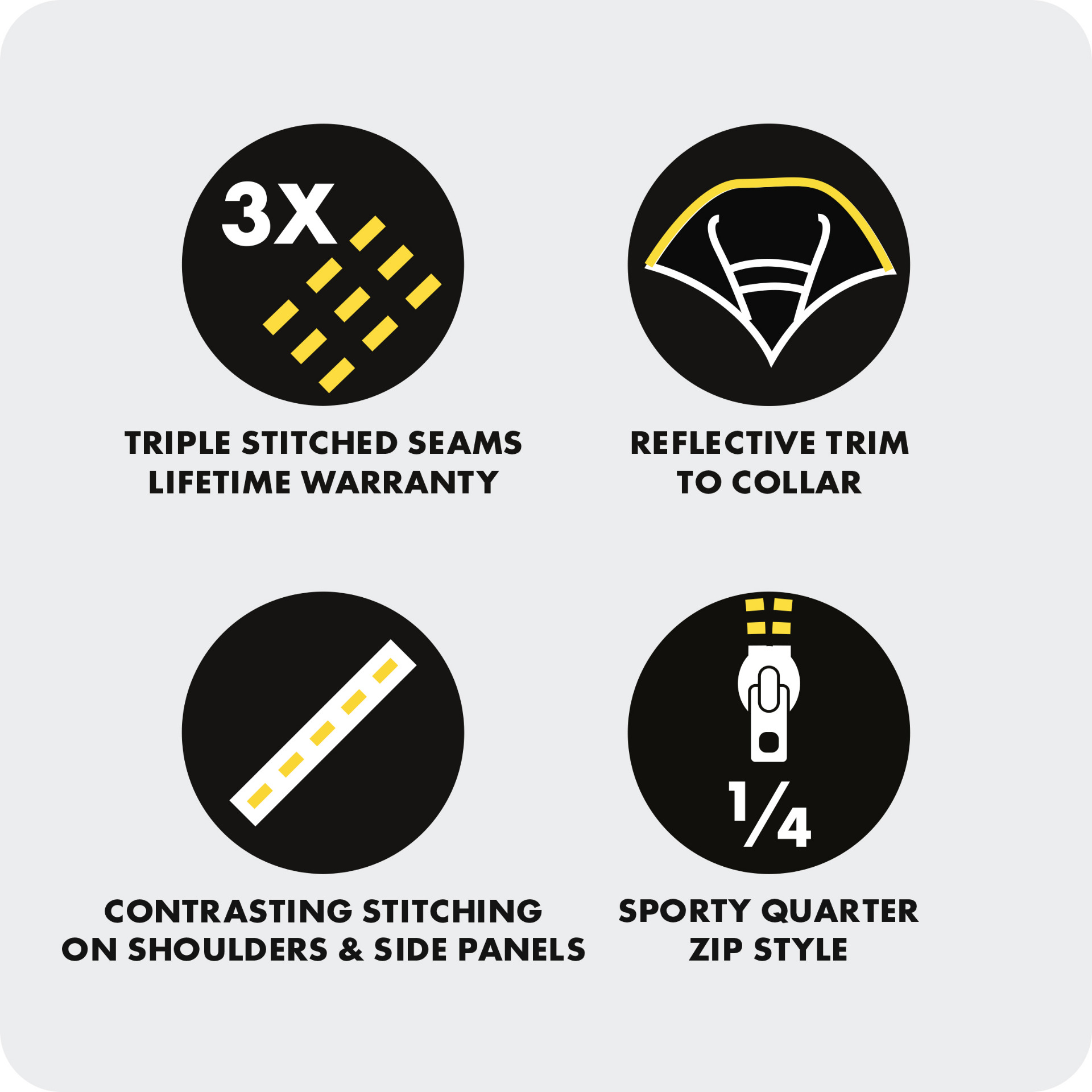 High quality, premium weight sweatshirt, quarter zip - Elasticated cuffs & waistband - Brushed fleece inner for superior comfort - Half moon yoke at neck - Trendy, modern design with contrast stitching along the shoulders and side panels - Reflective trim to edge of collar - Triple stitched on all main seams for ultimate strength - Matching contrast trim on zip guard - YKK zips with lifetime warranty - Matching Crane polycotton poloshirt, hoodie and softshell jacket available - Registered design