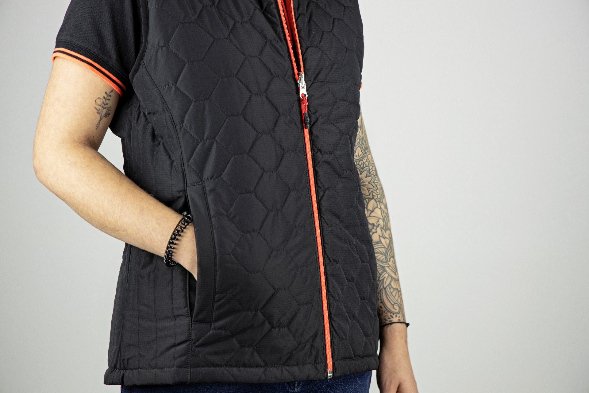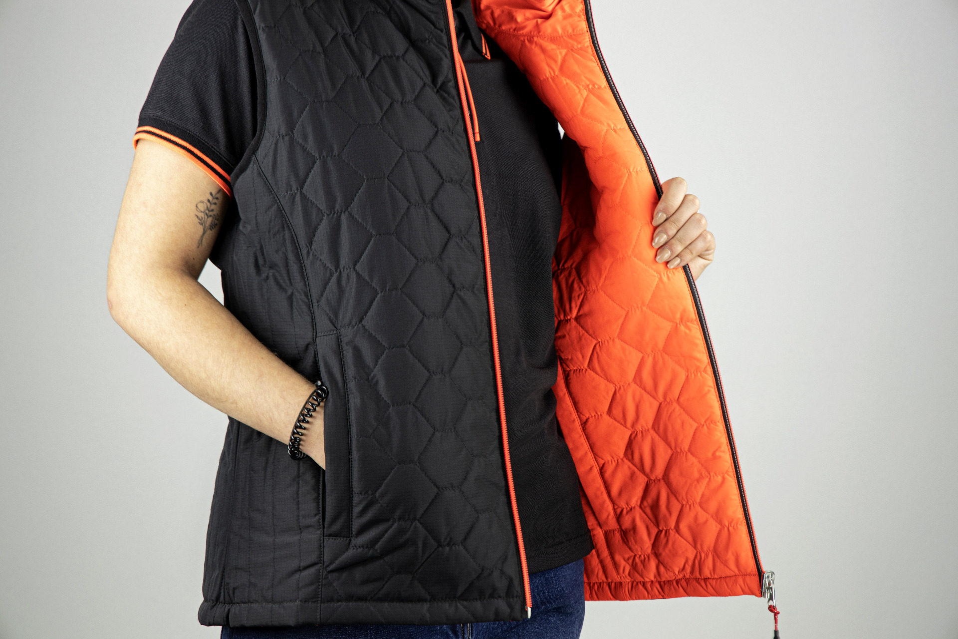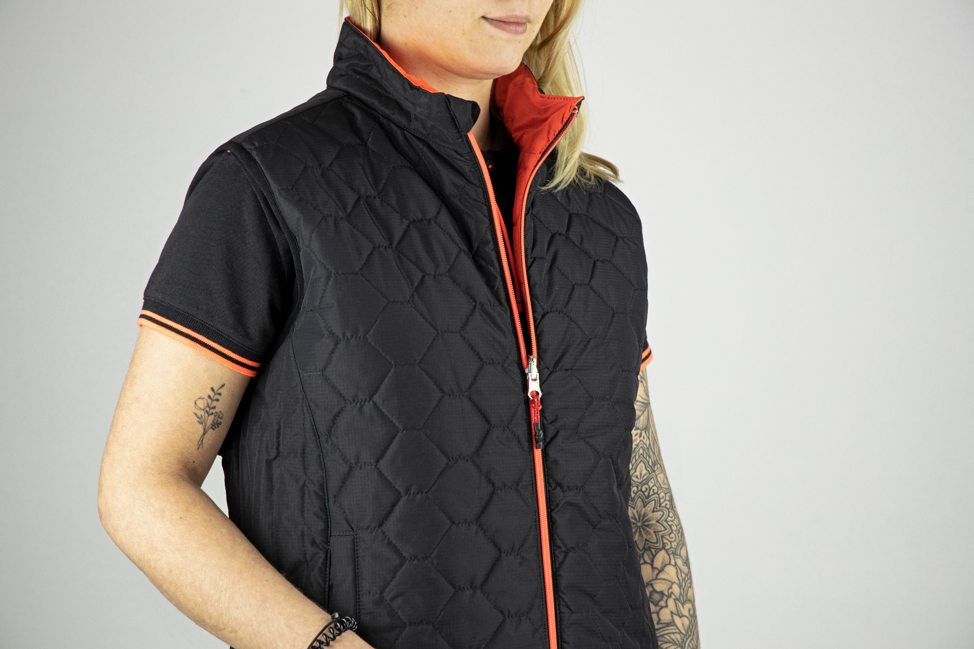 Reversible bodywarmer with diamond and striped padding on small sides and shoulders - High collar with