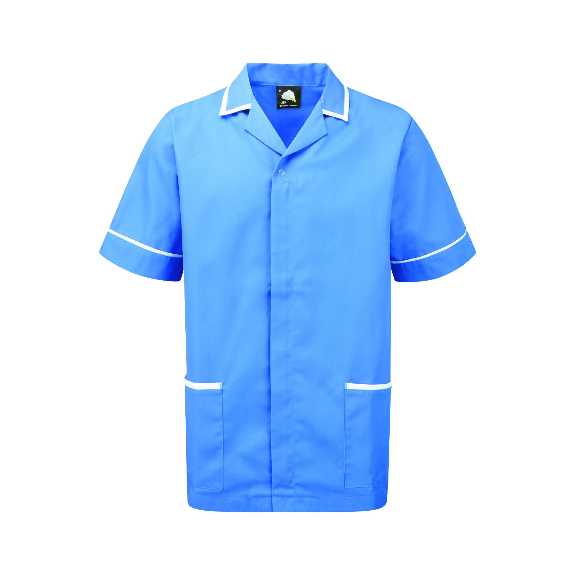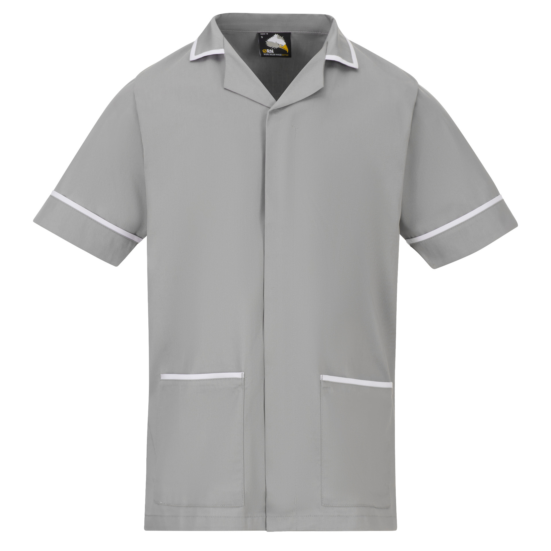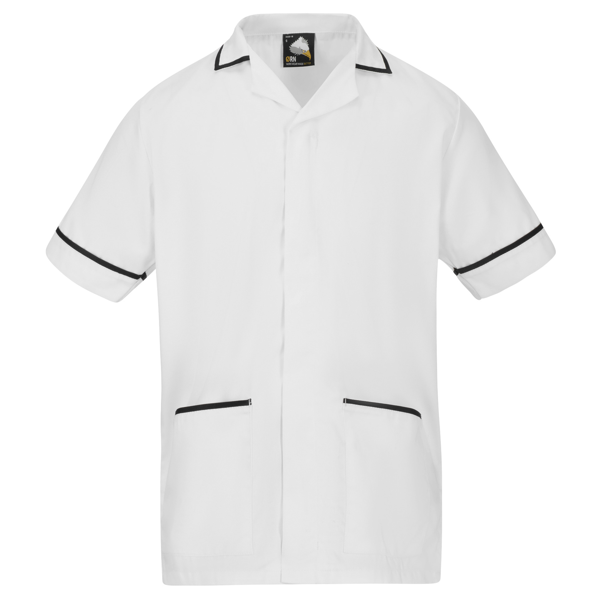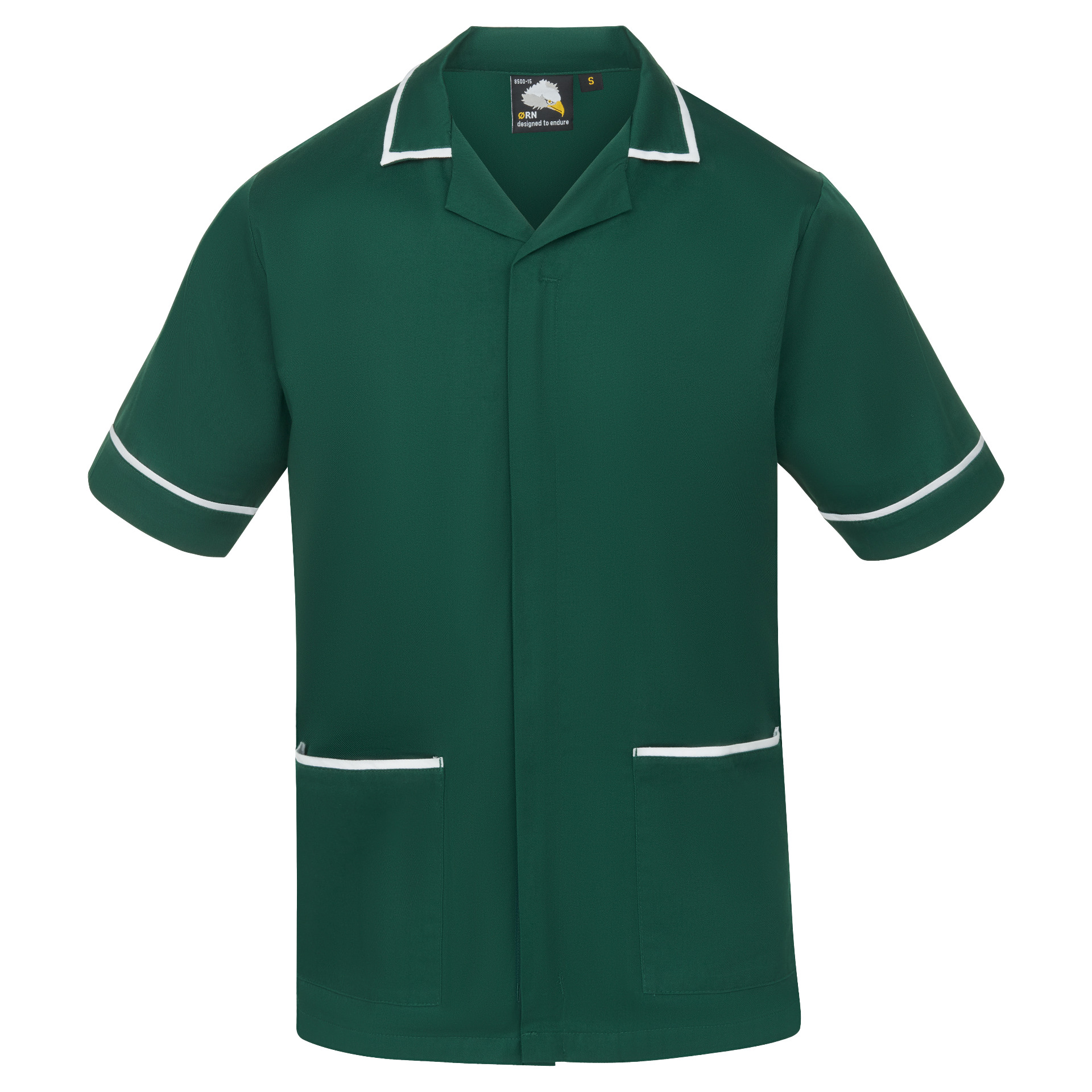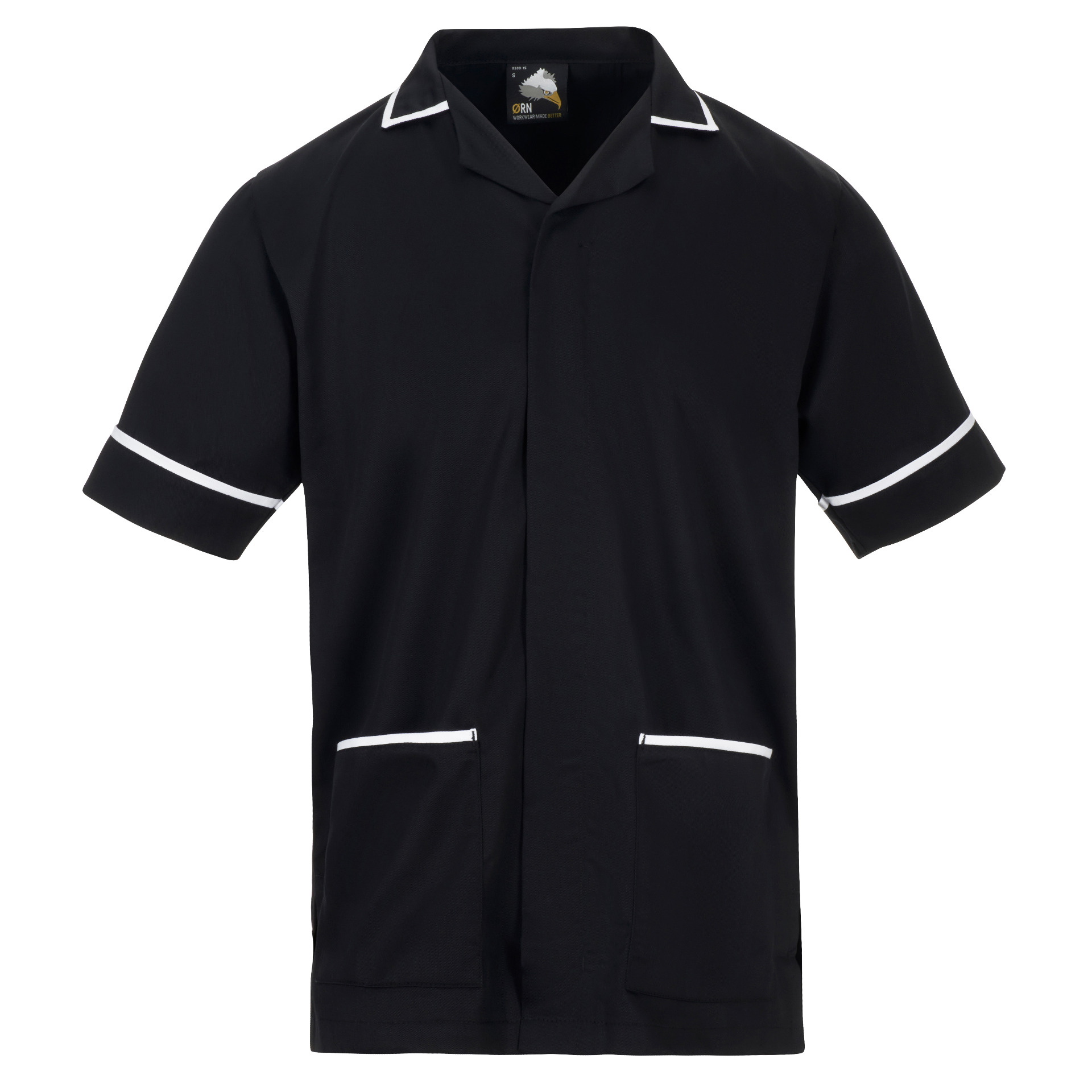 Male tunic - Contrast trim on the collar - Double action back for comfort - Concealed zip to prevent po1sibility of scratching - Side vents for ease of movement - Two front hip pockets with contrasting trim