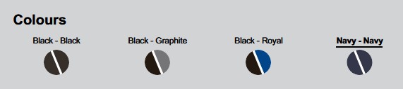 Colours: Black/Black, Black/Graphite, black/Royal Blue, Navy/Navy