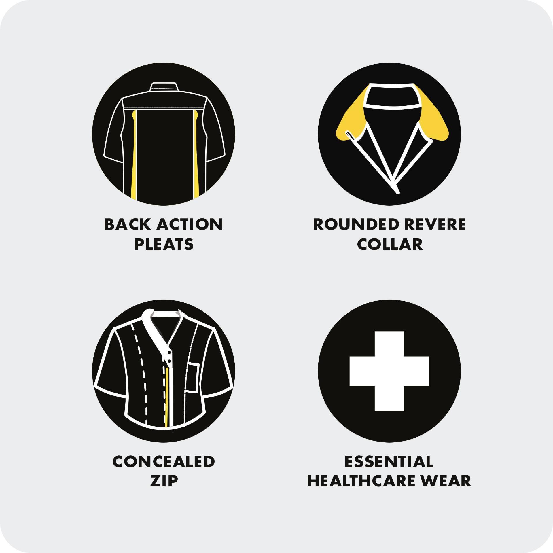Essential tunic for the healthcare industry - Double action back for comfort - Concealed zip to prevent possibility of scratching - Side vents for ease of movement - The essential tunic for all healthcare workers - nurses, vets, dentists, therapists and technicians - • Cleverly cut to provide ease of movement, this is the 'go to' tunic for busy healthcare professionals - Rounded revere collar - One lined left chest pocket, two lined right chest pockets - Two front hip pockets with contrasting trim - Made from hard wearing, easy care fabric