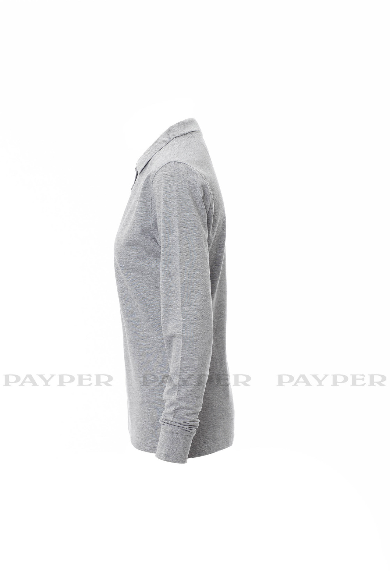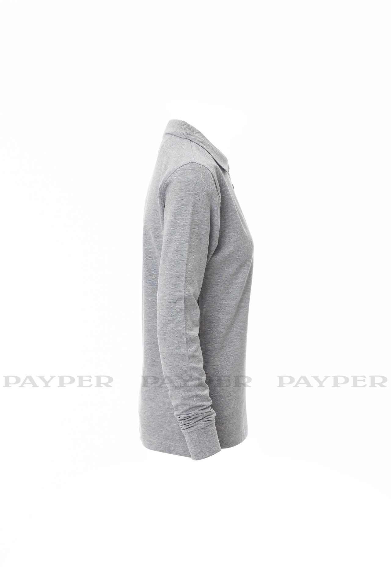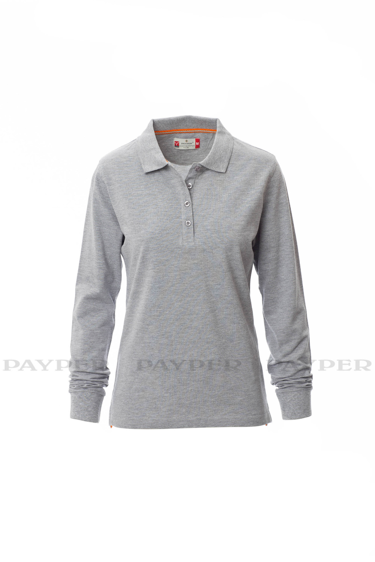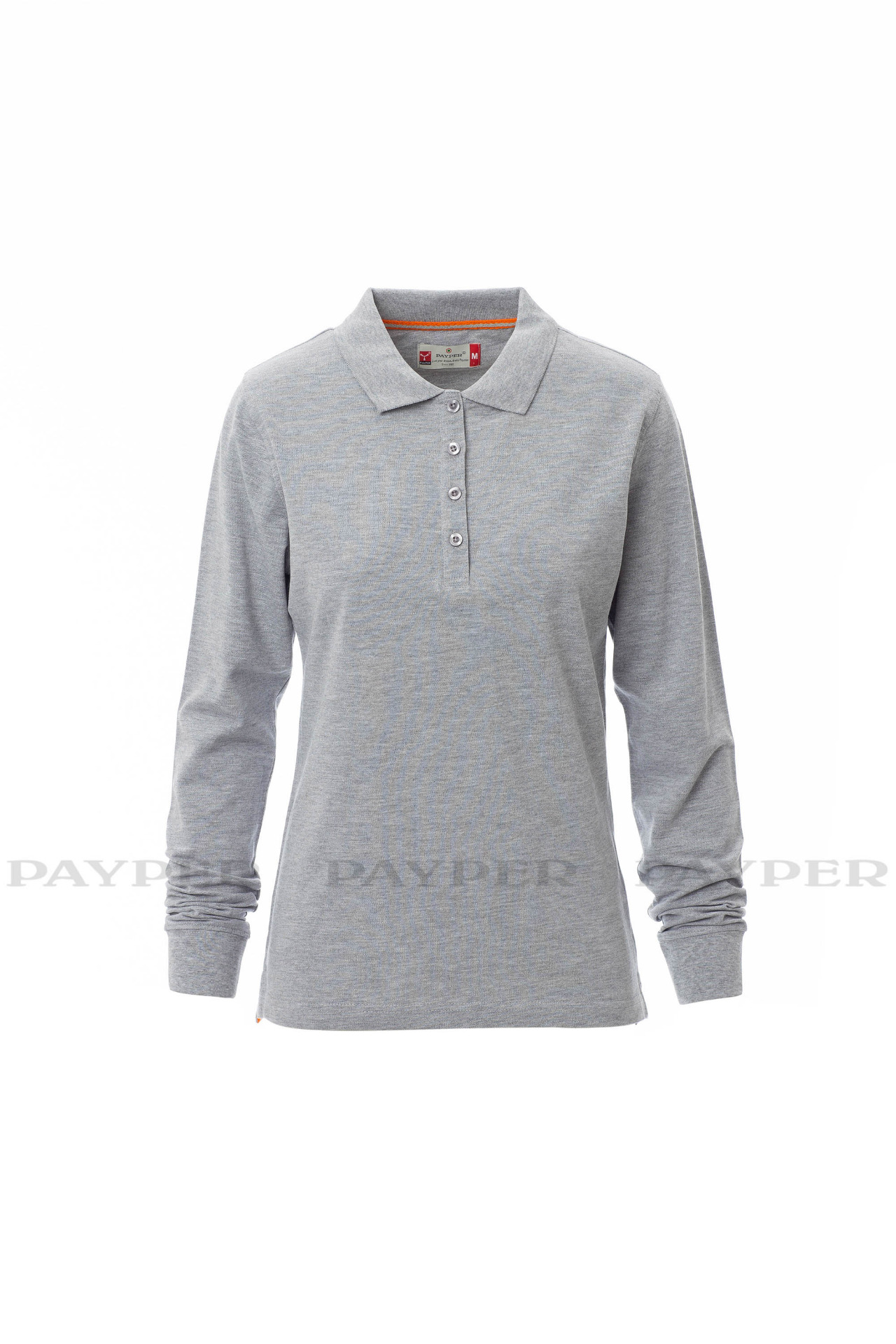 Women's long-sleeved fitted polo shirt with 4, matching, mother-of-pearl