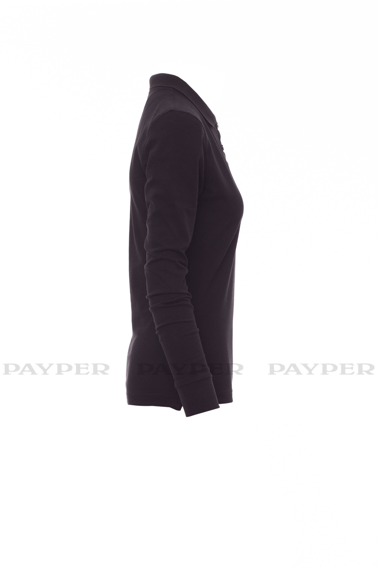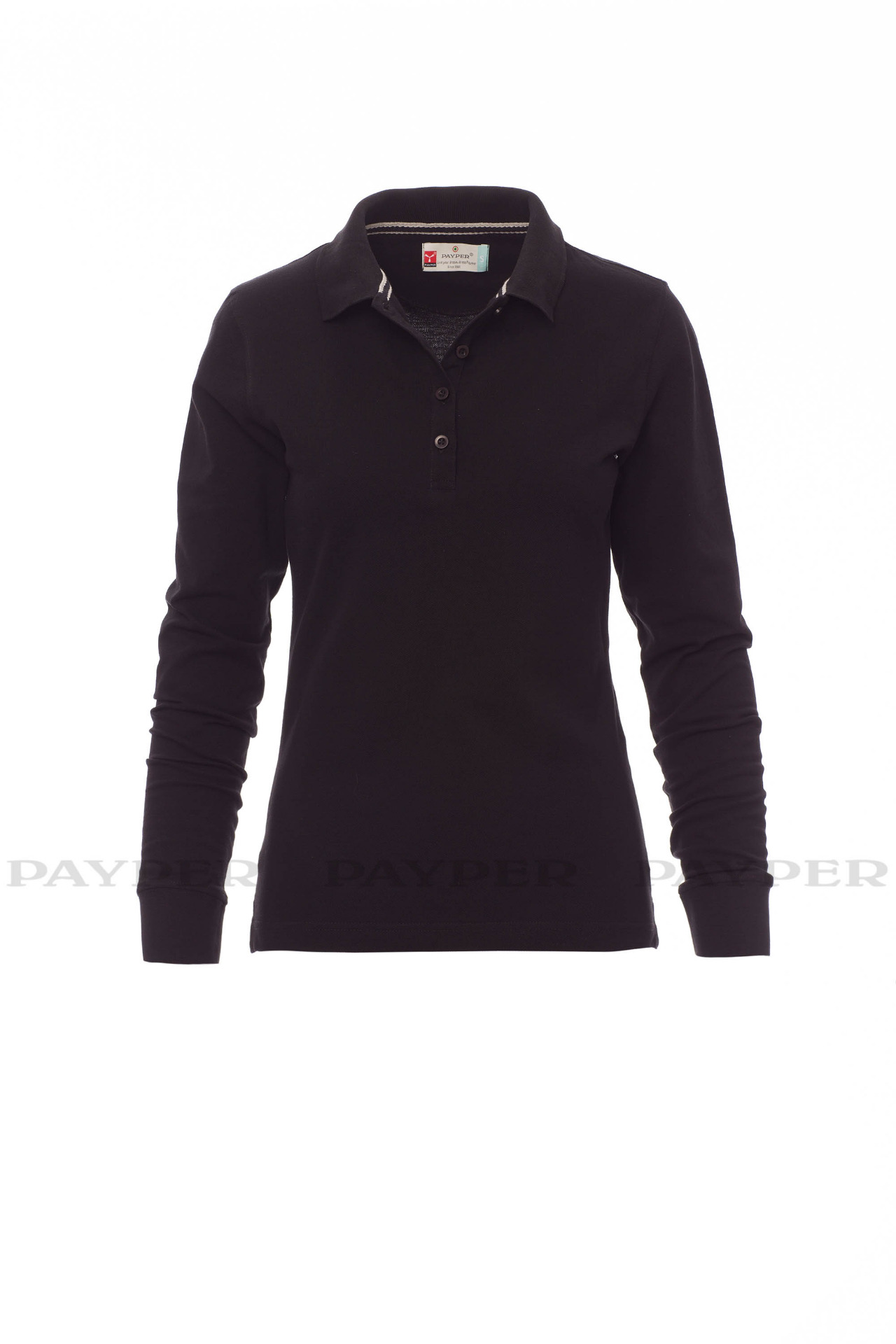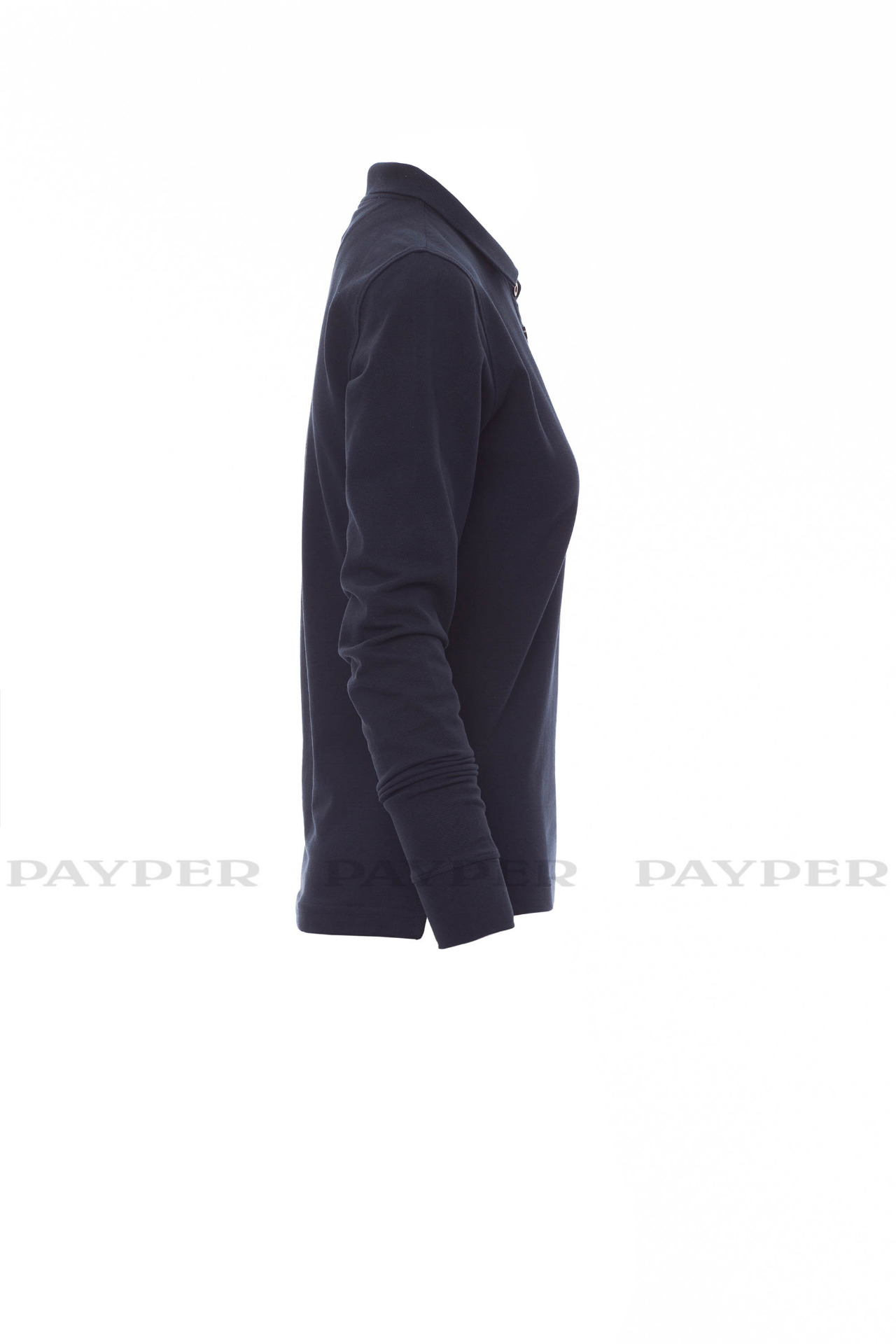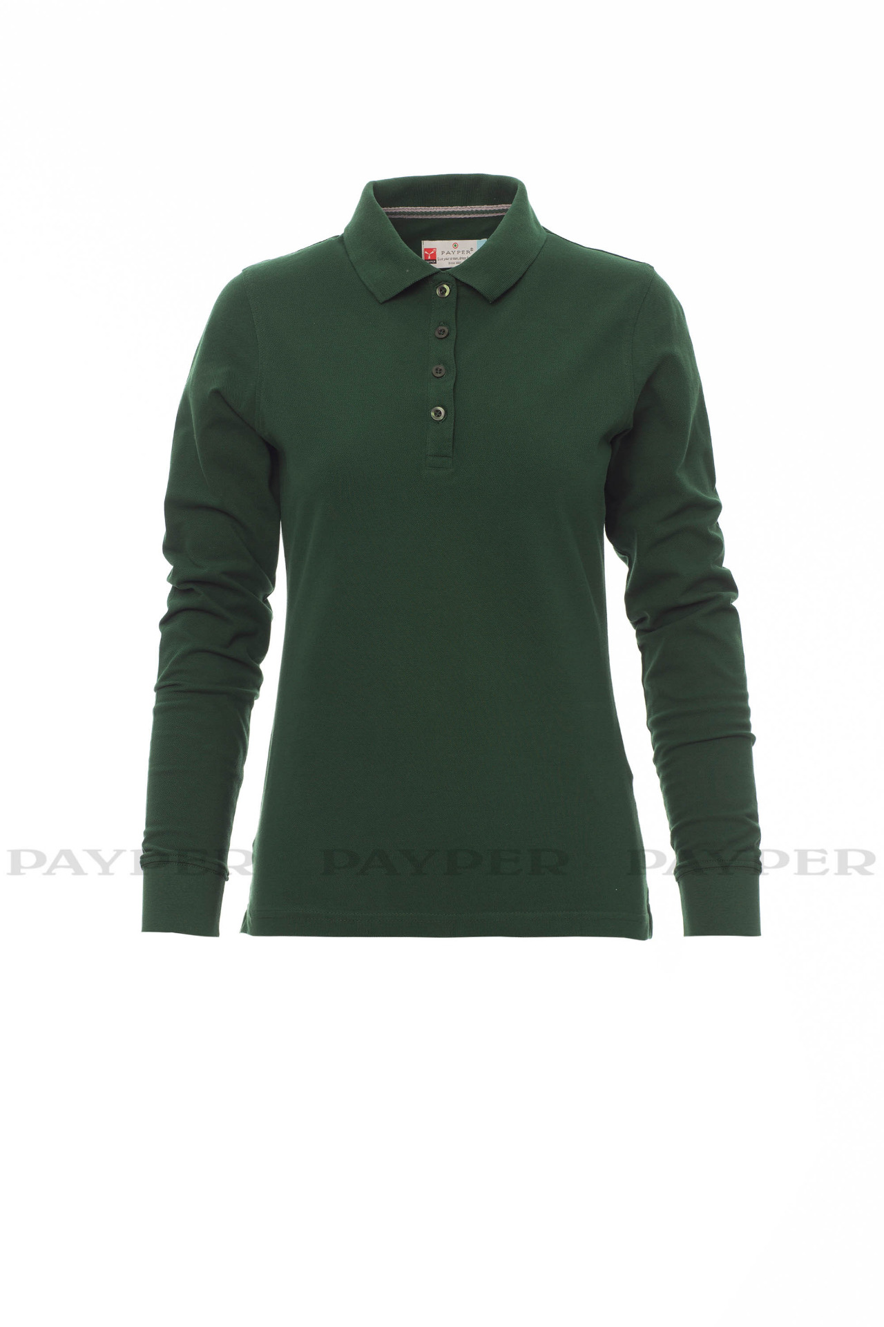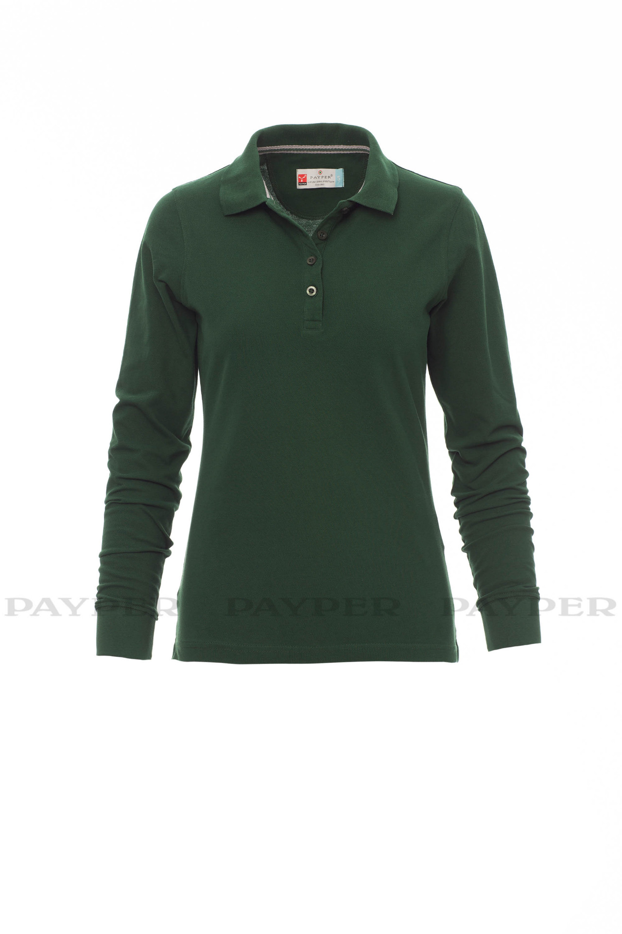Women's long-sleeved fitted polo shirt with 4, matching, mother-of-pearl