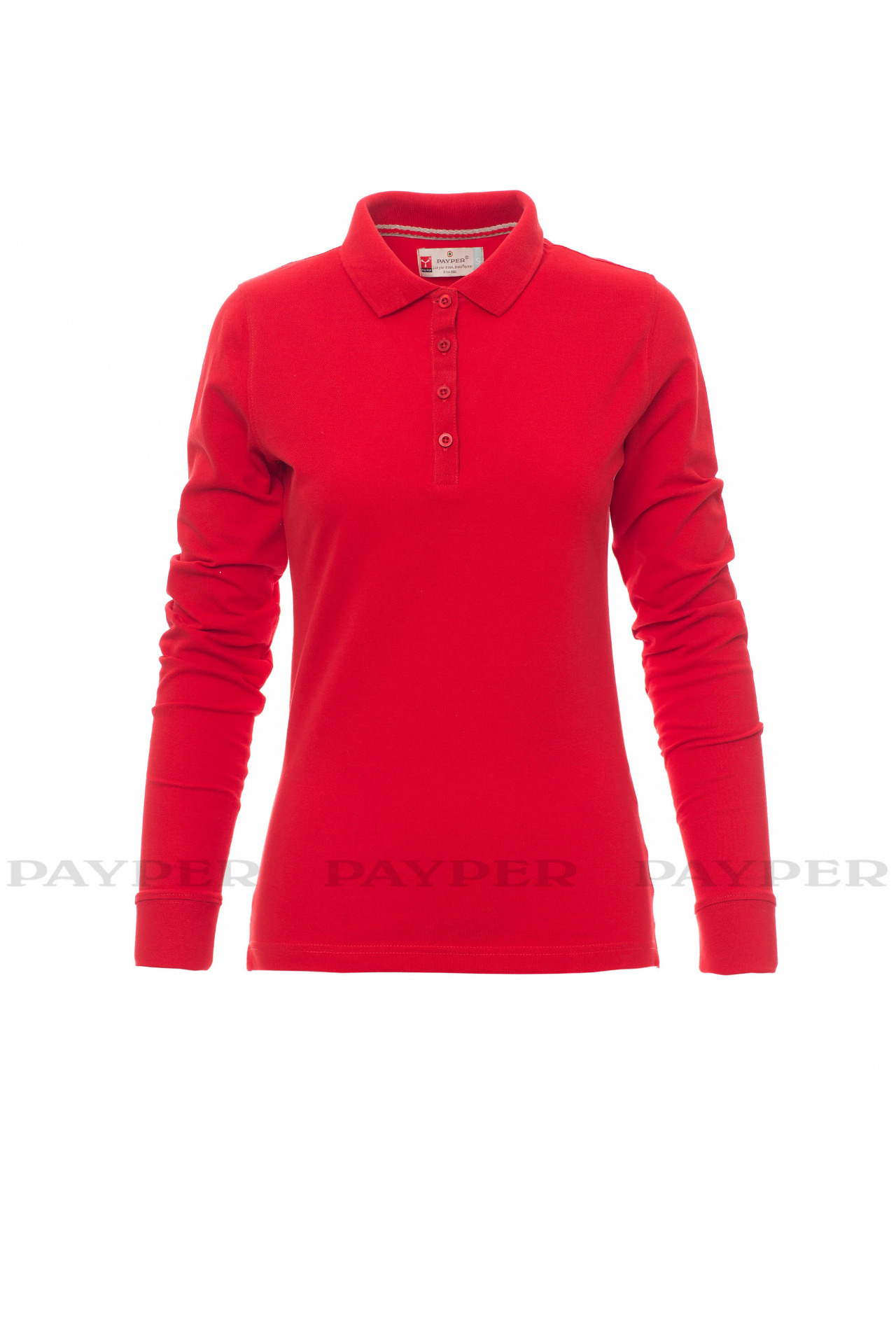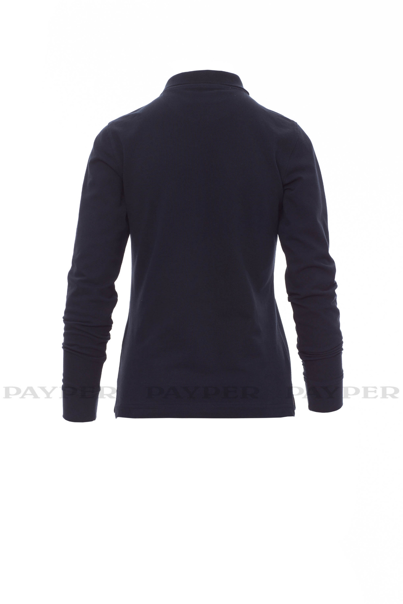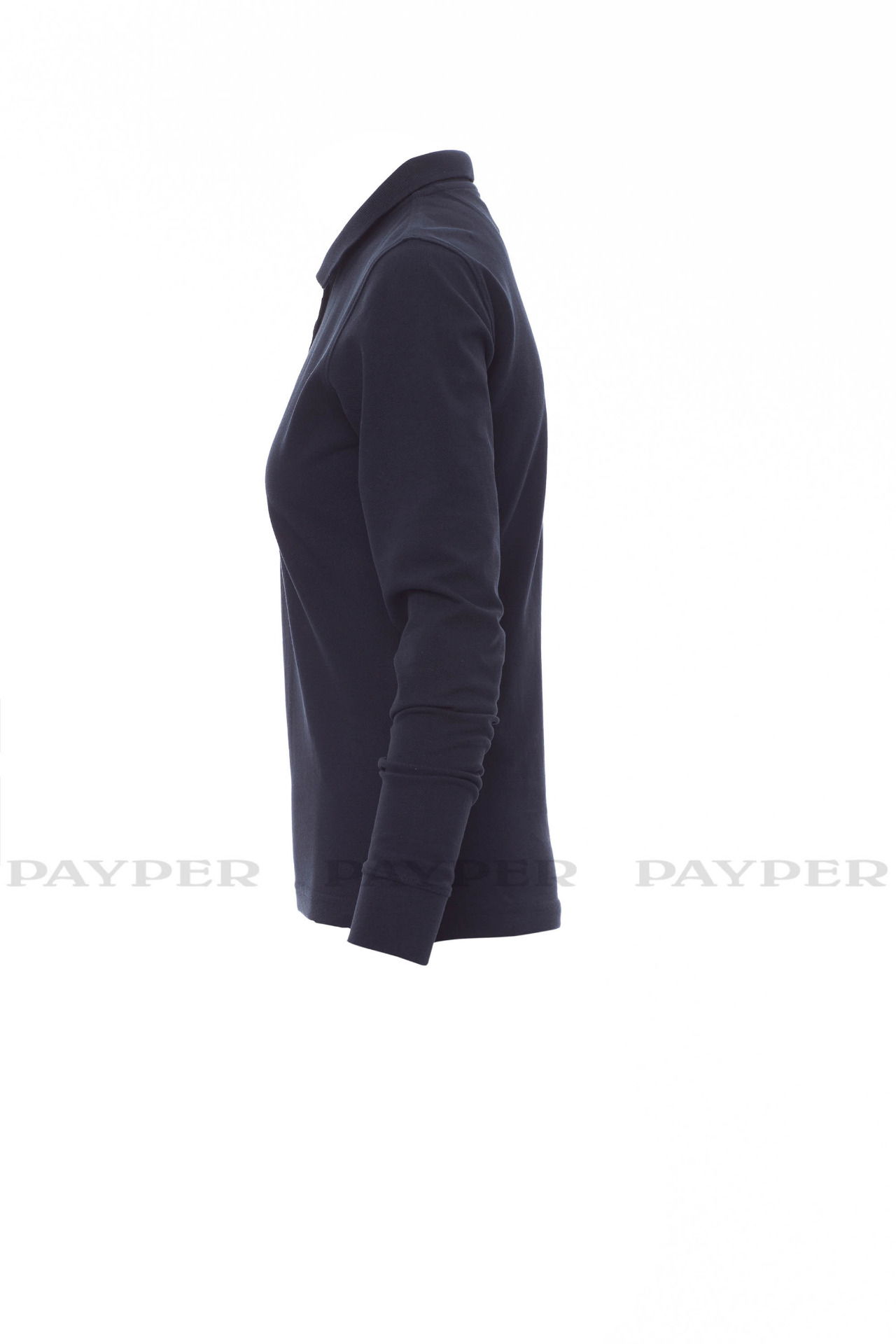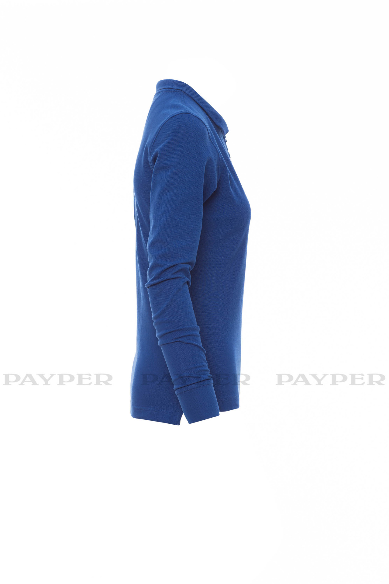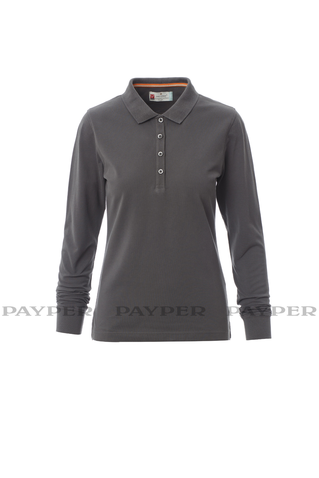 Women's long-sleeved fitted polo shirt with 4, matching, mother-of-pearl