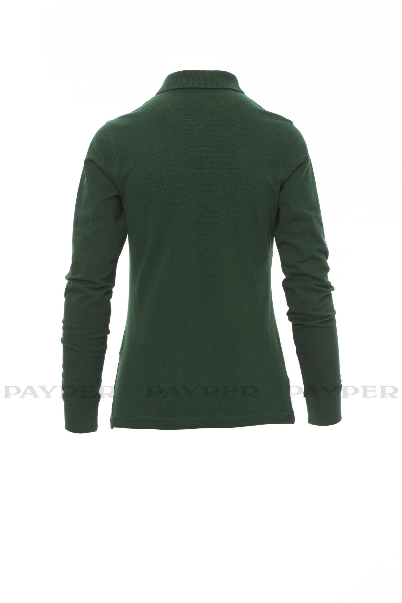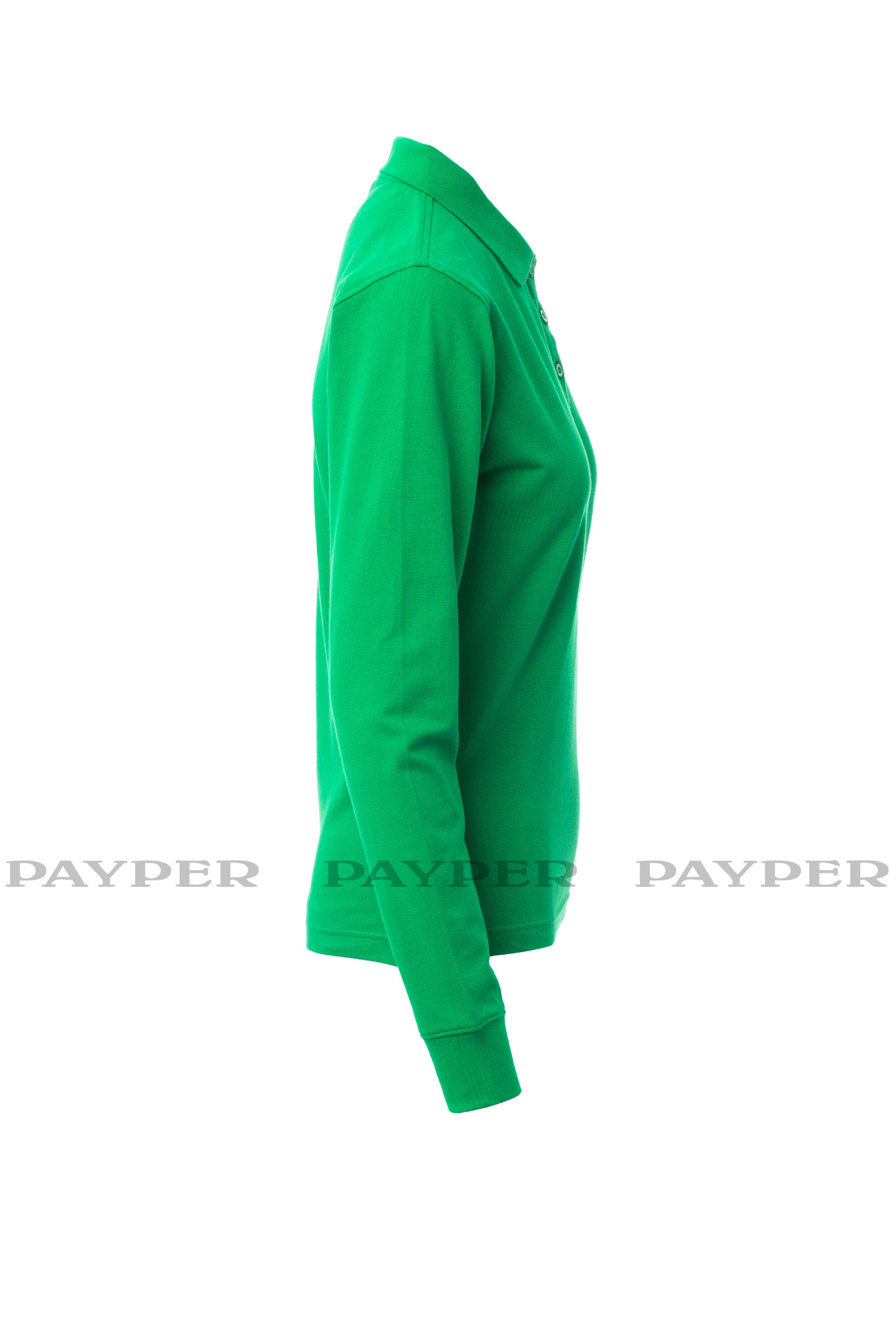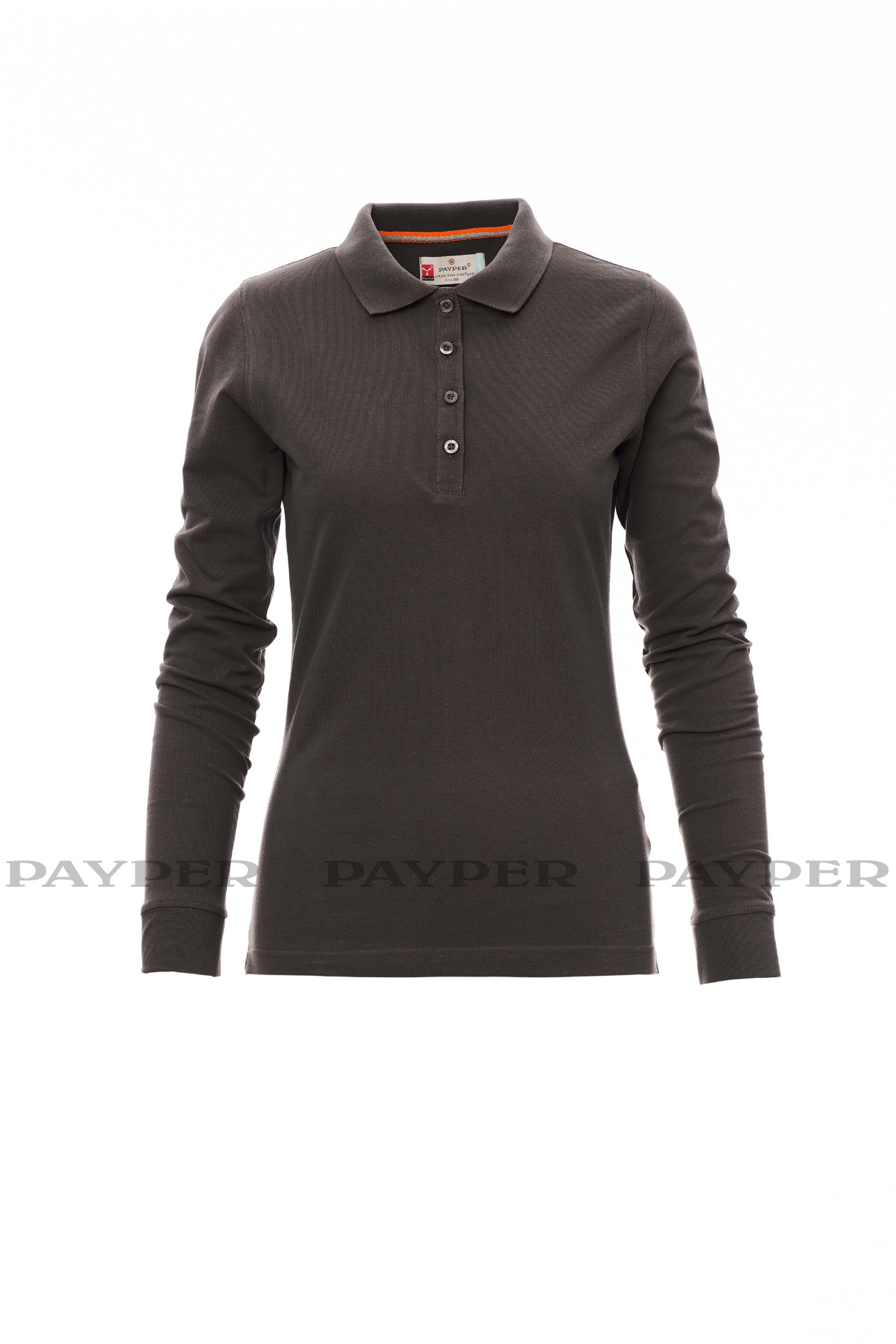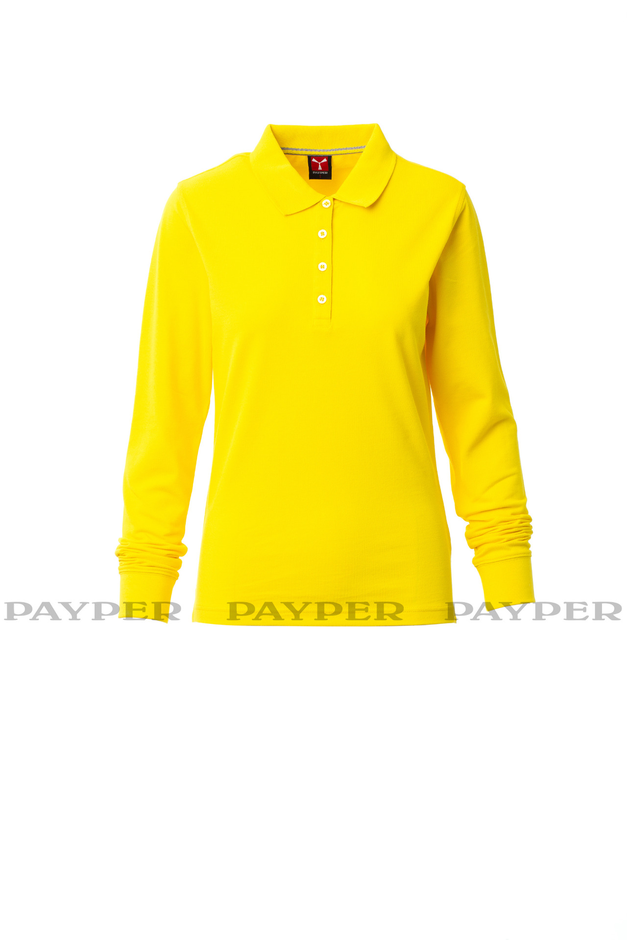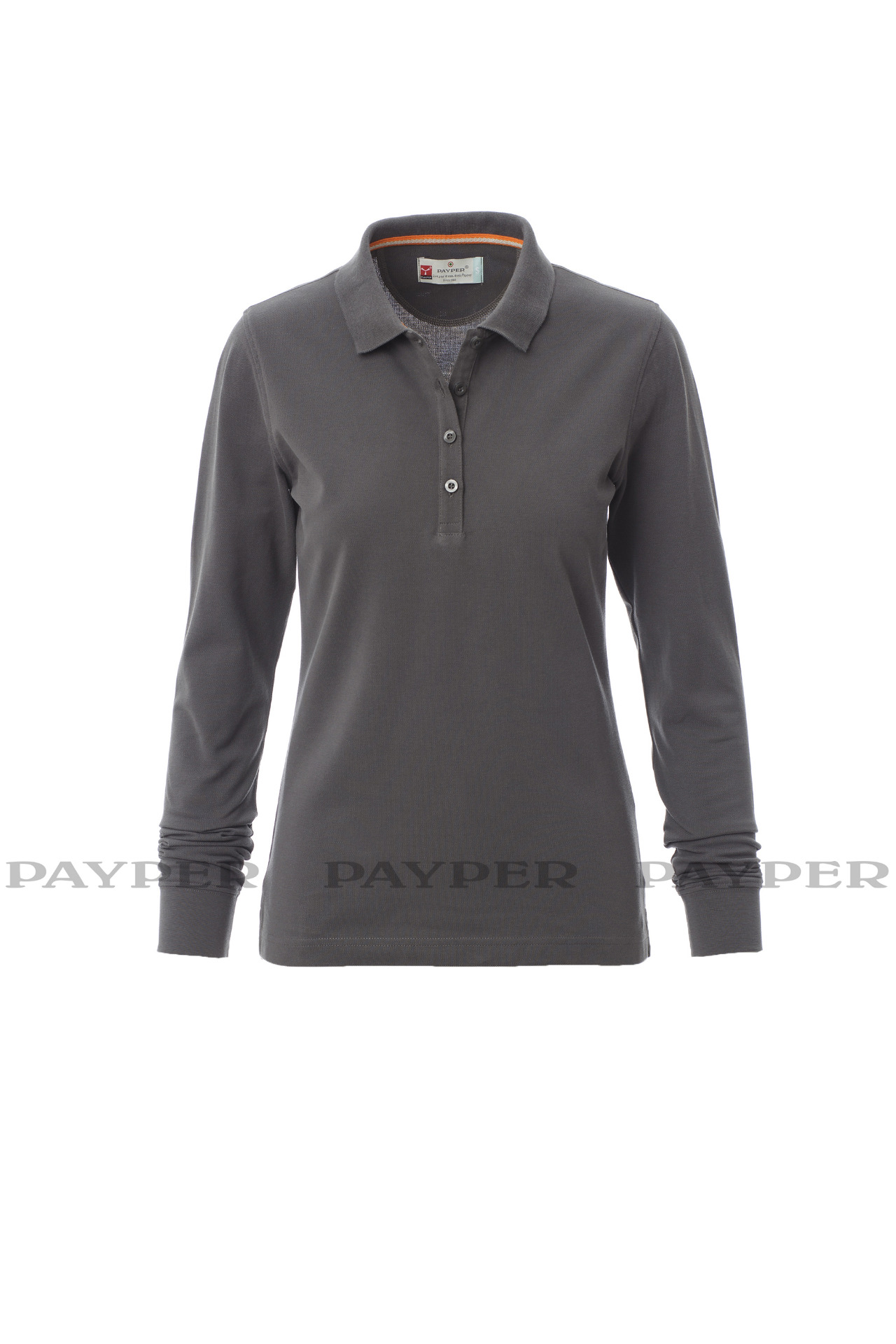 Women's long-sleeved fitted polo shirt with 4, matching, mother-of-pearl
