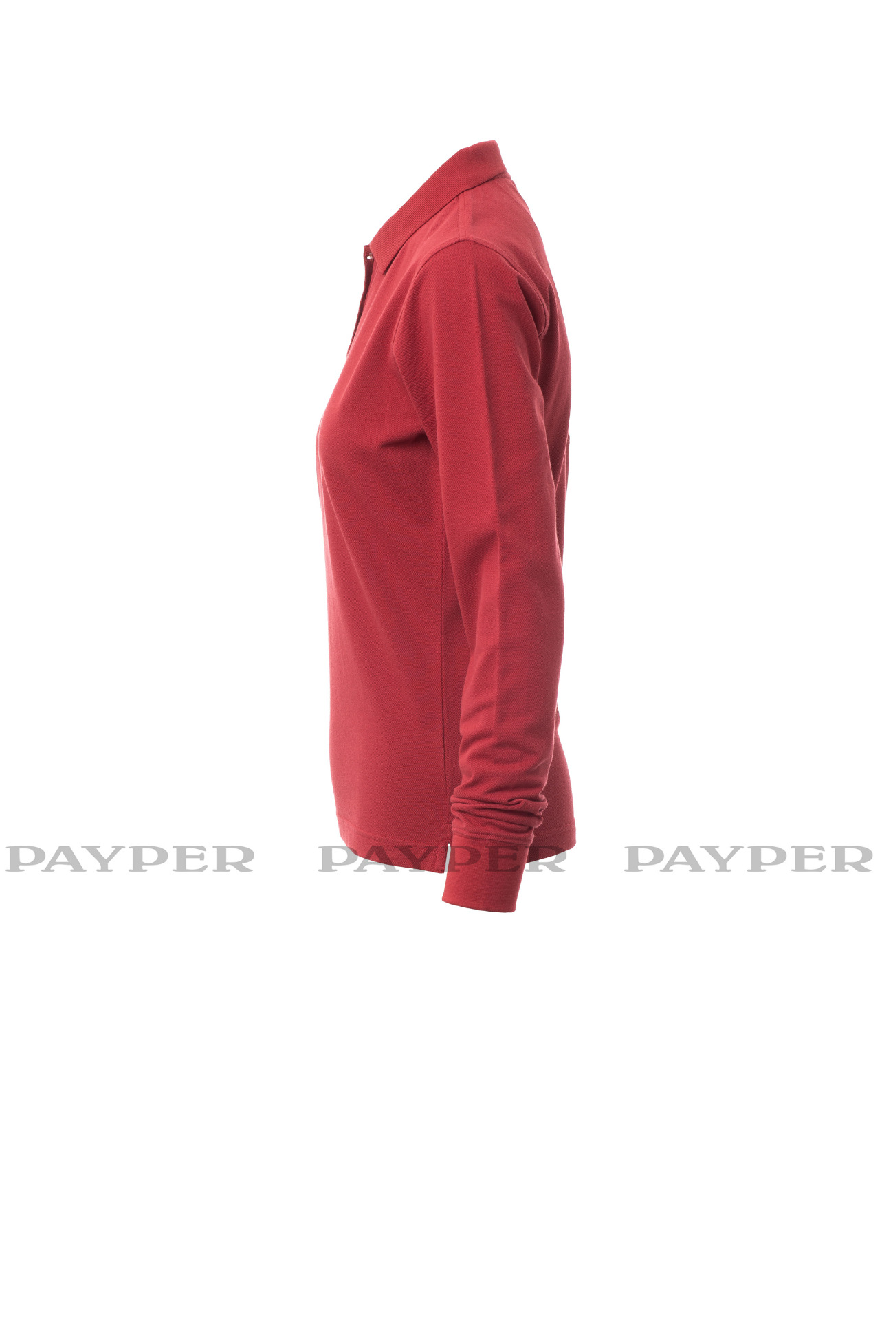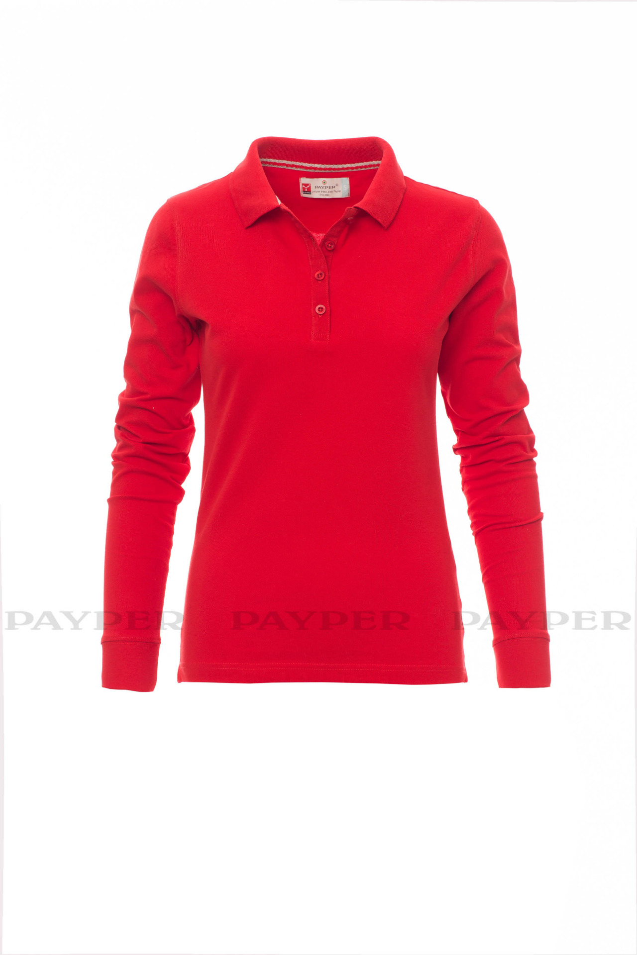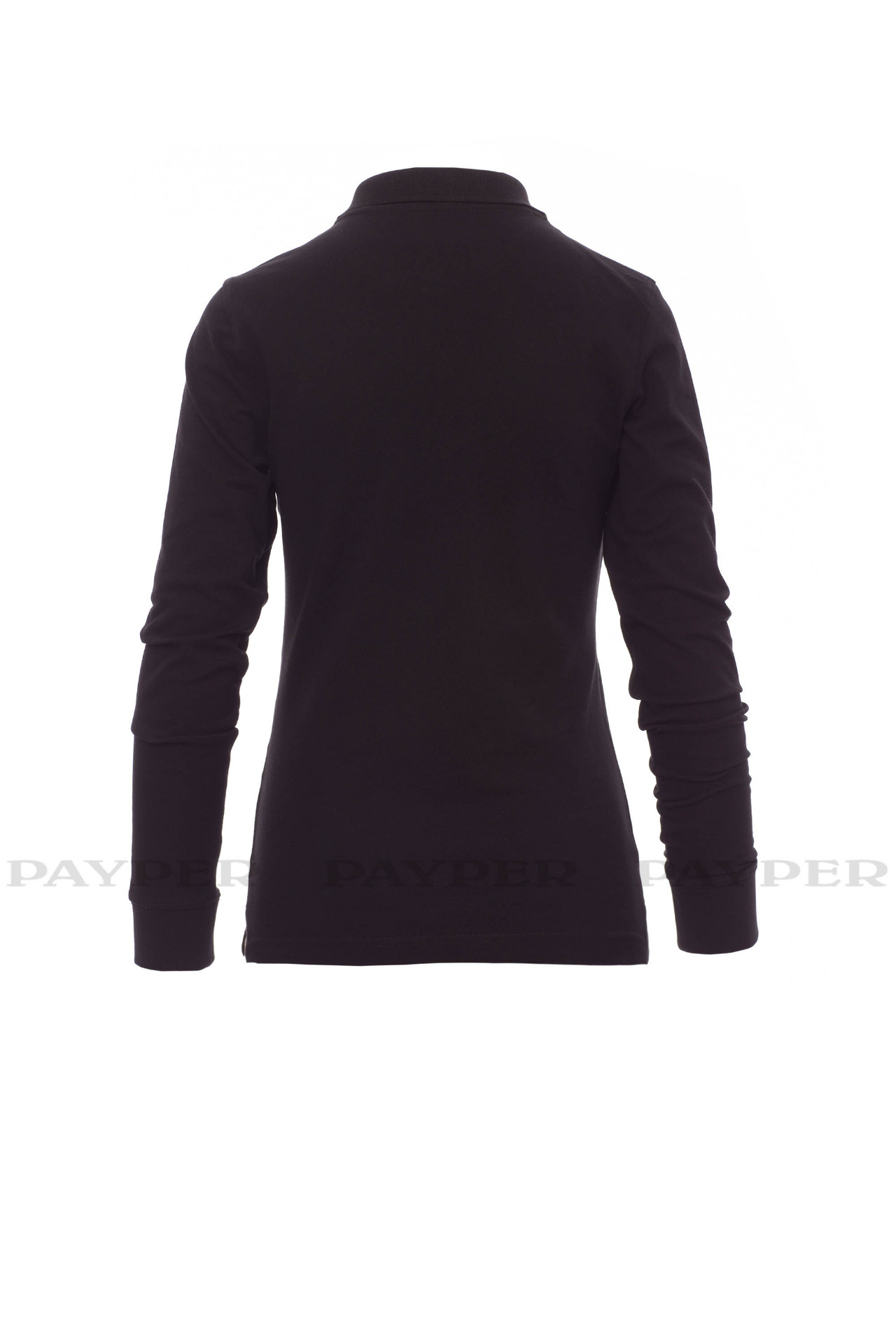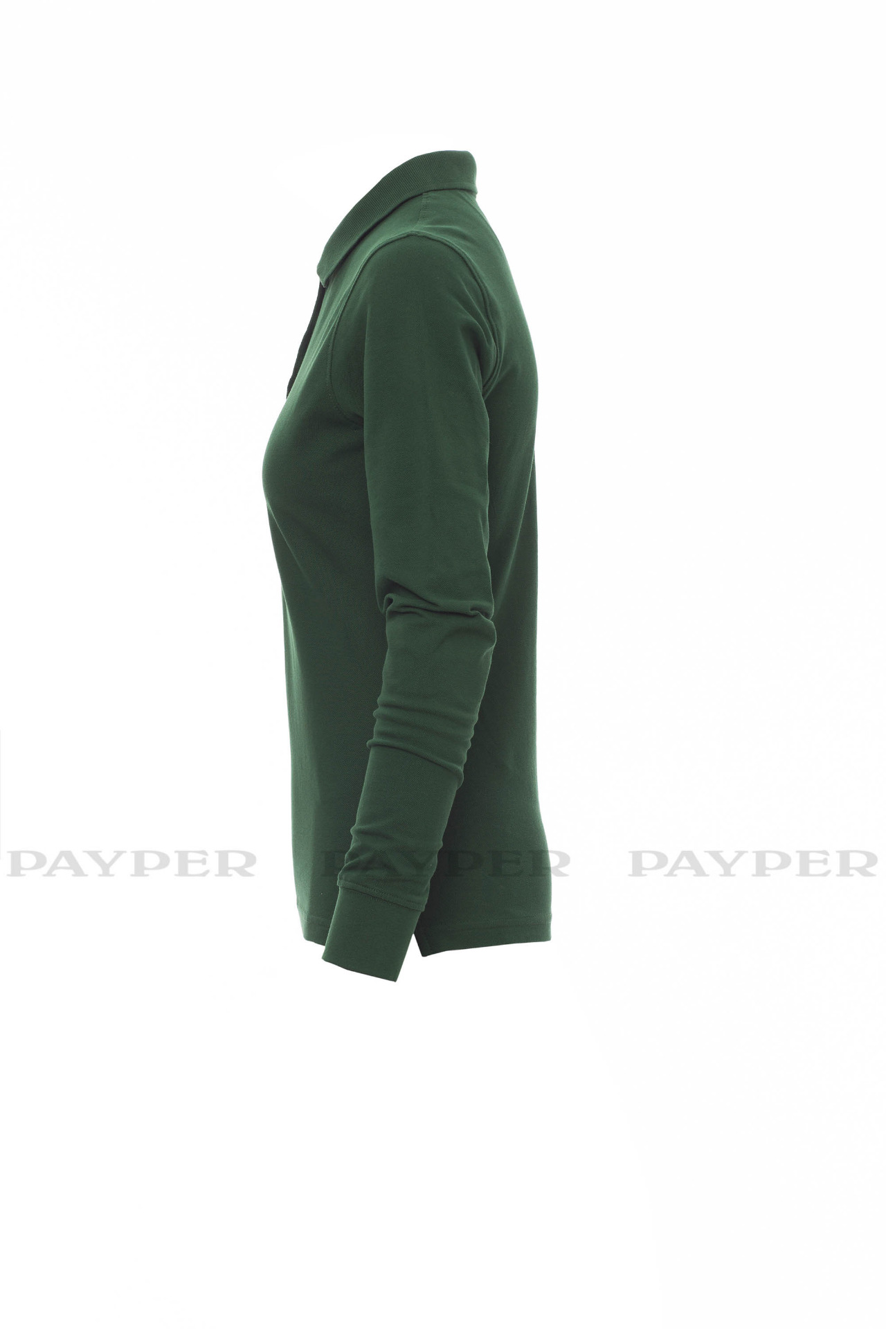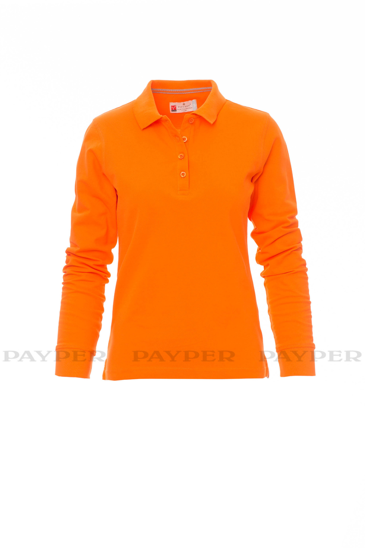 Women's long-sleeved fitted polo shirt with 4, matching, mother-of-pearl
