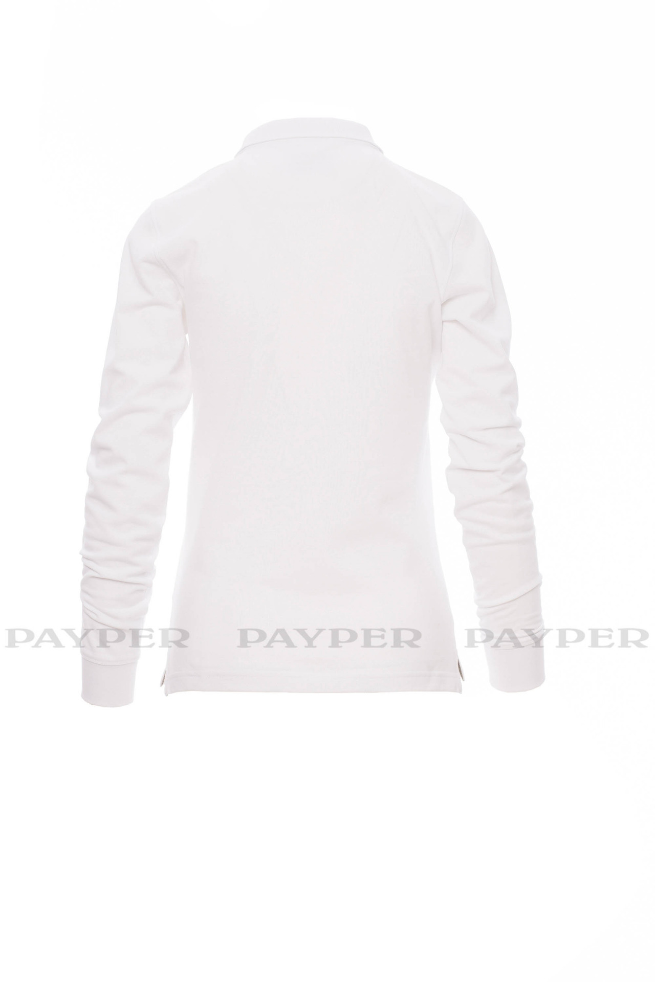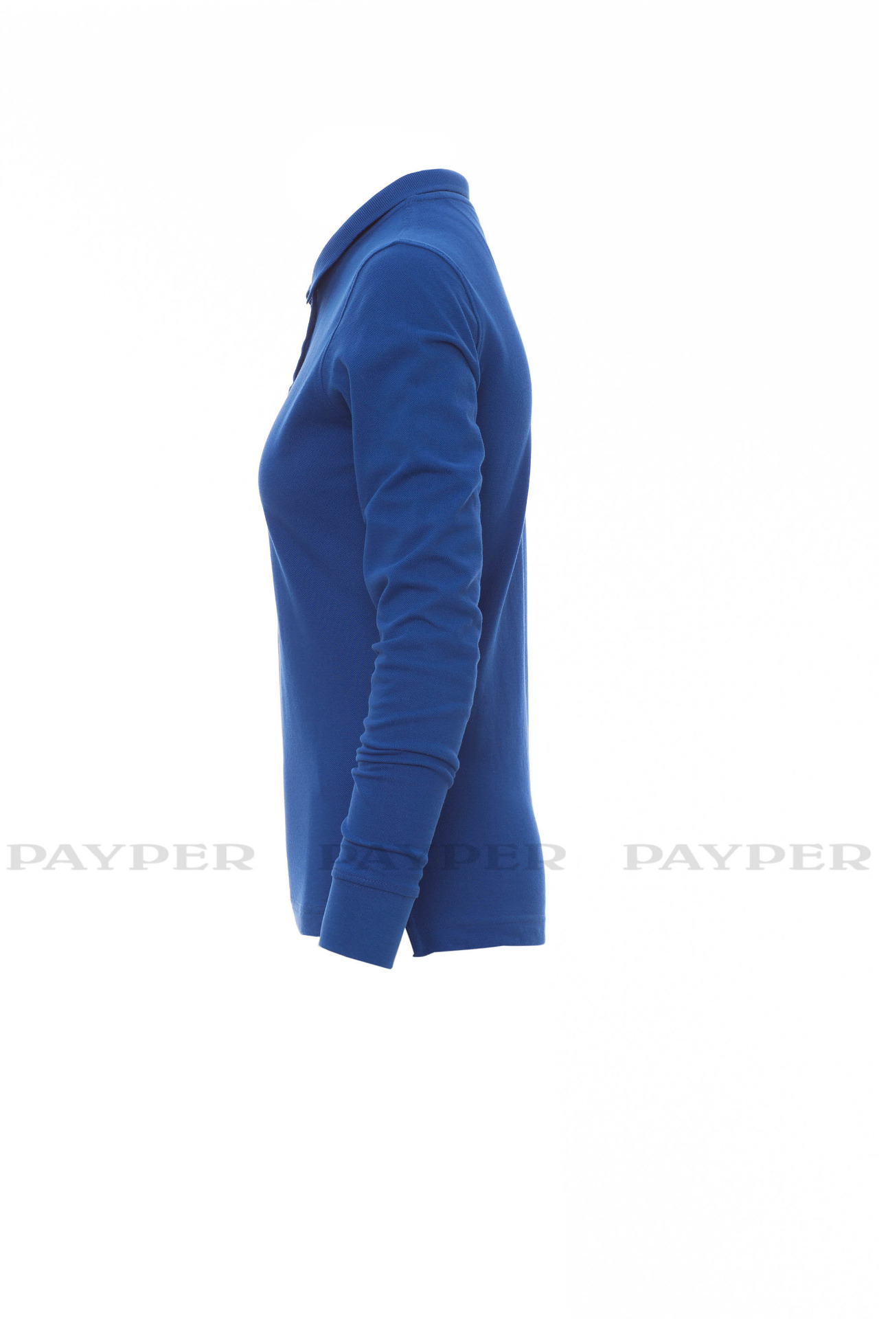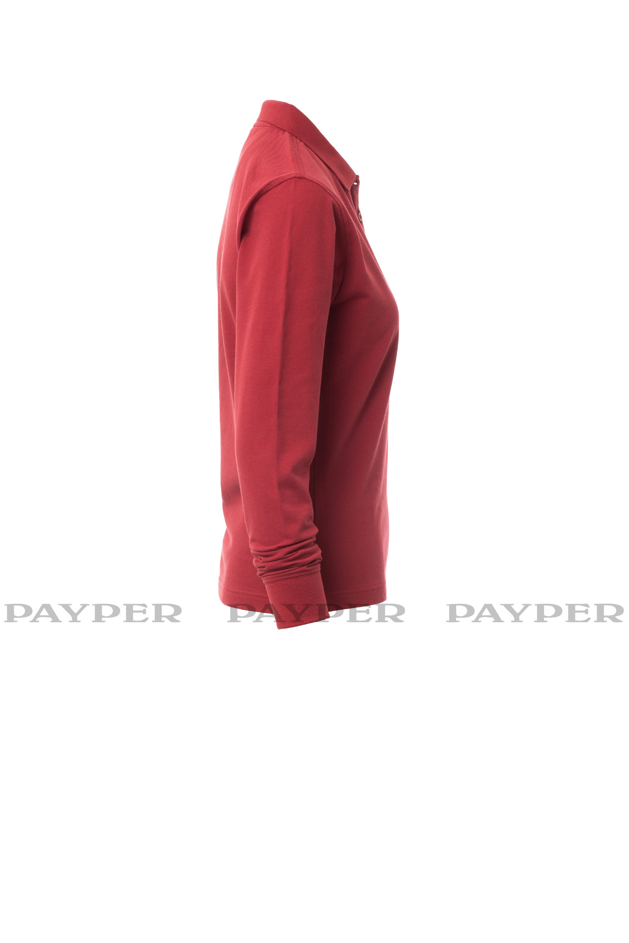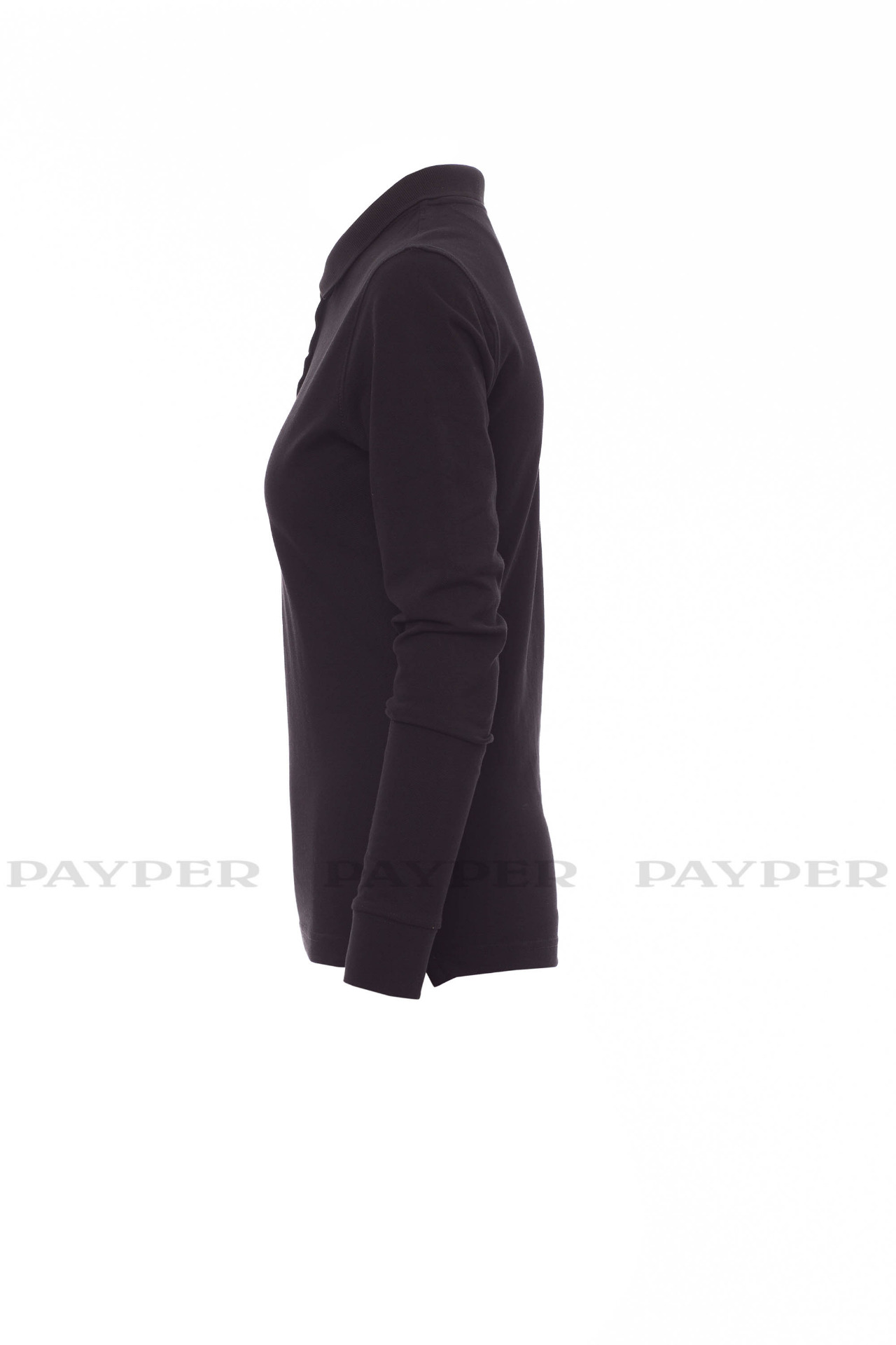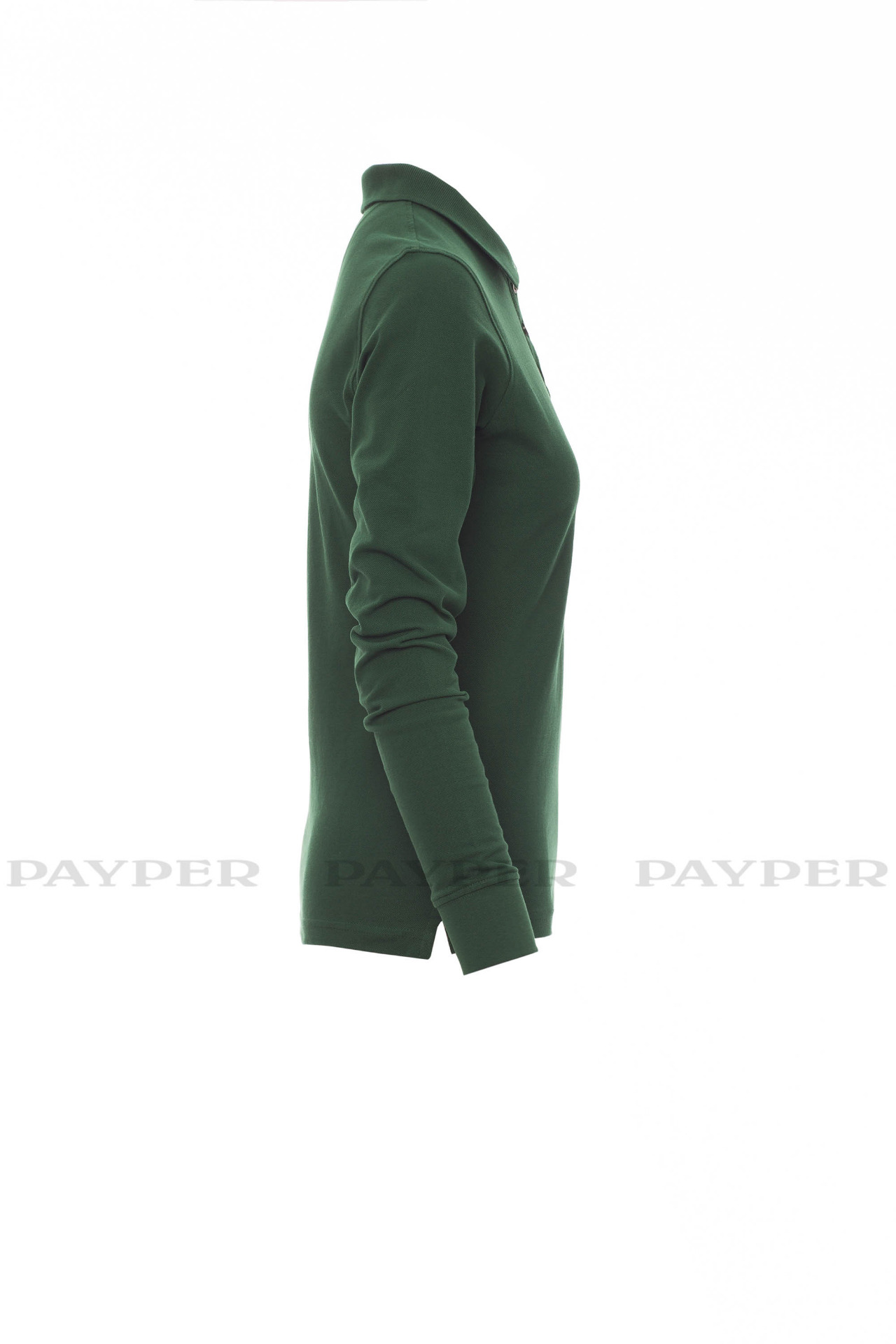 Women's long-sleeved fitted polo shirt with 4, matching, mother-of-pearl