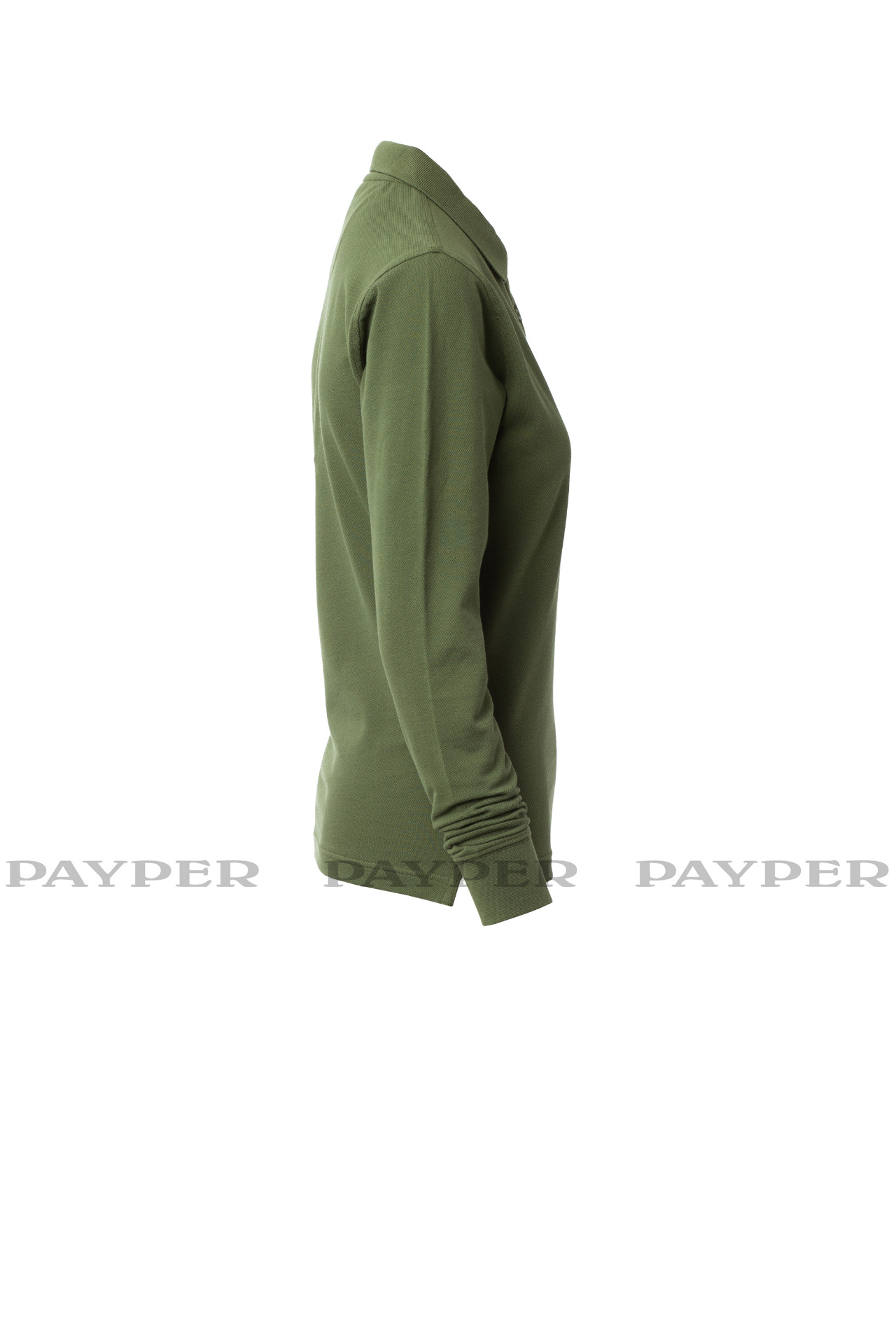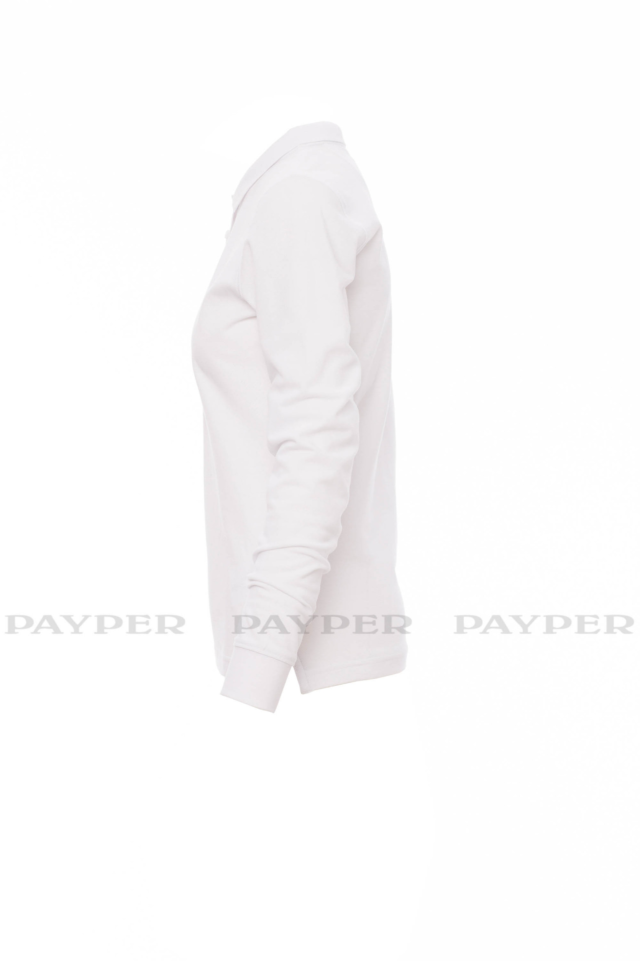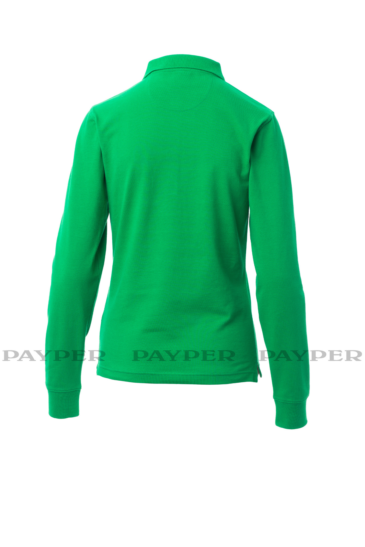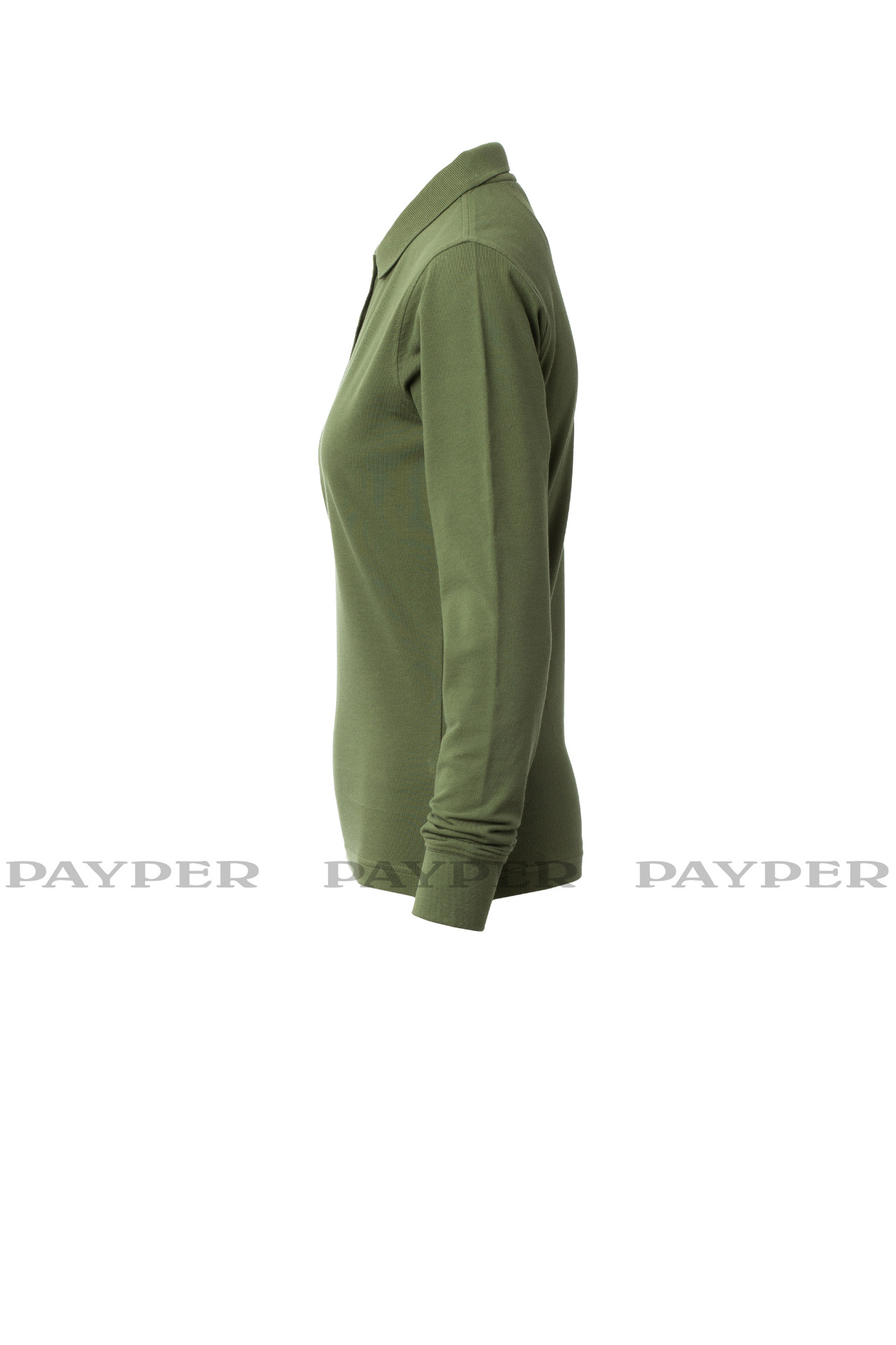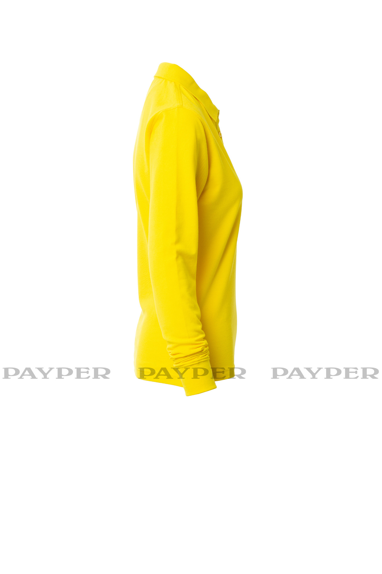 Women's long-sleeved fitted polo shirt with 4, matching, mother-of-pearl