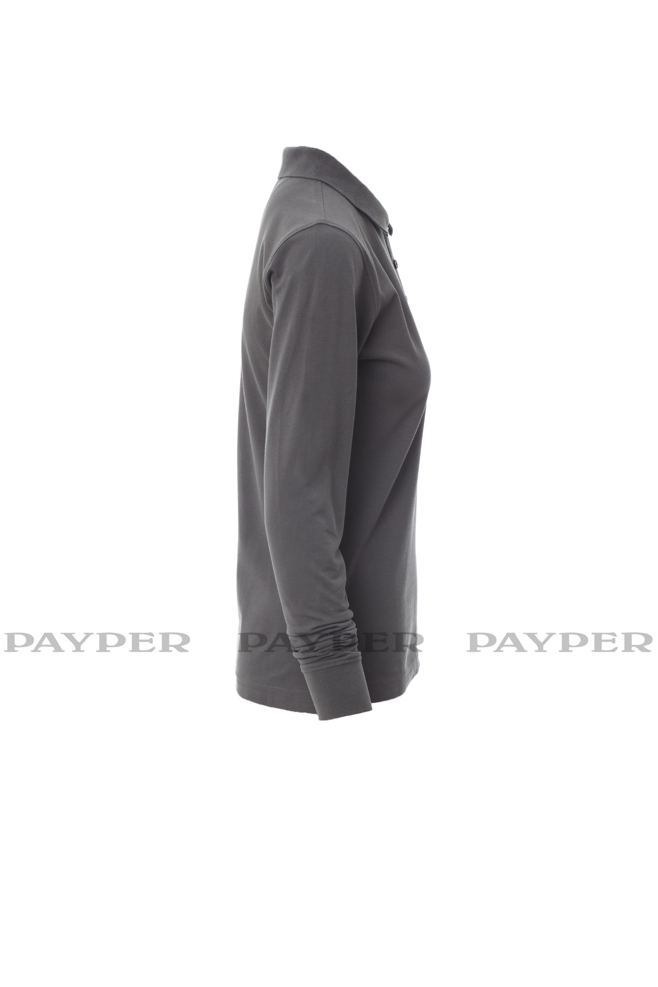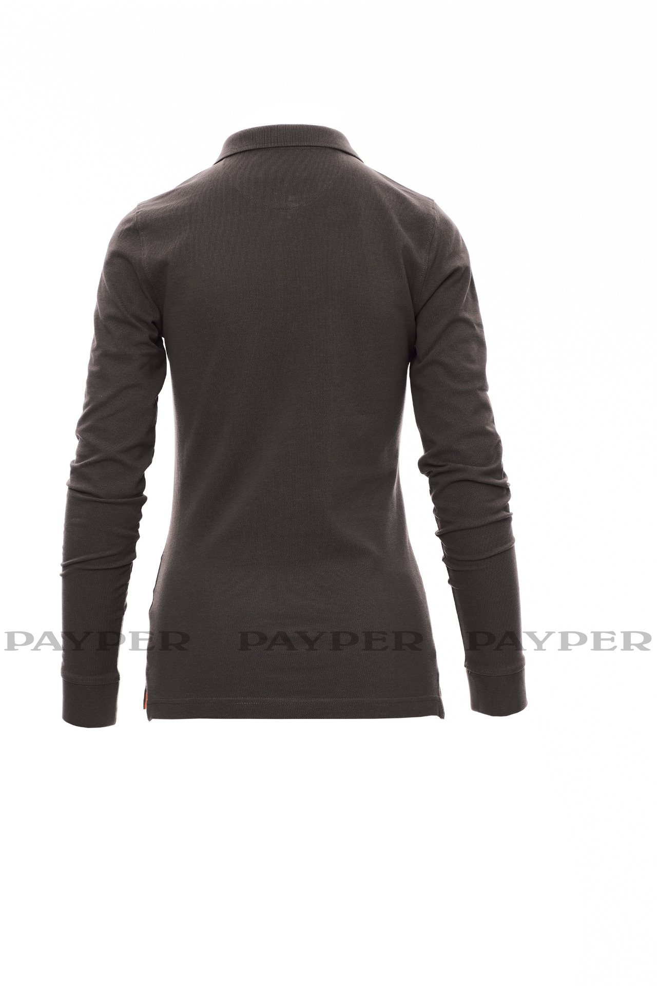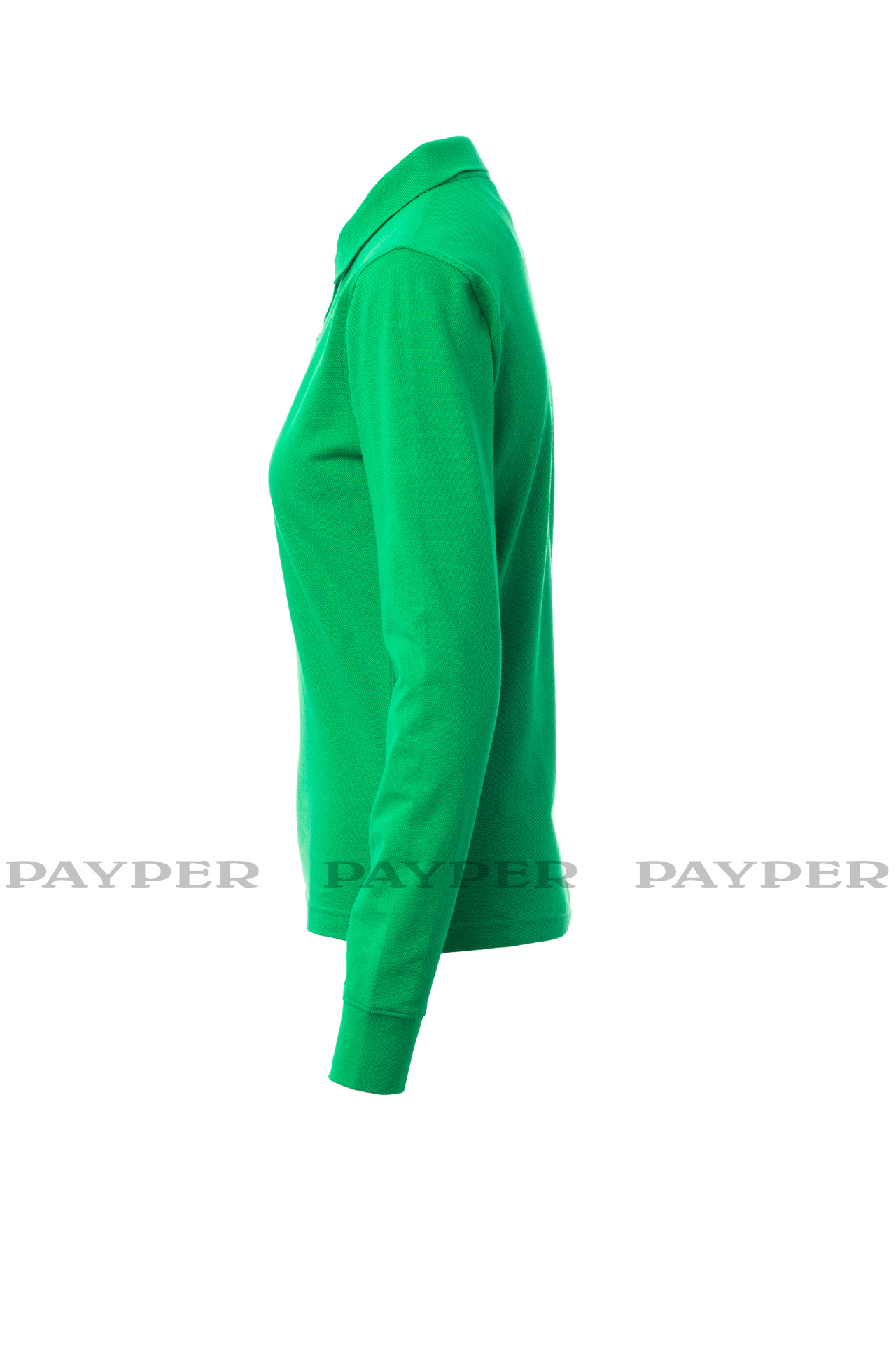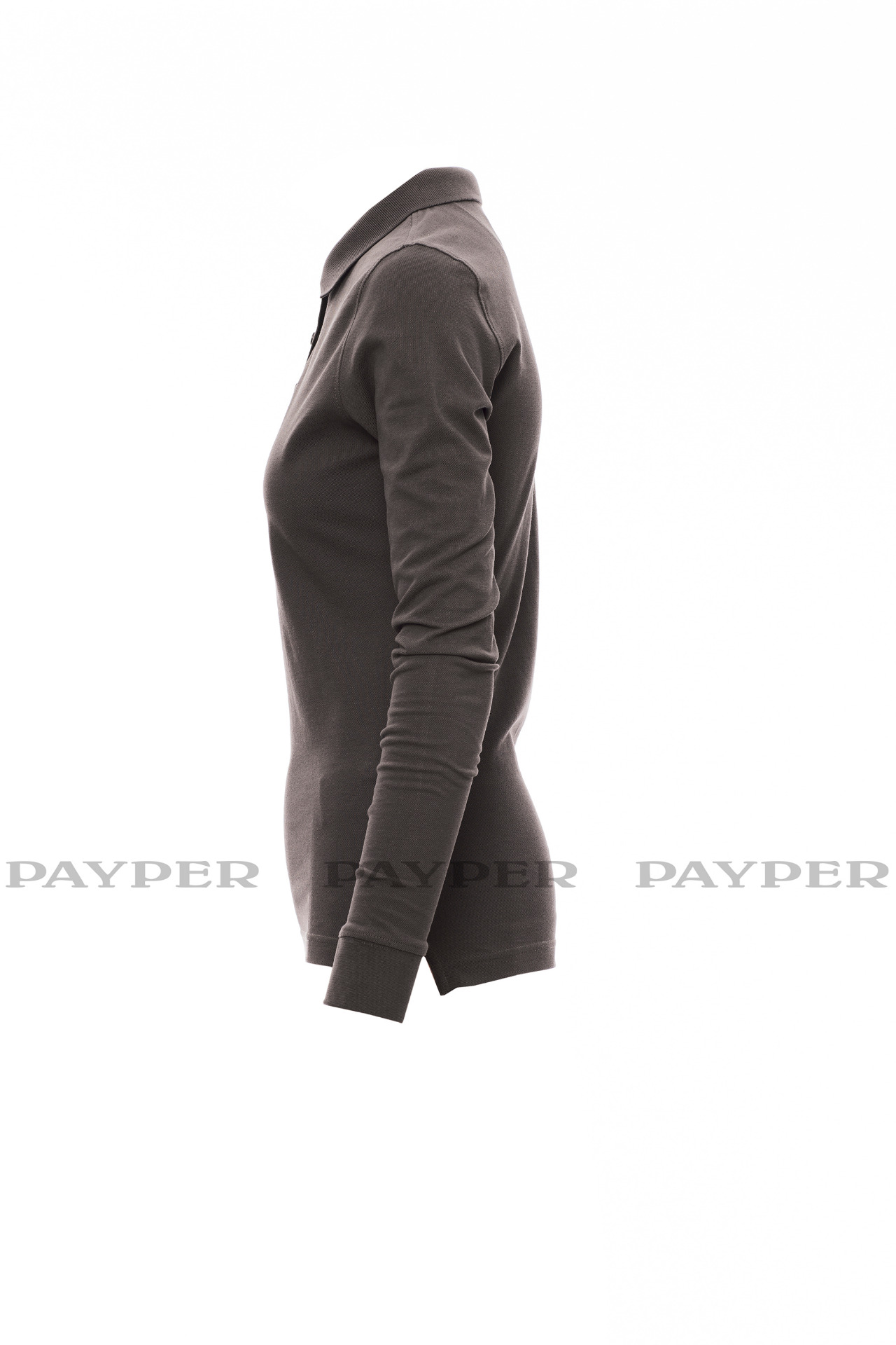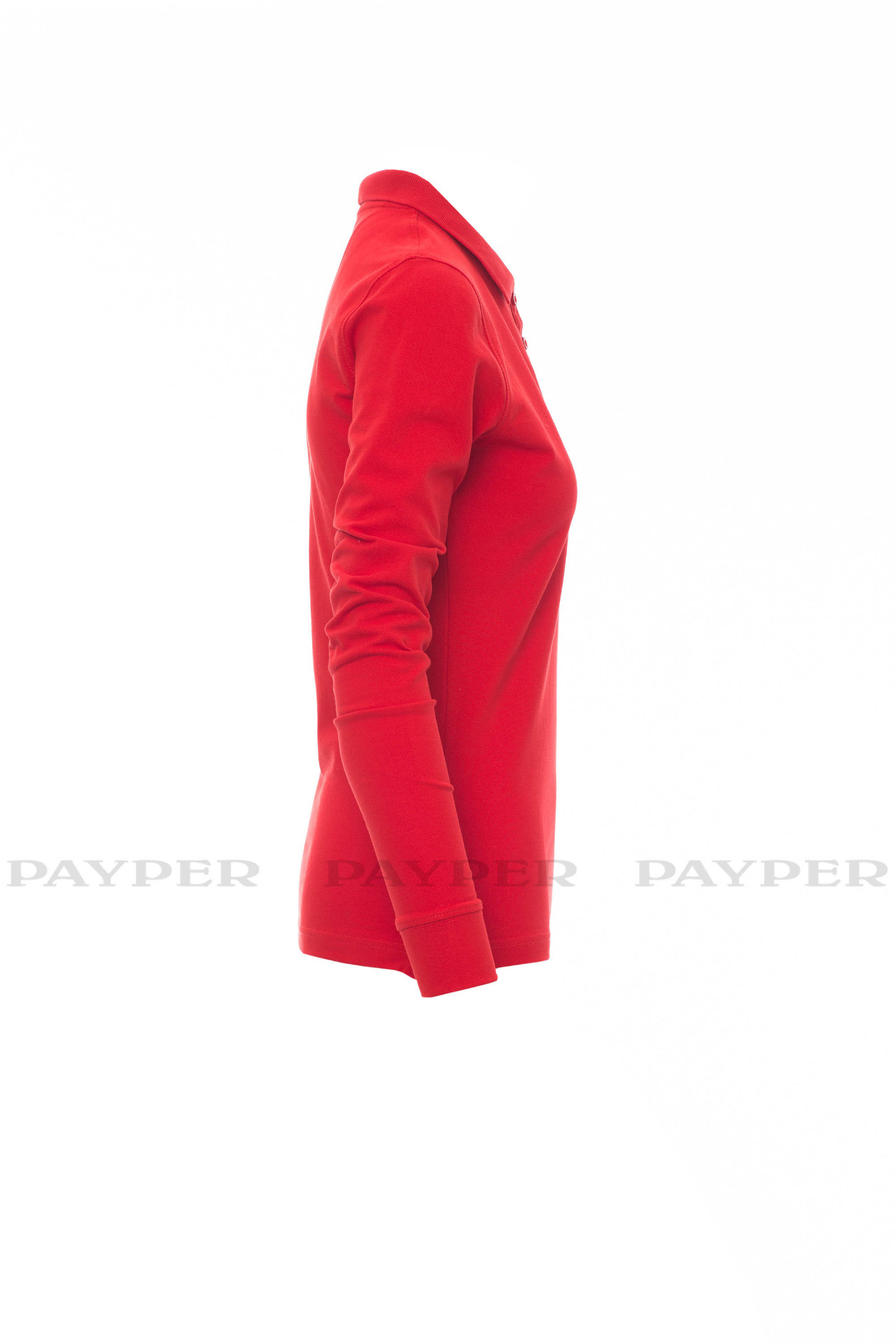 Women's long-sleeved fitted polo shirt with 4, matching, mother-of-pearl