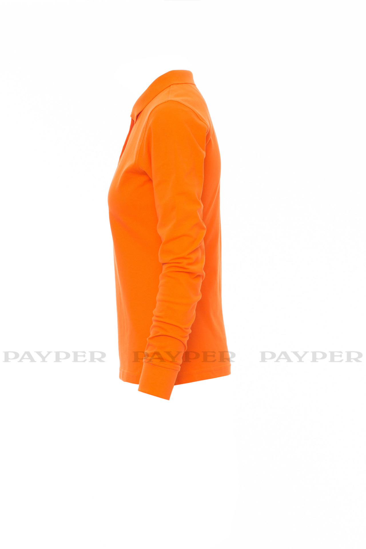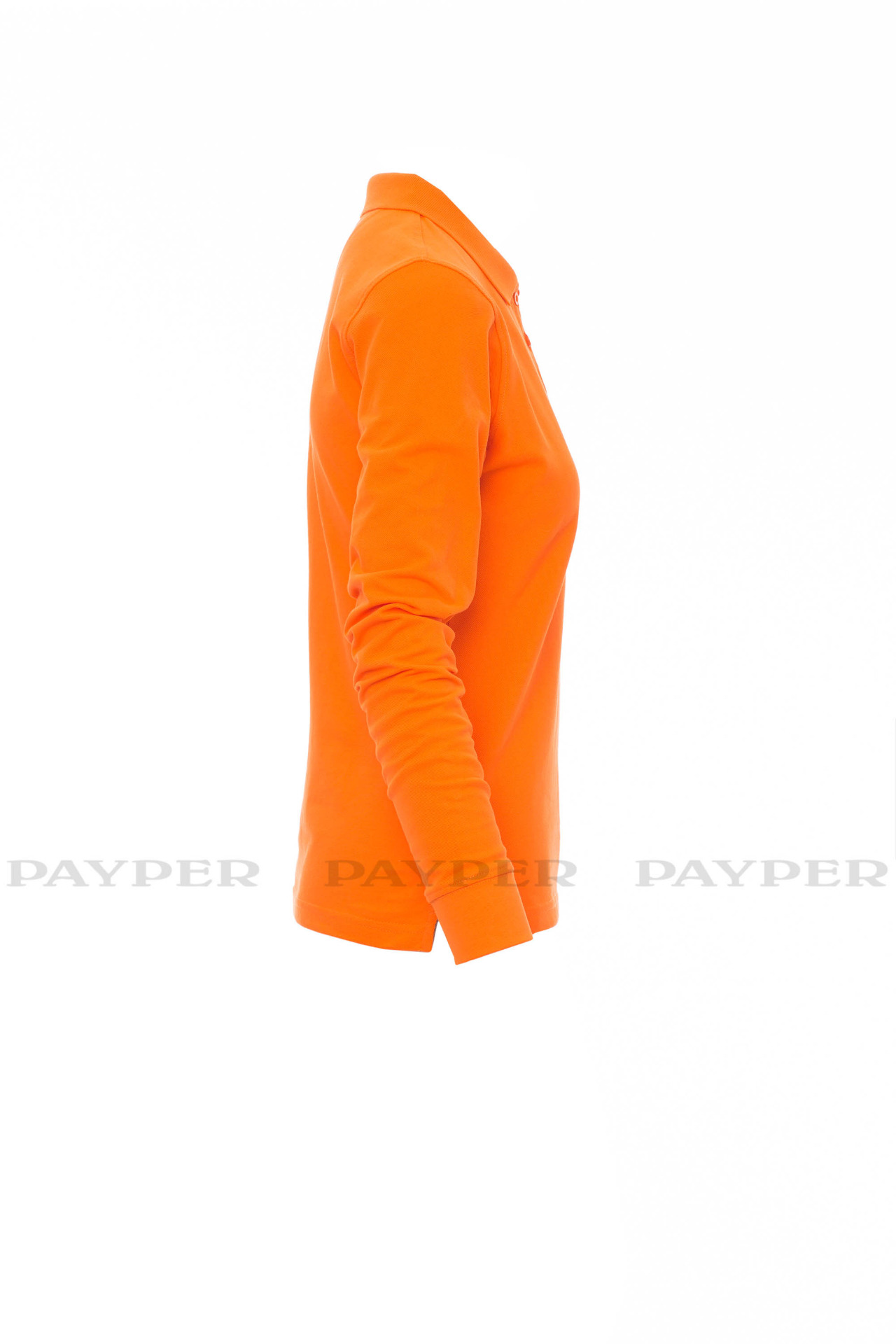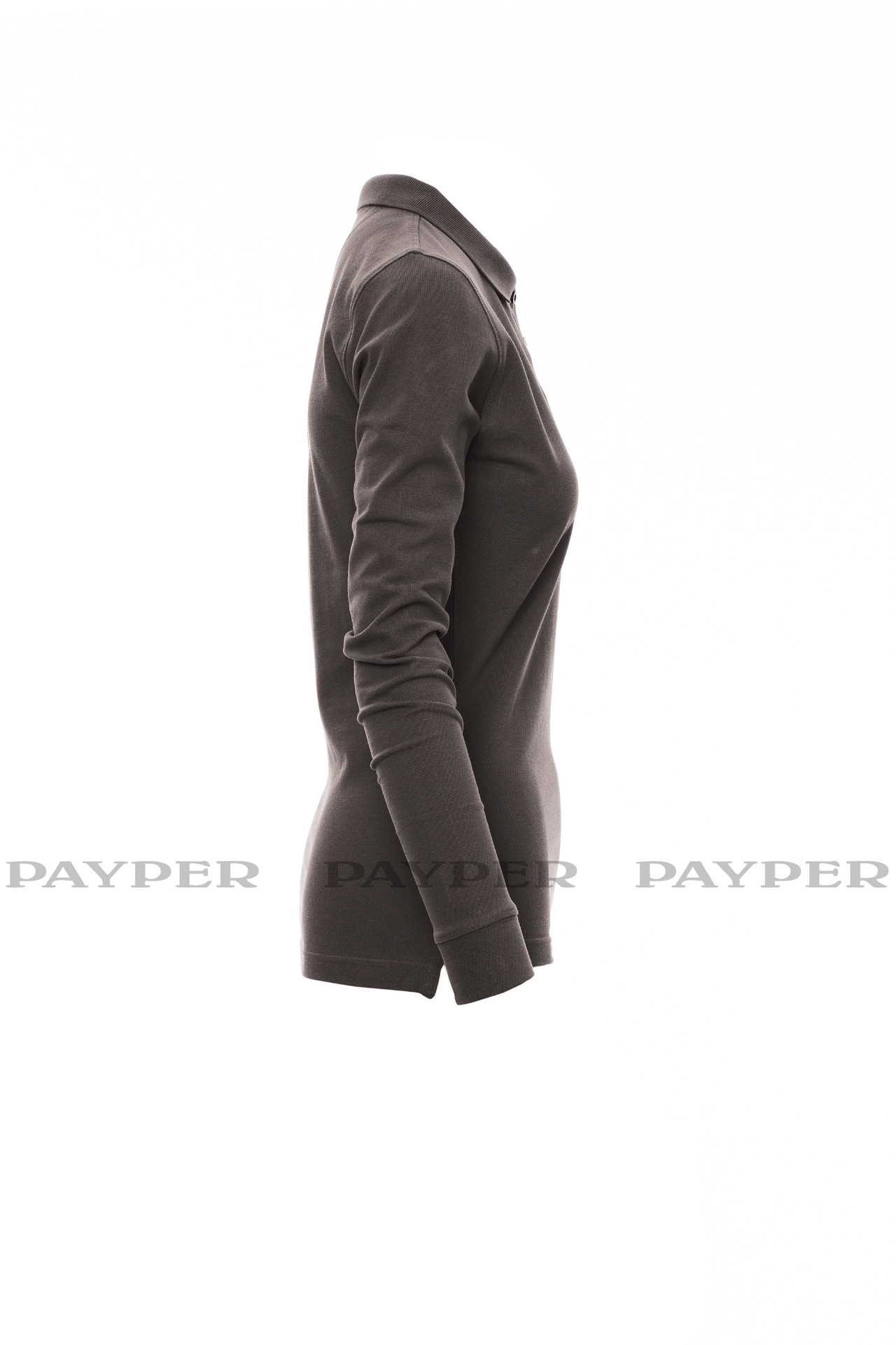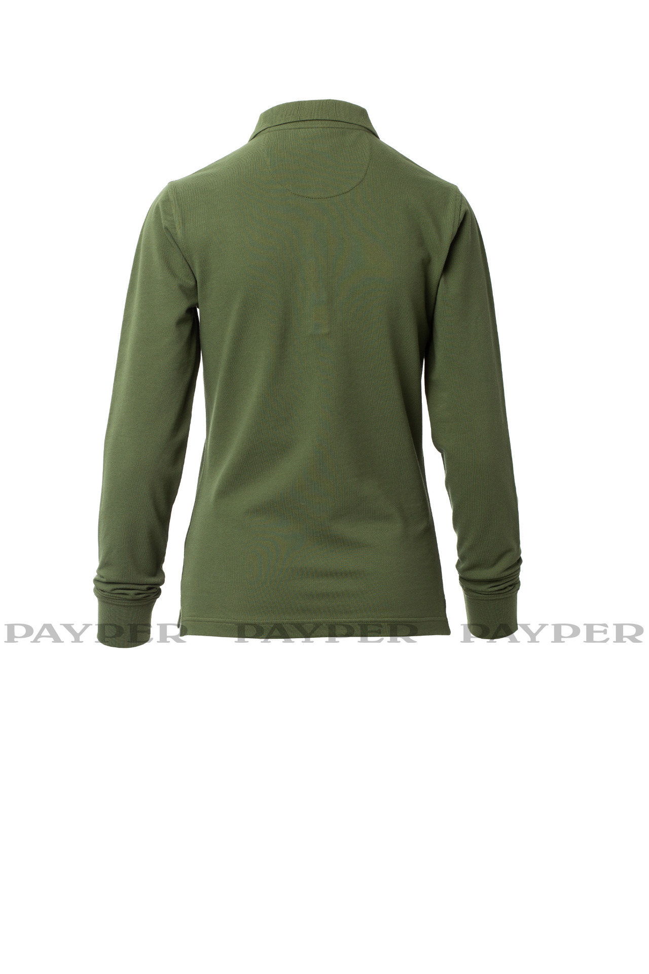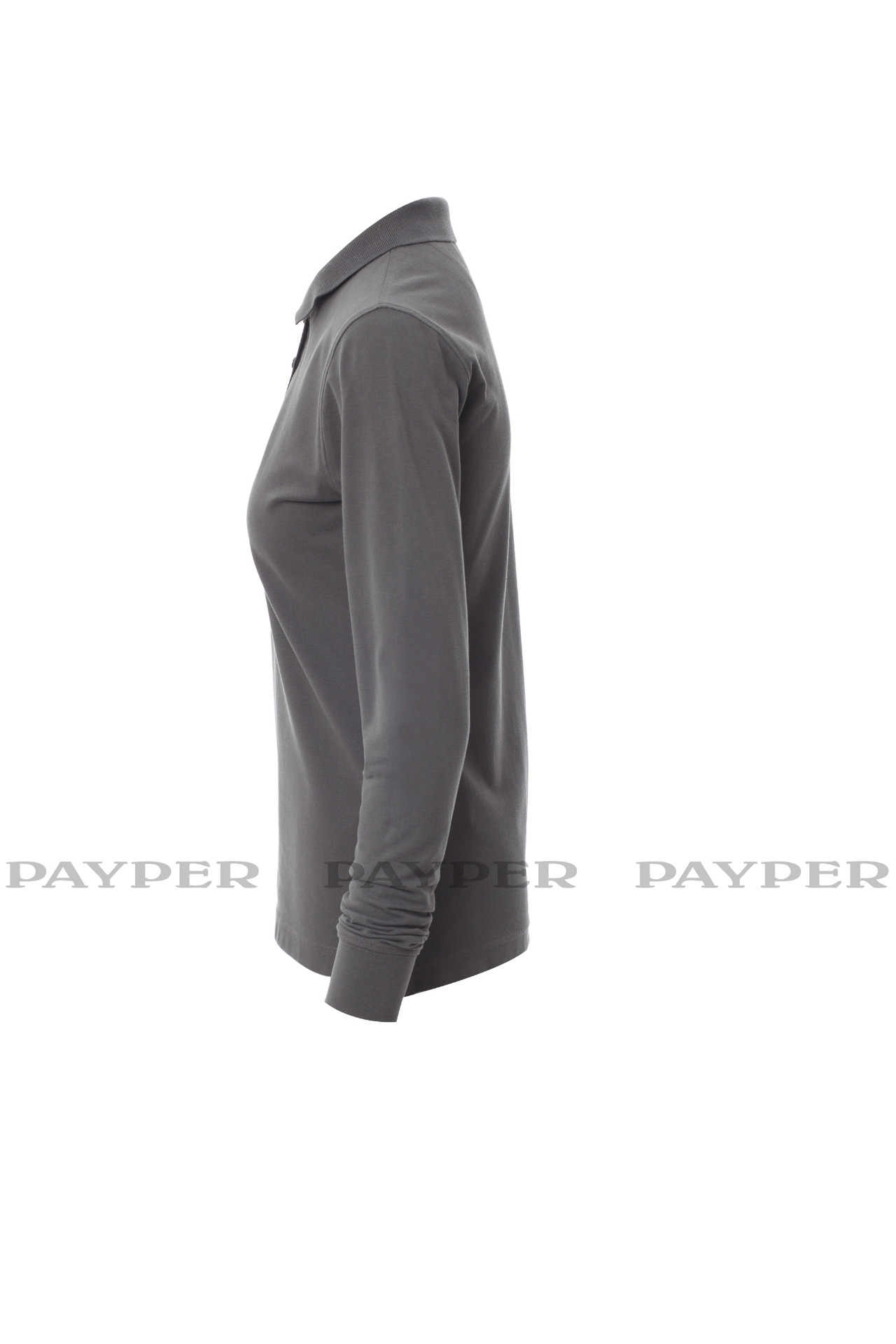 Women's long-sleeved fitted polo shirt with 4, matching, mother-of-pearl