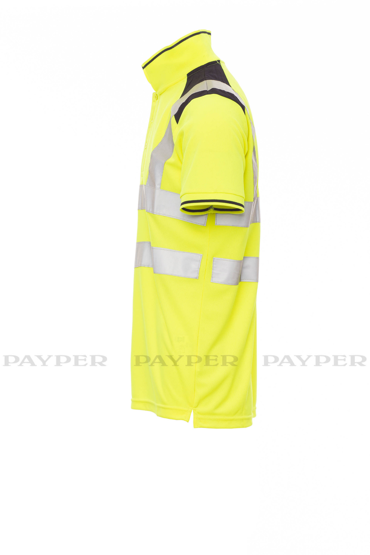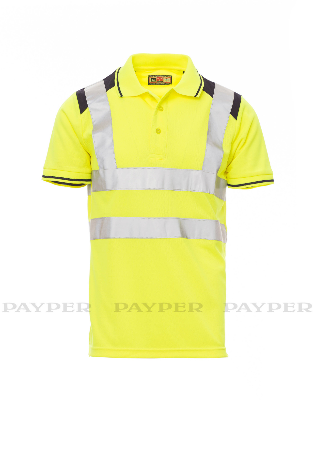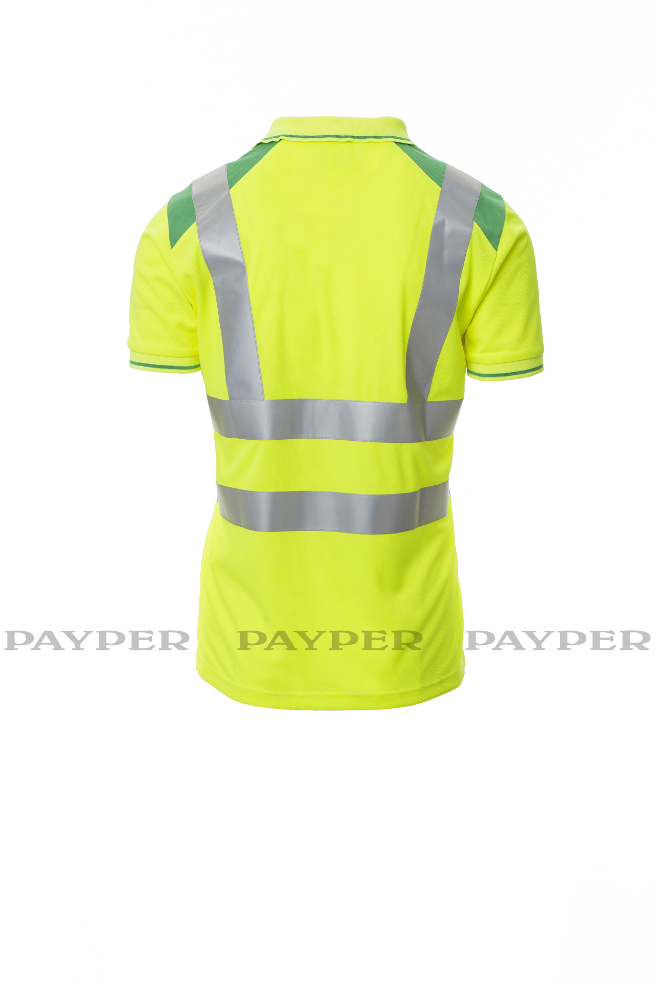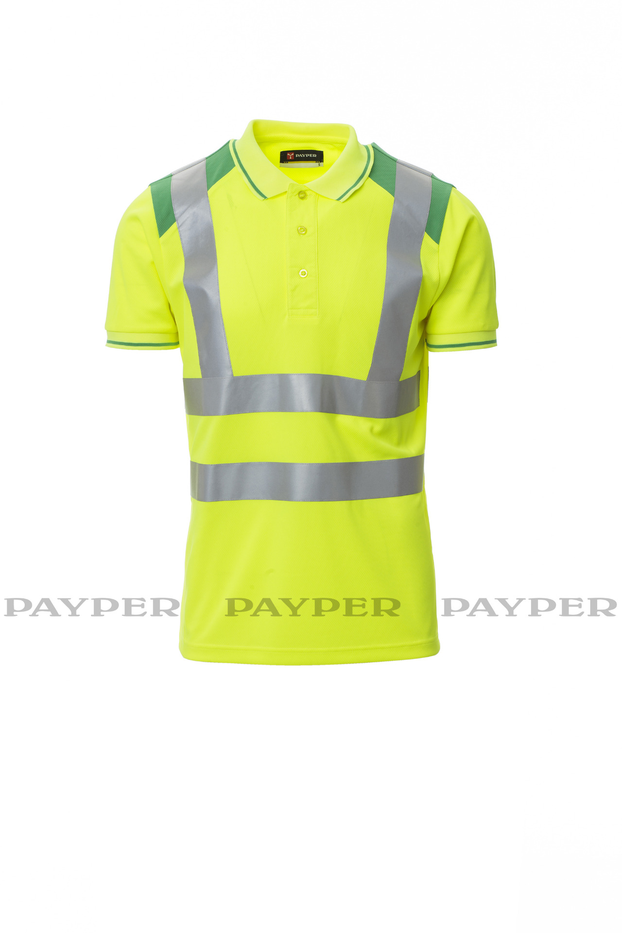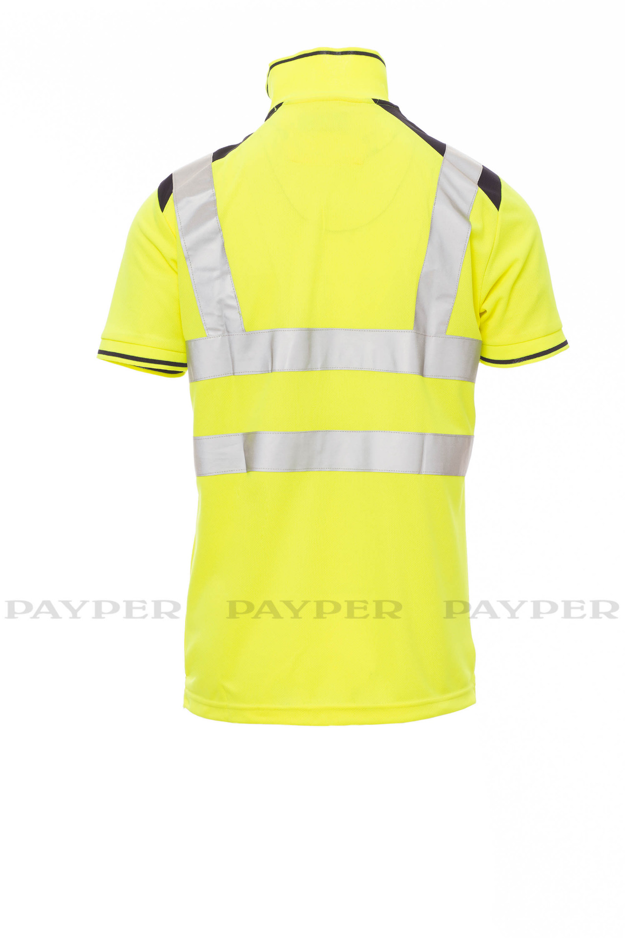 Men's short-sleeved two-tone, high-visibility polo shirt with reflective