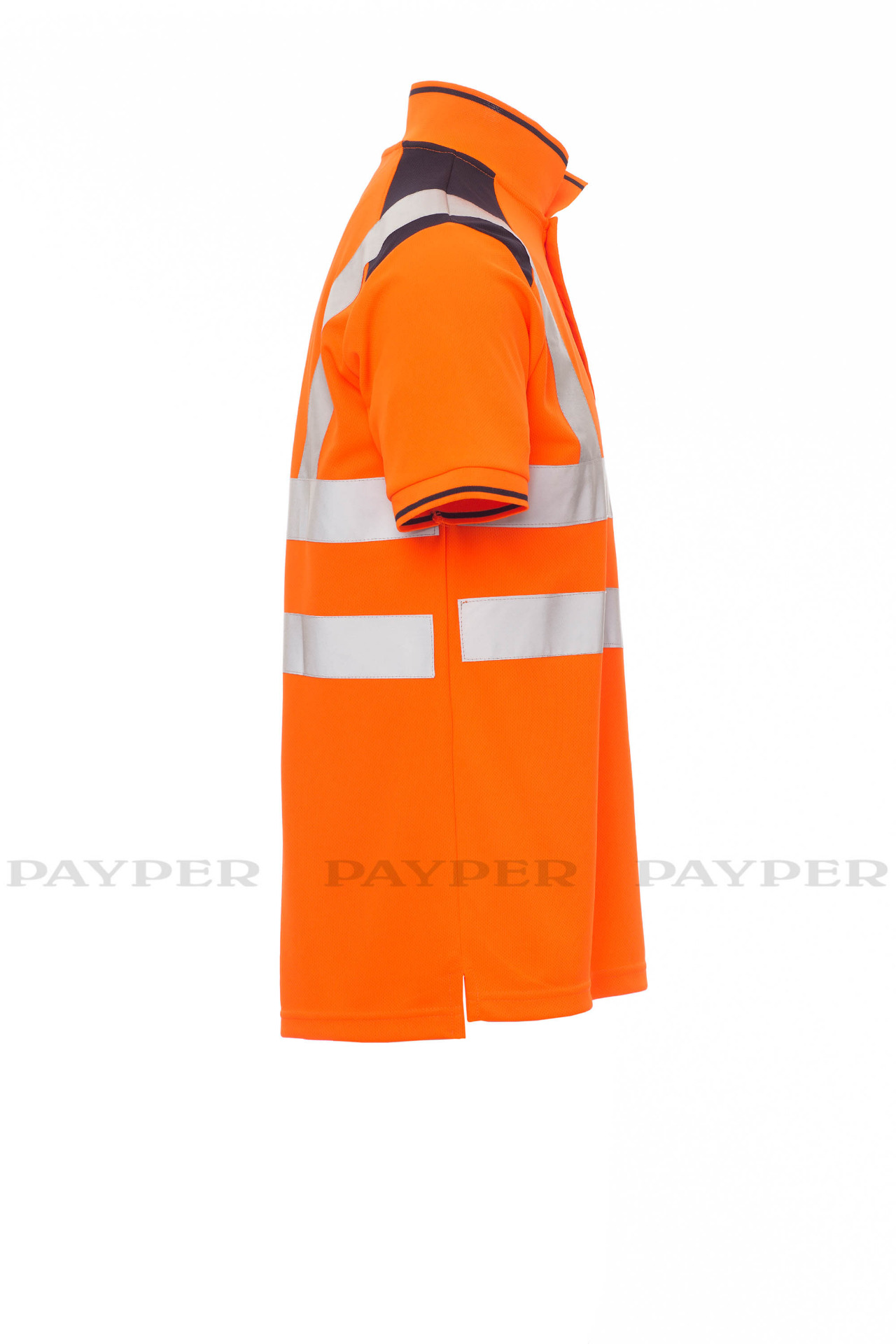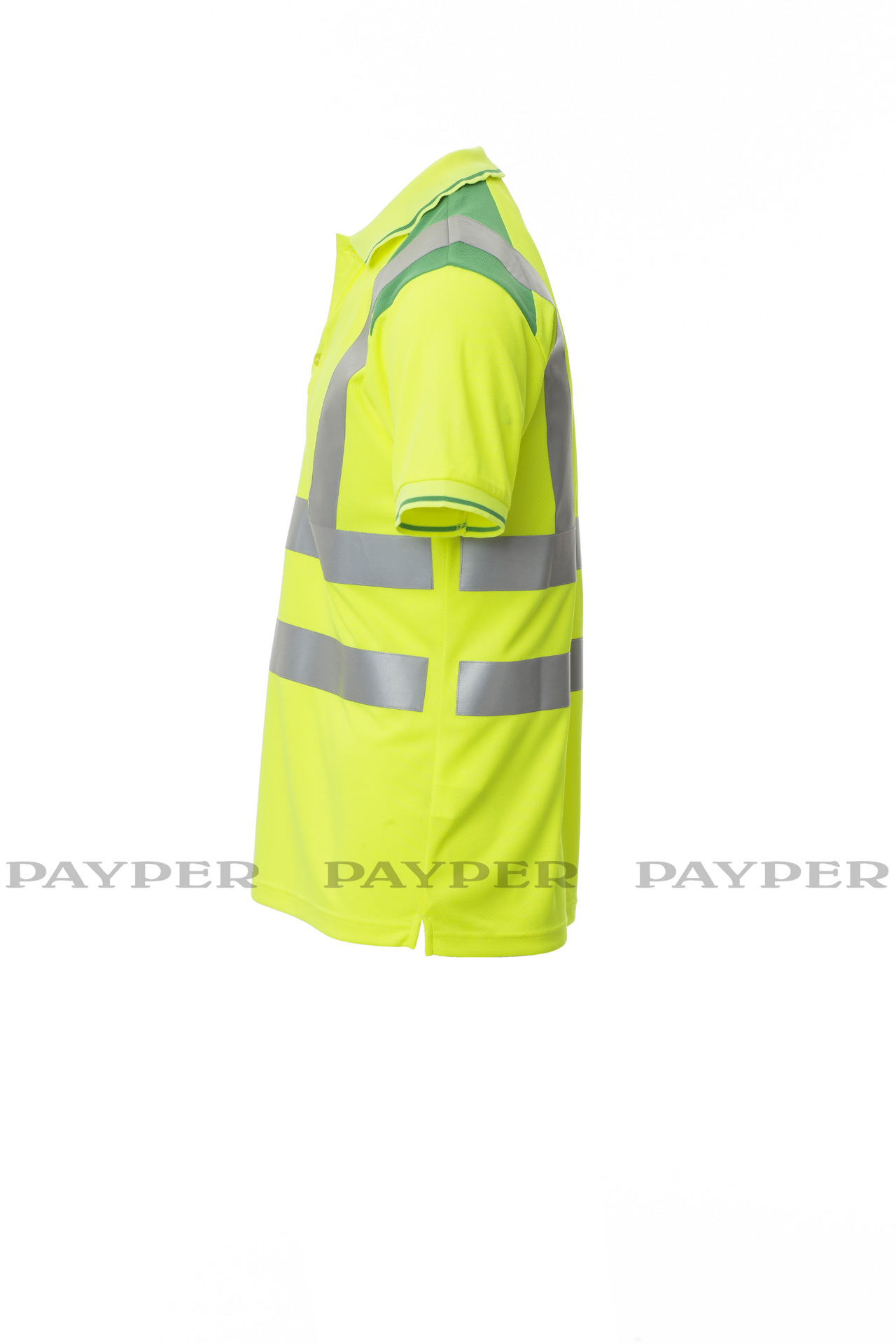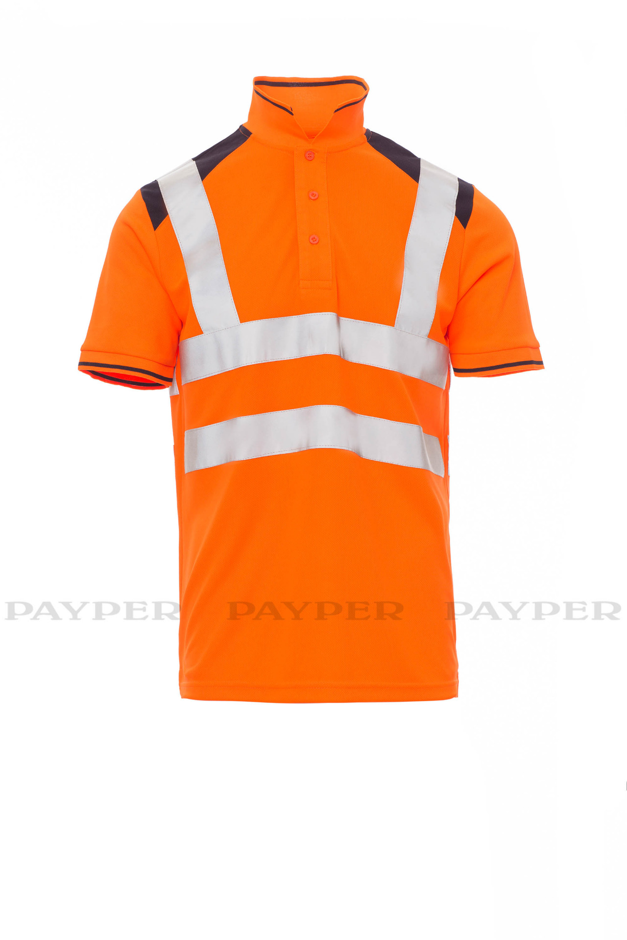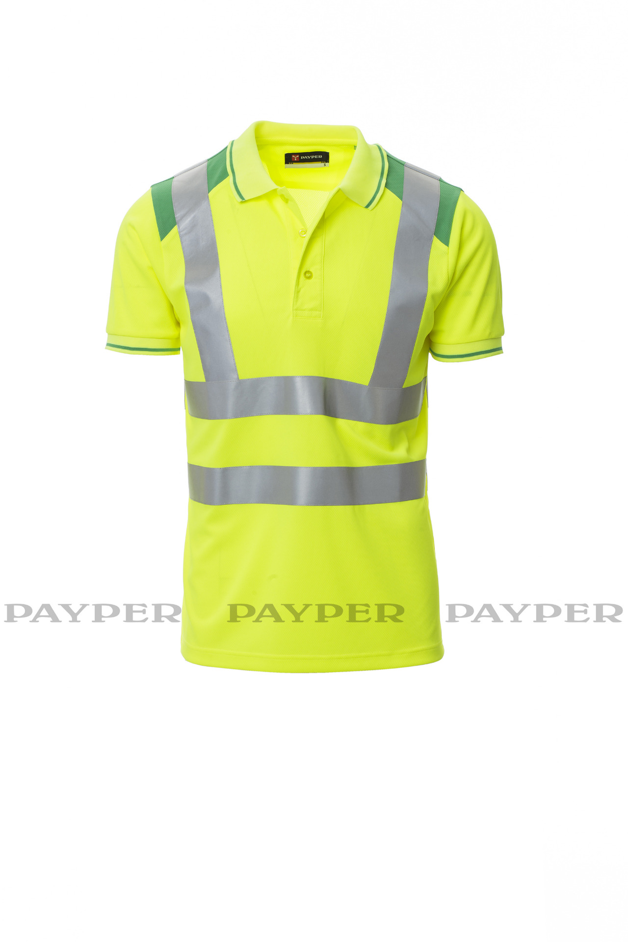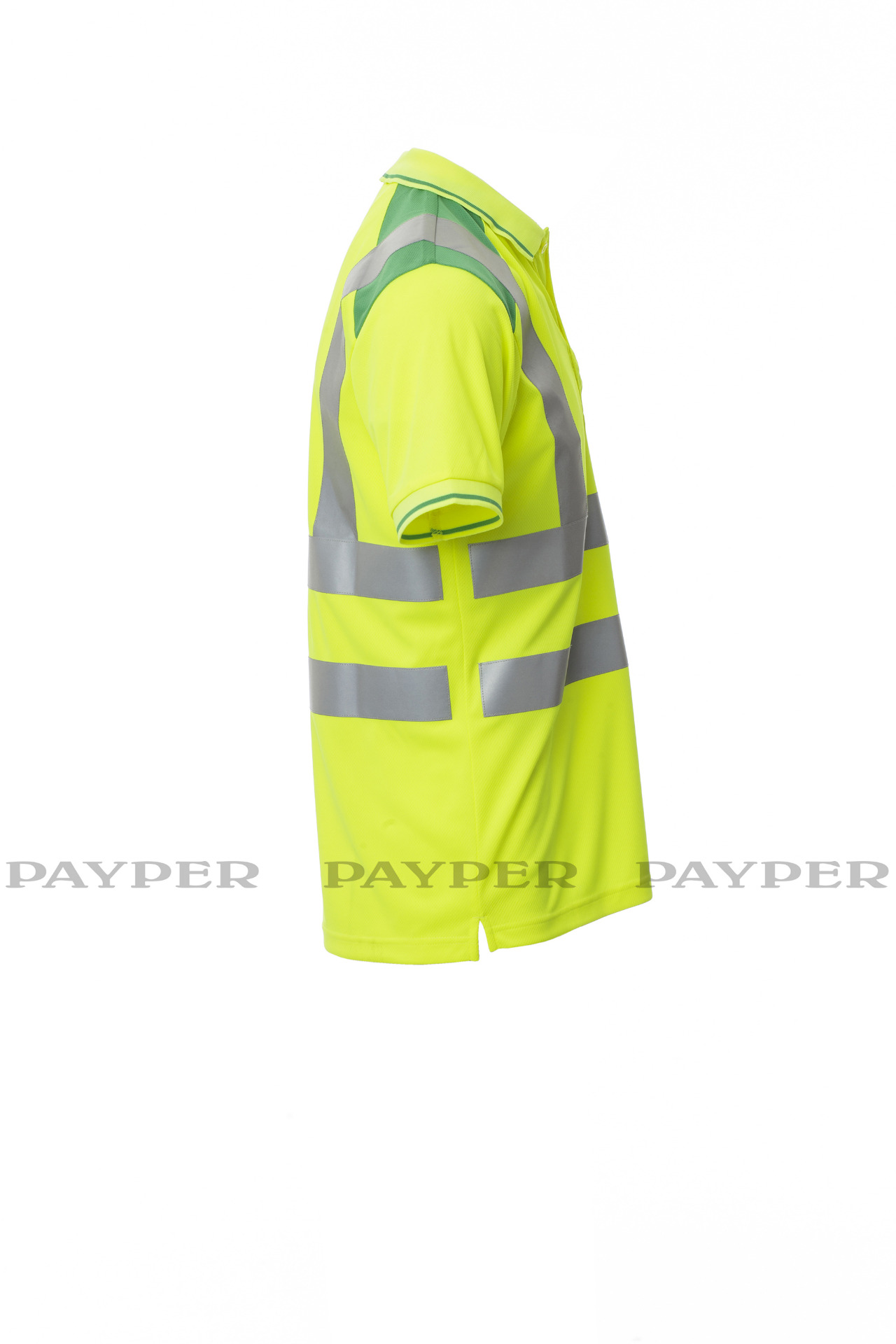 Men's short-sleeved two-tone, high-visibility polo shirt with reflective