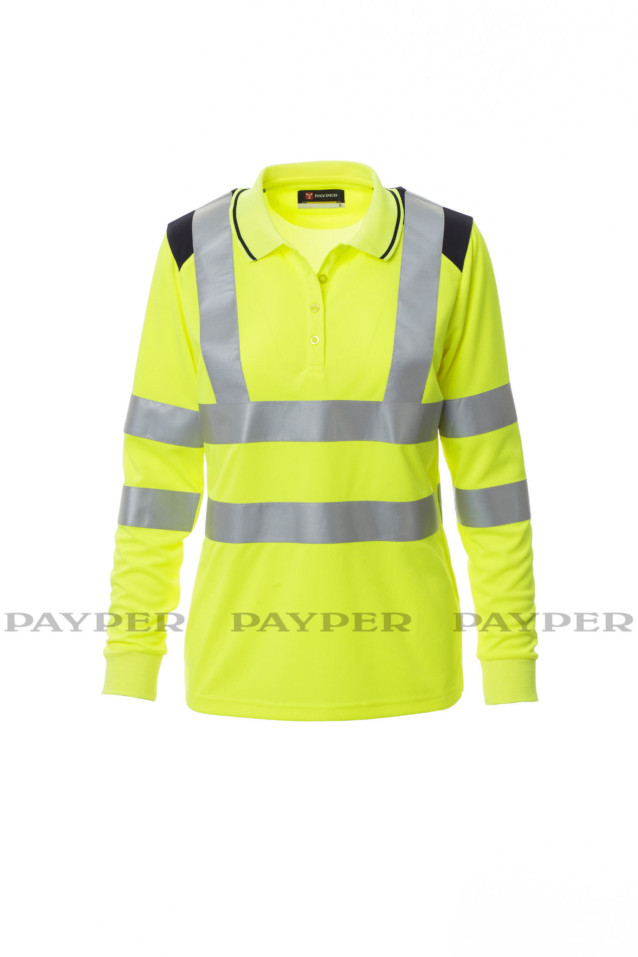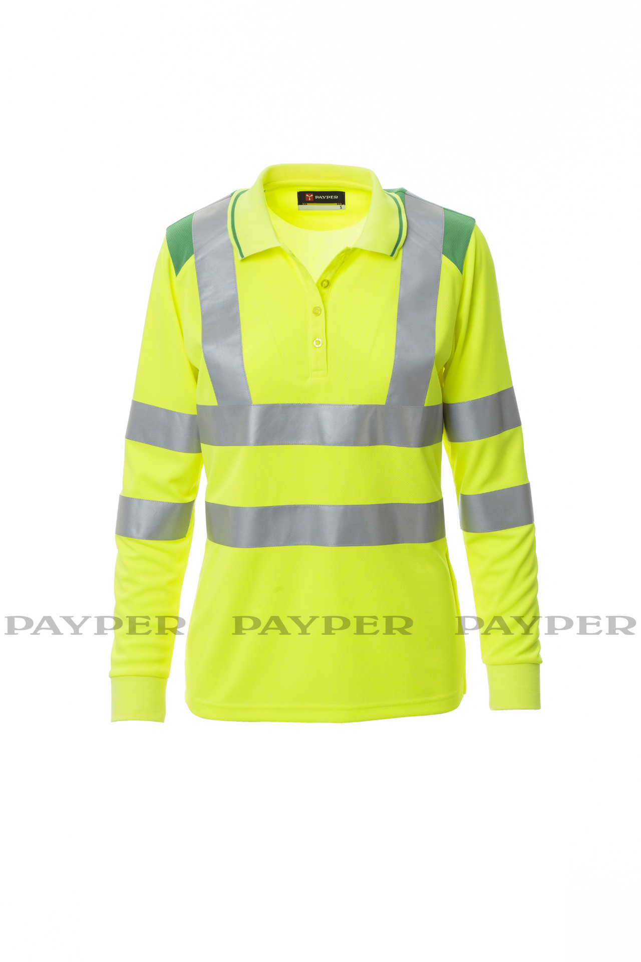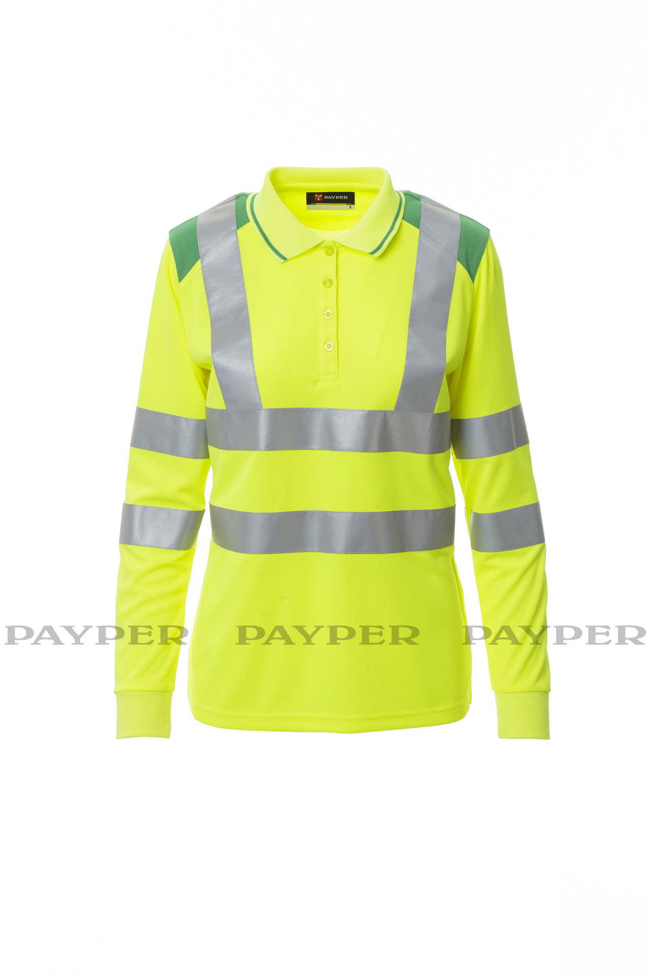 Women's long-sleeved two-tone, high visibility polo shirt with