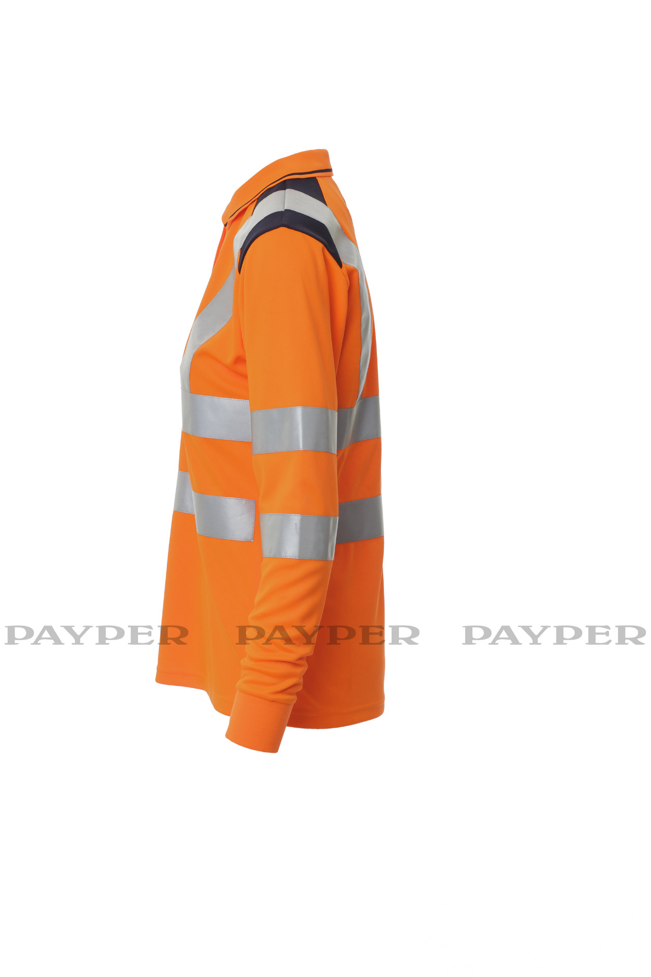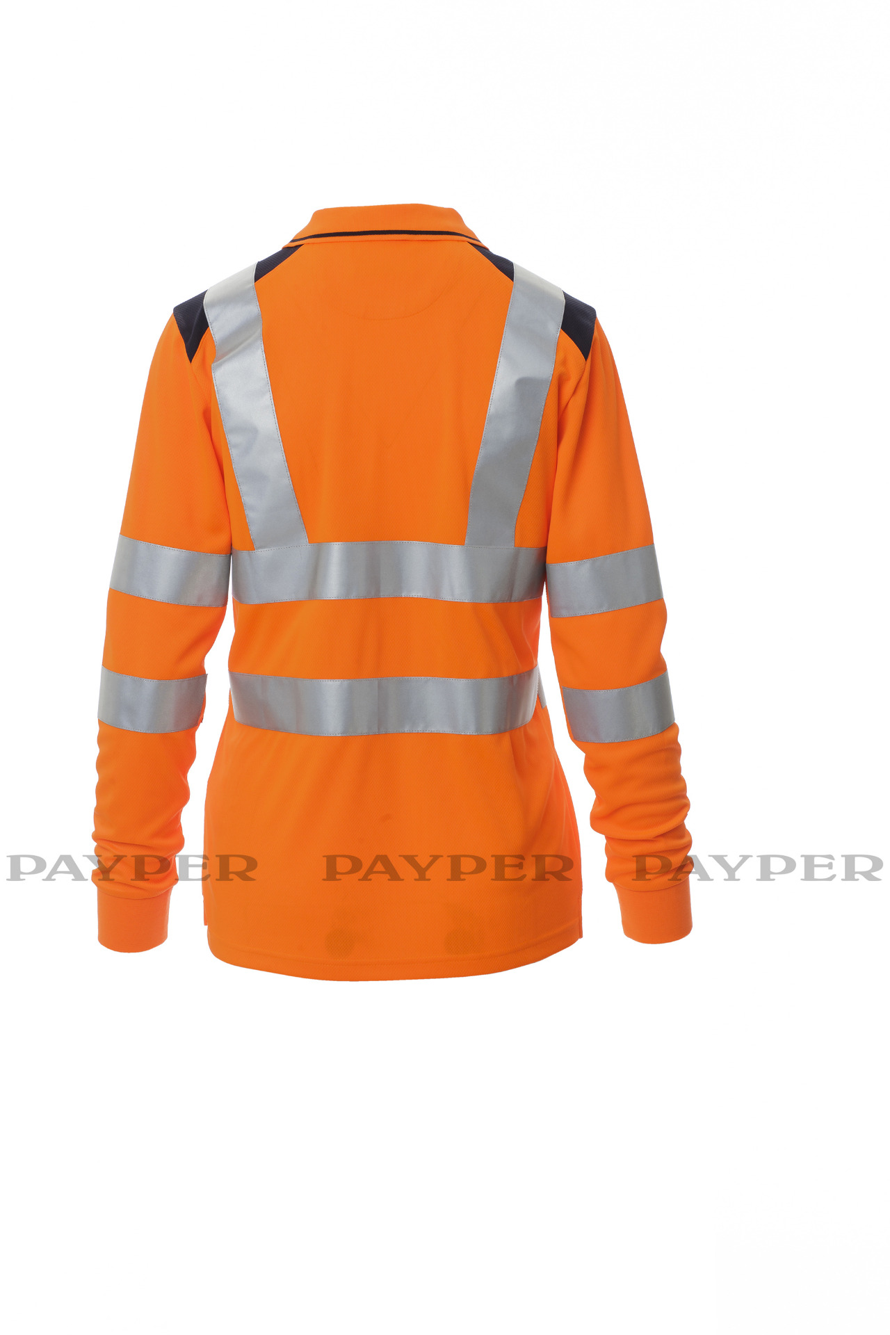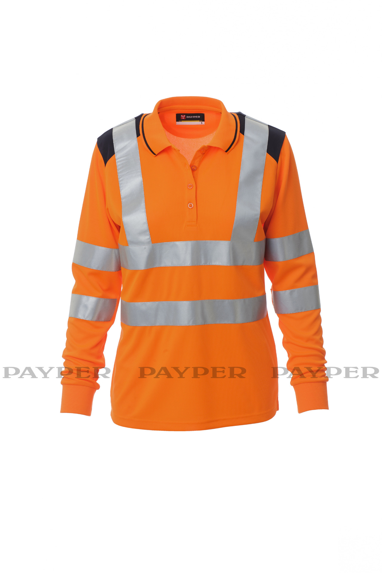 Women's long-sleeved two-tone, high visibility polo shirt with