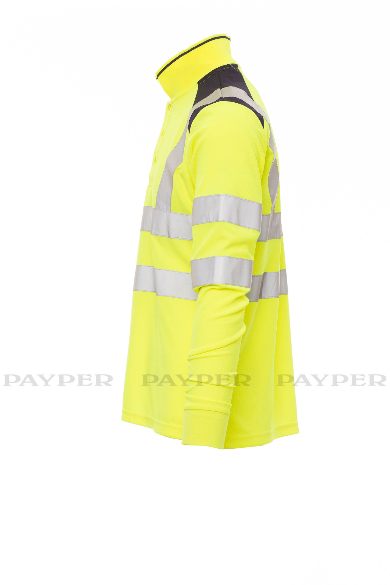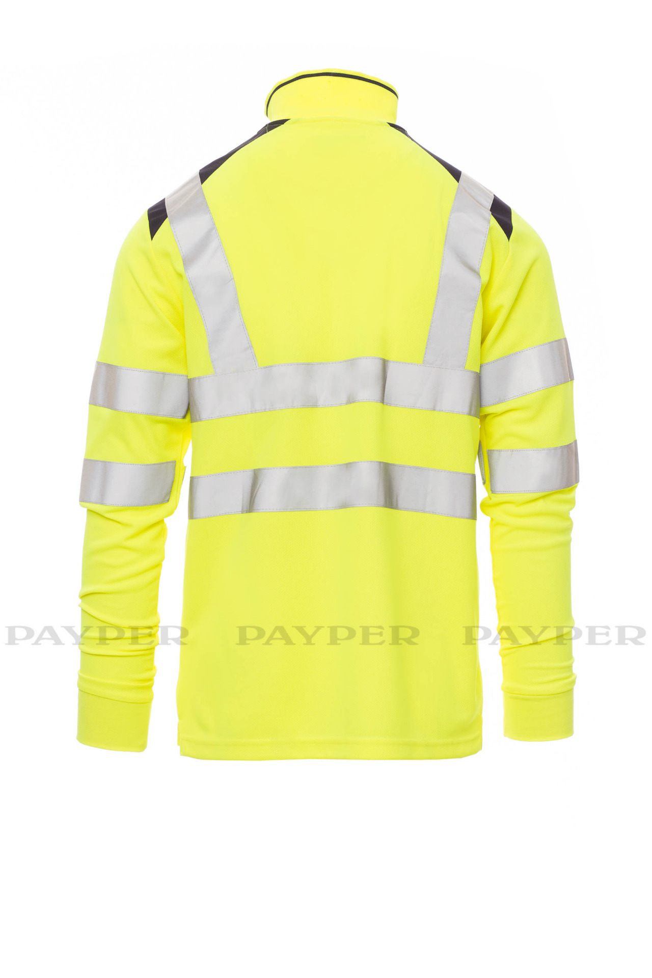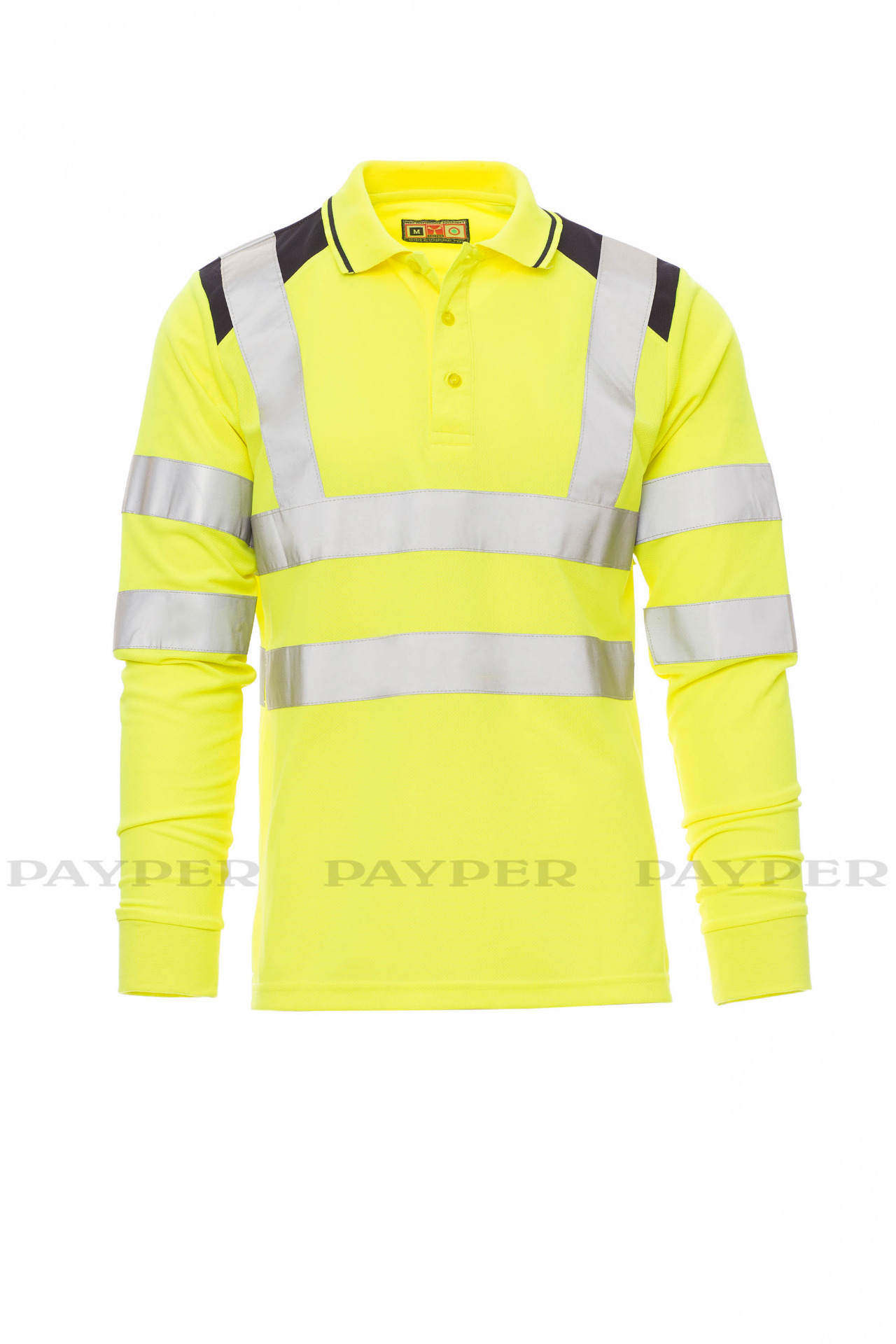 Men's long-sleeved two-tone, high-visibility polo shirt with reflective