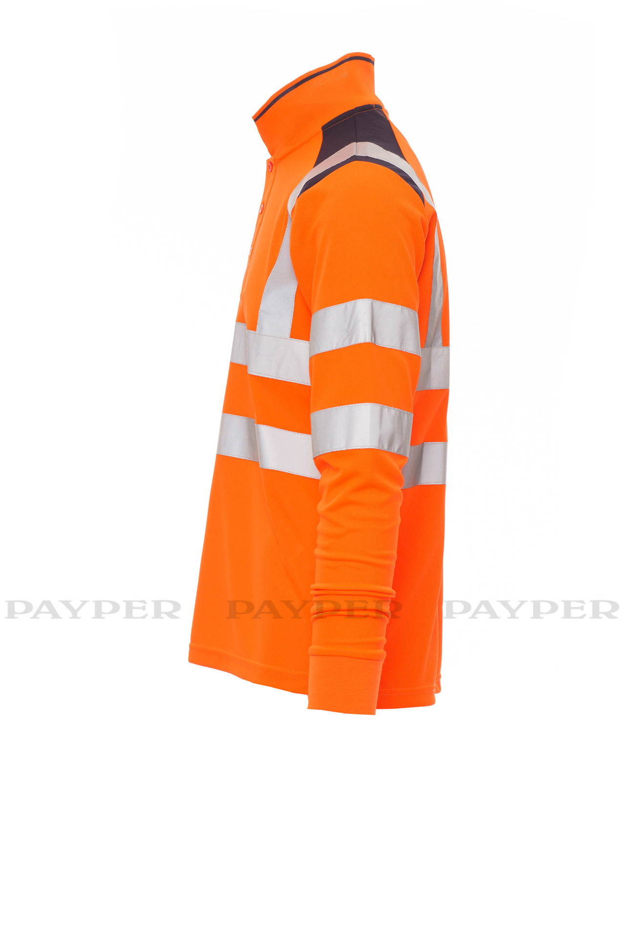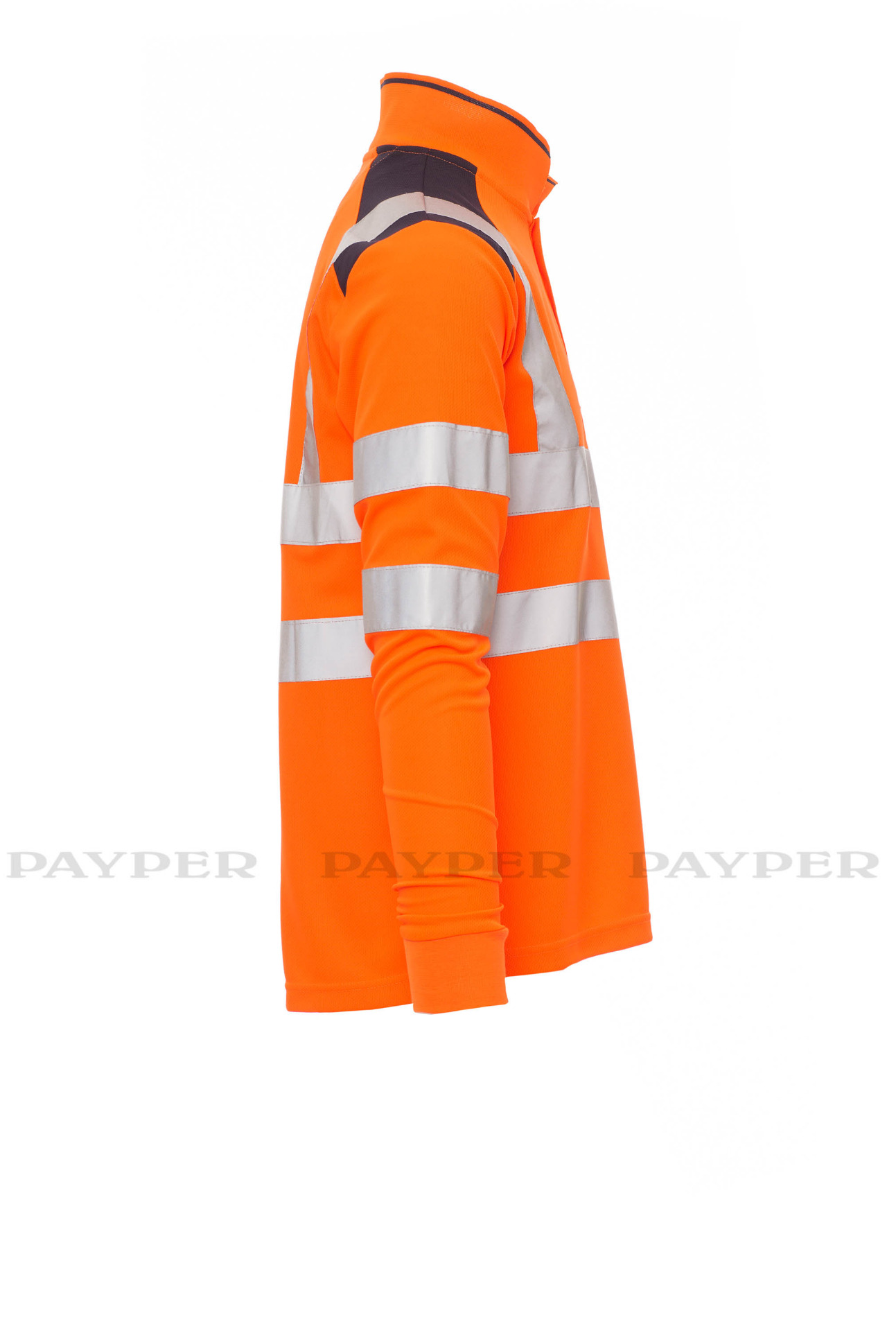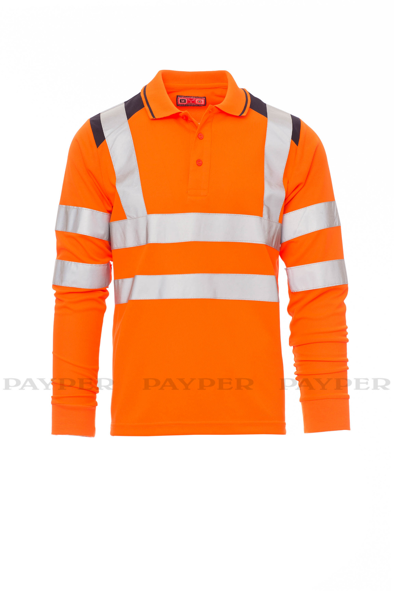 Men's long-sleeved two-tone, high-visibility polo shirt with reflective