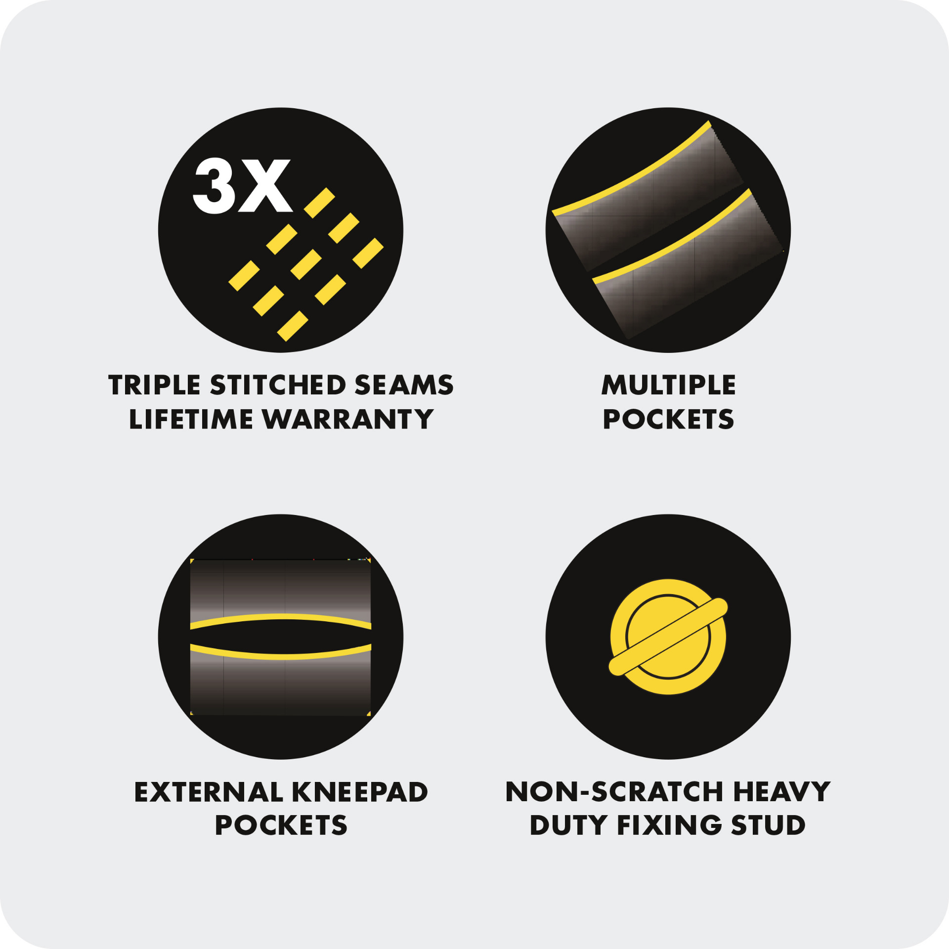 Best selling, multi-functional, hard wearing trousers - Internal kneepad pocket - Slight elastication at sides of waistband – very comfortable to wear - Multiple pockets with extra strong lining including 2 front & 2 rear pockets - Combat style leg pockets, mobile phone pocket on thigh - Heavy duty, non-scratch fixing stud on waistband - Triple stitched on main seams for ultimate strength - Conforms to: EN ISO 20471