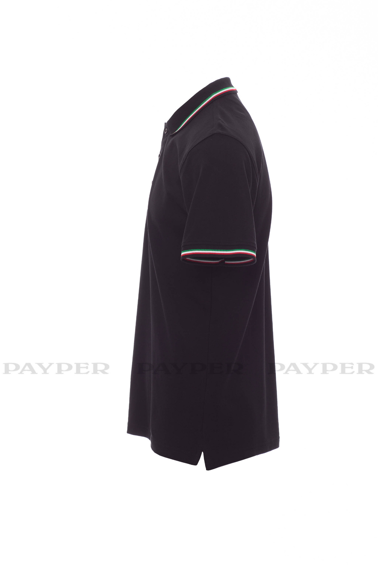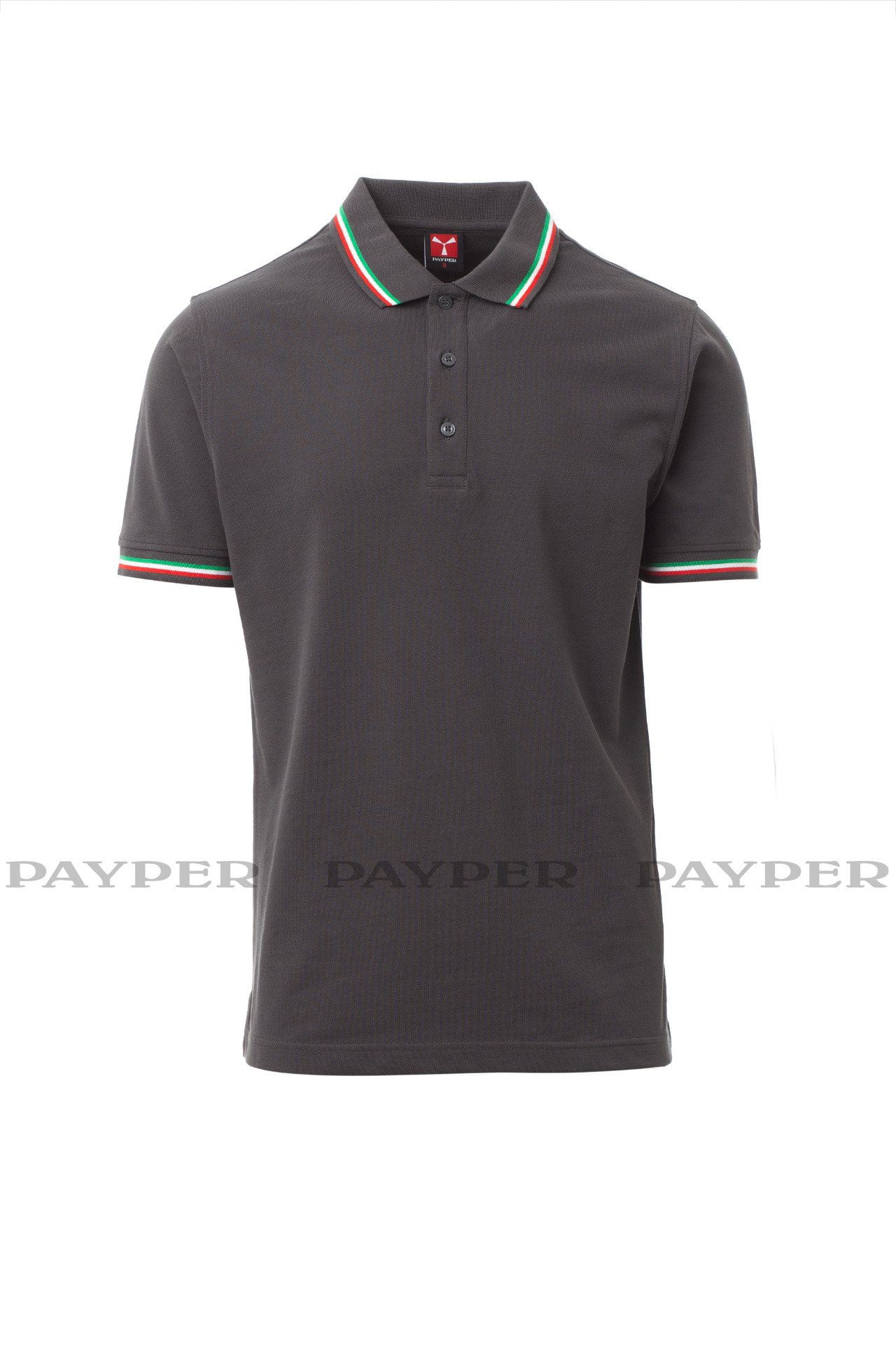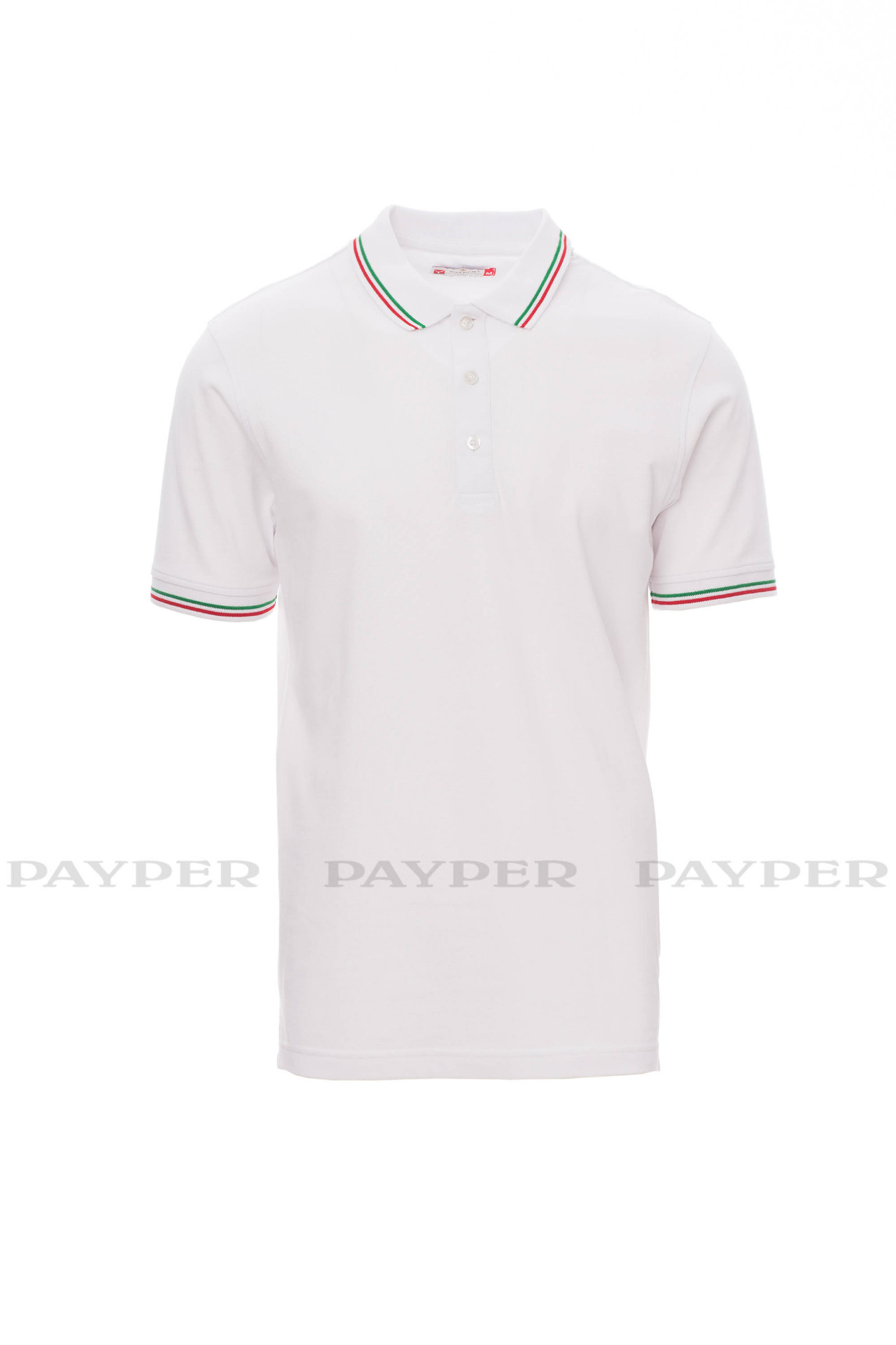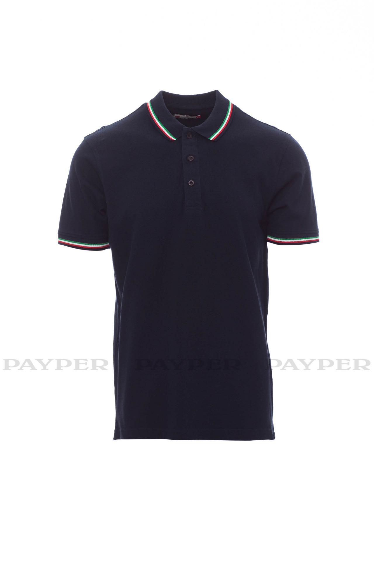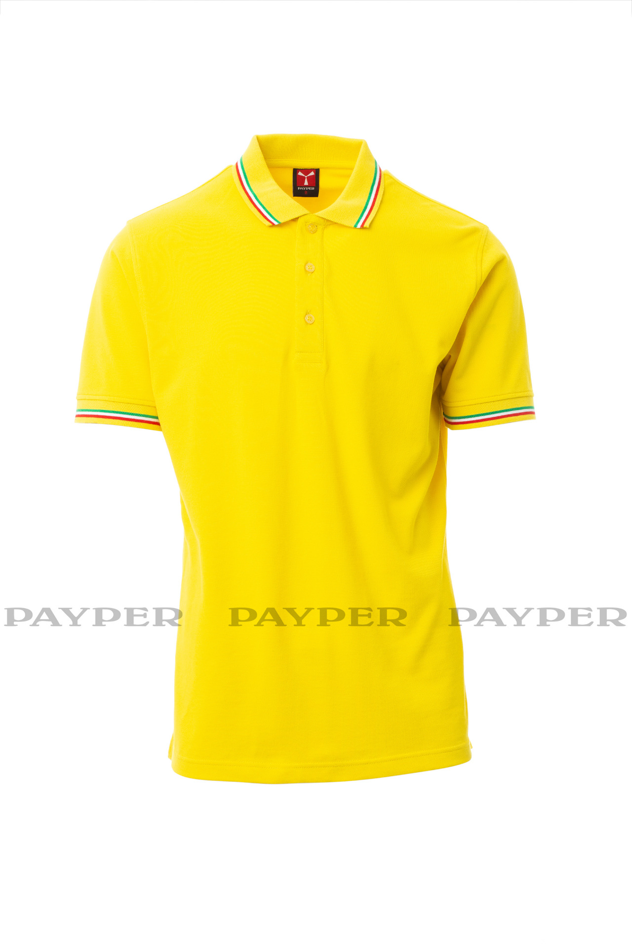 Unisex short-sleeved polo shirt with 3 matching buttons, contrasting